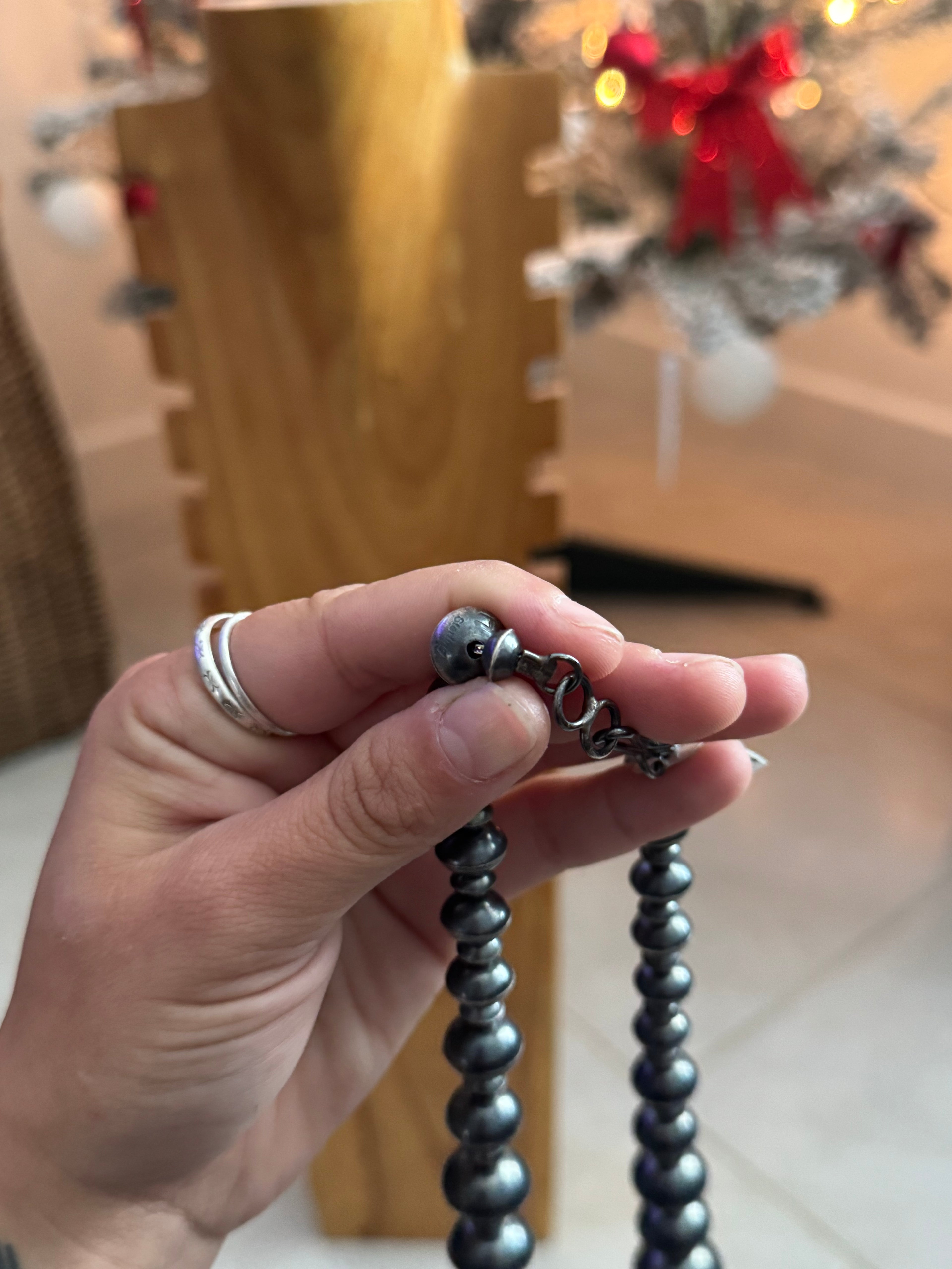 Austin Hales Jumbo Sterling Silver Graduated Pearl Necklace. It measure 23 inches long.