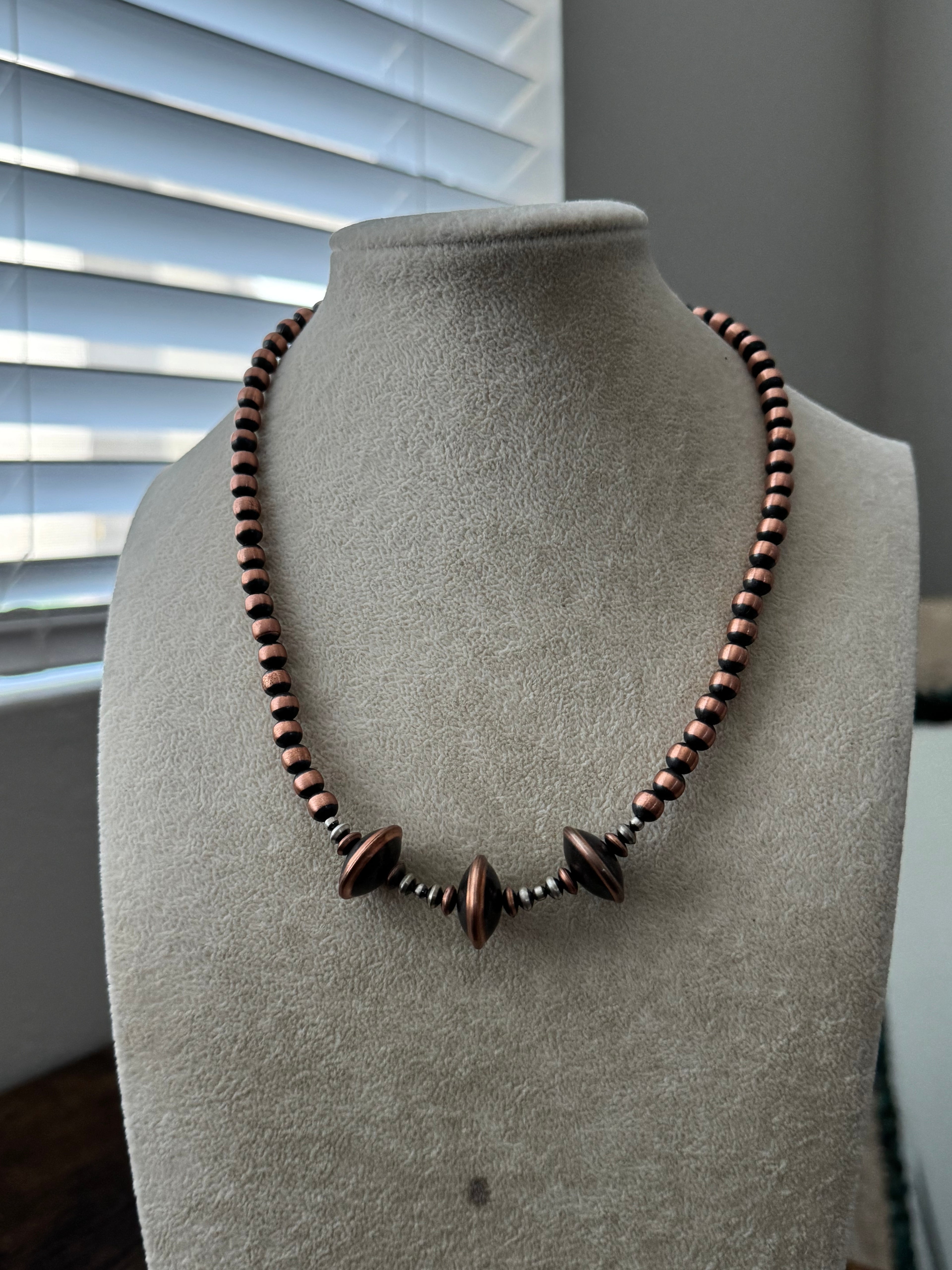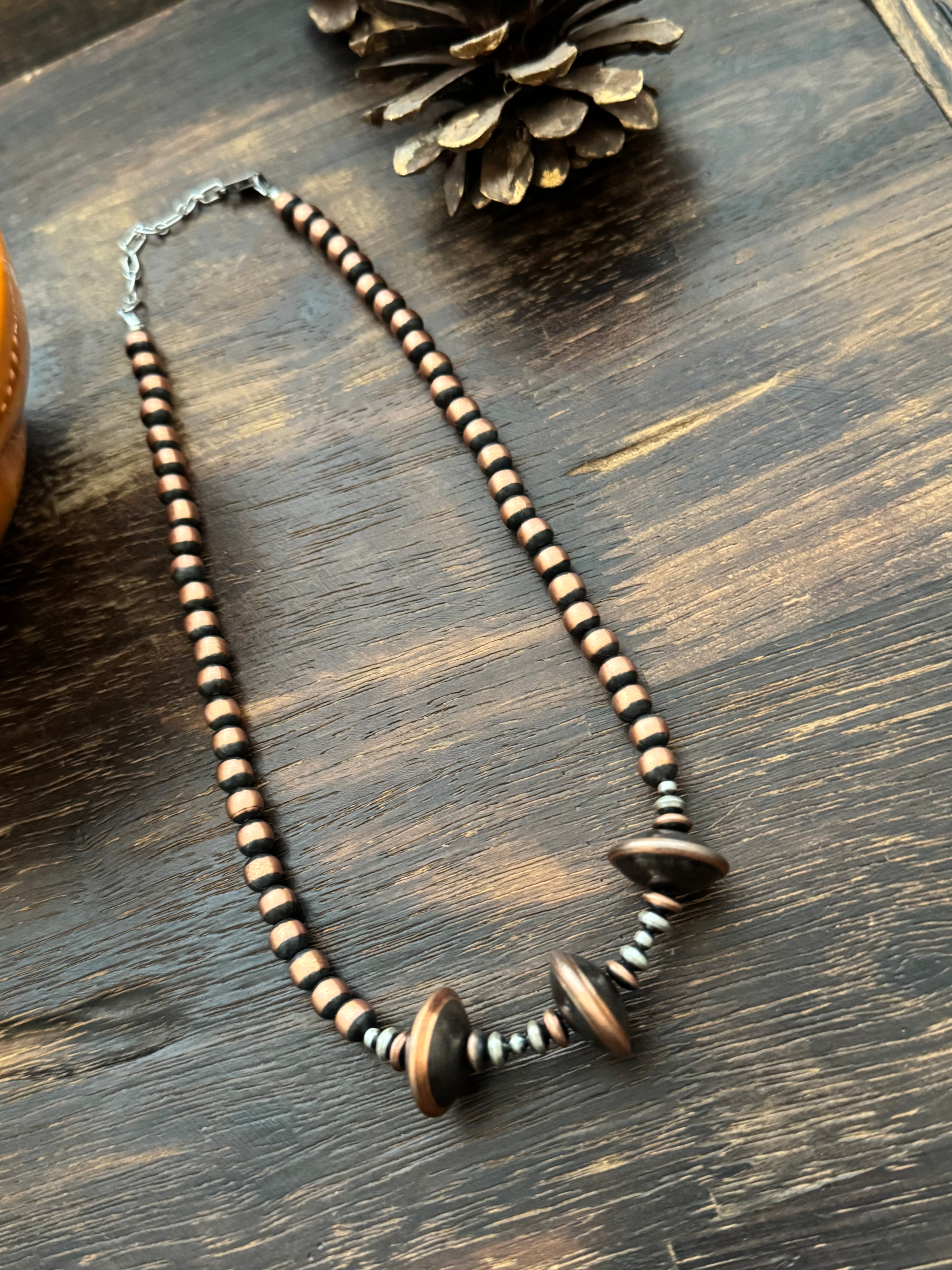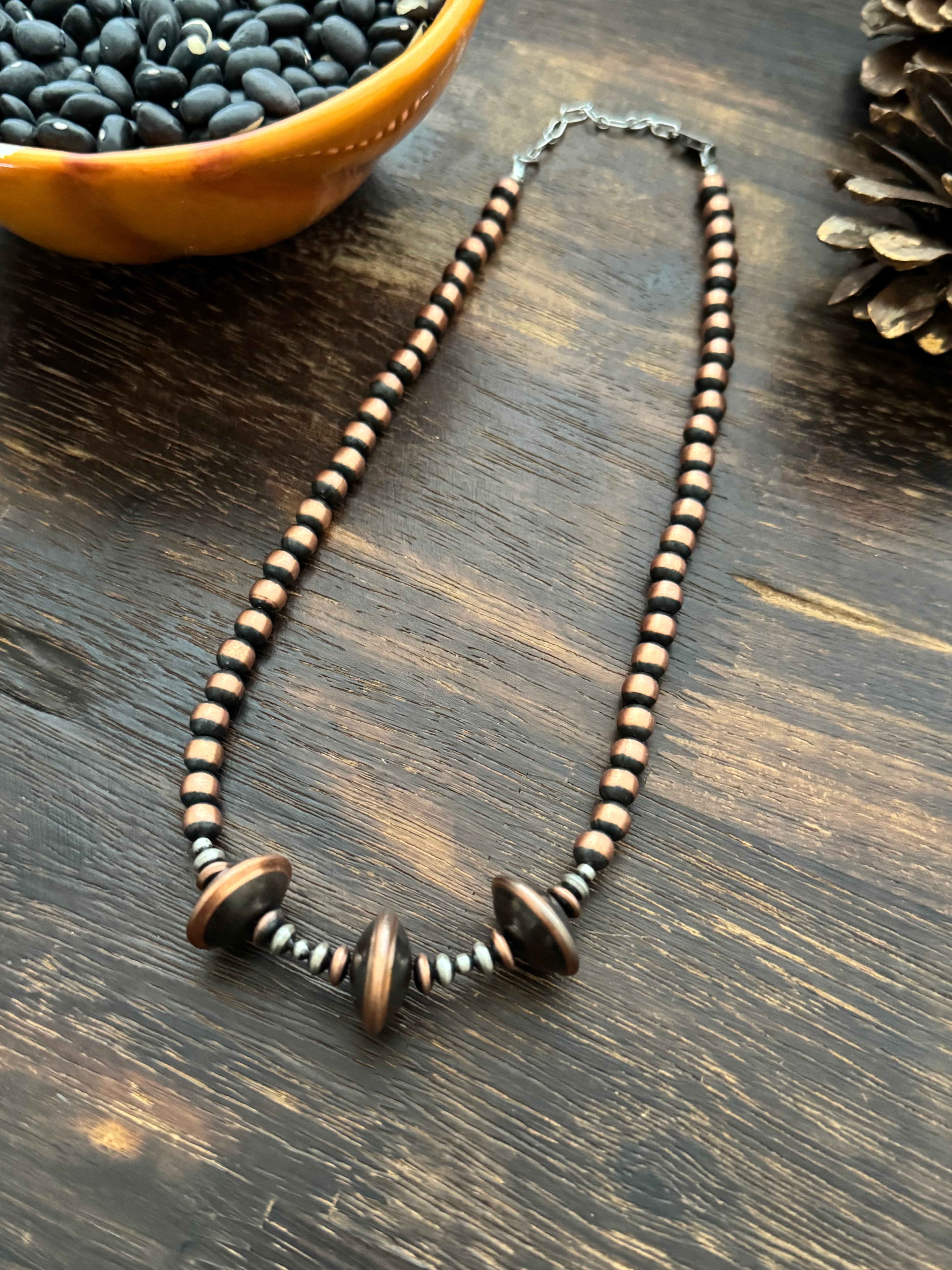 Navajo Strung Copper & Sterling Silver Graduated Beaded Necklace