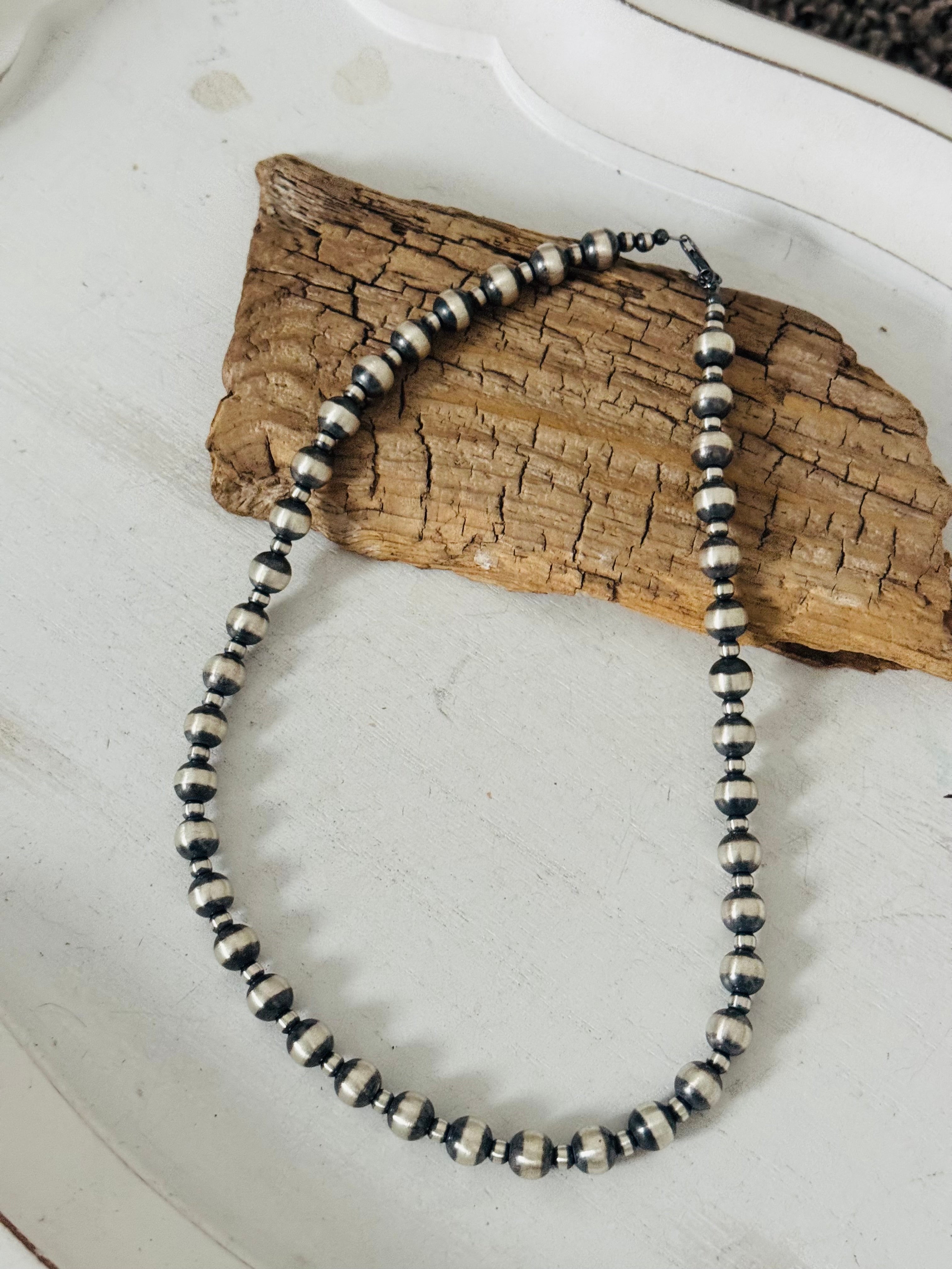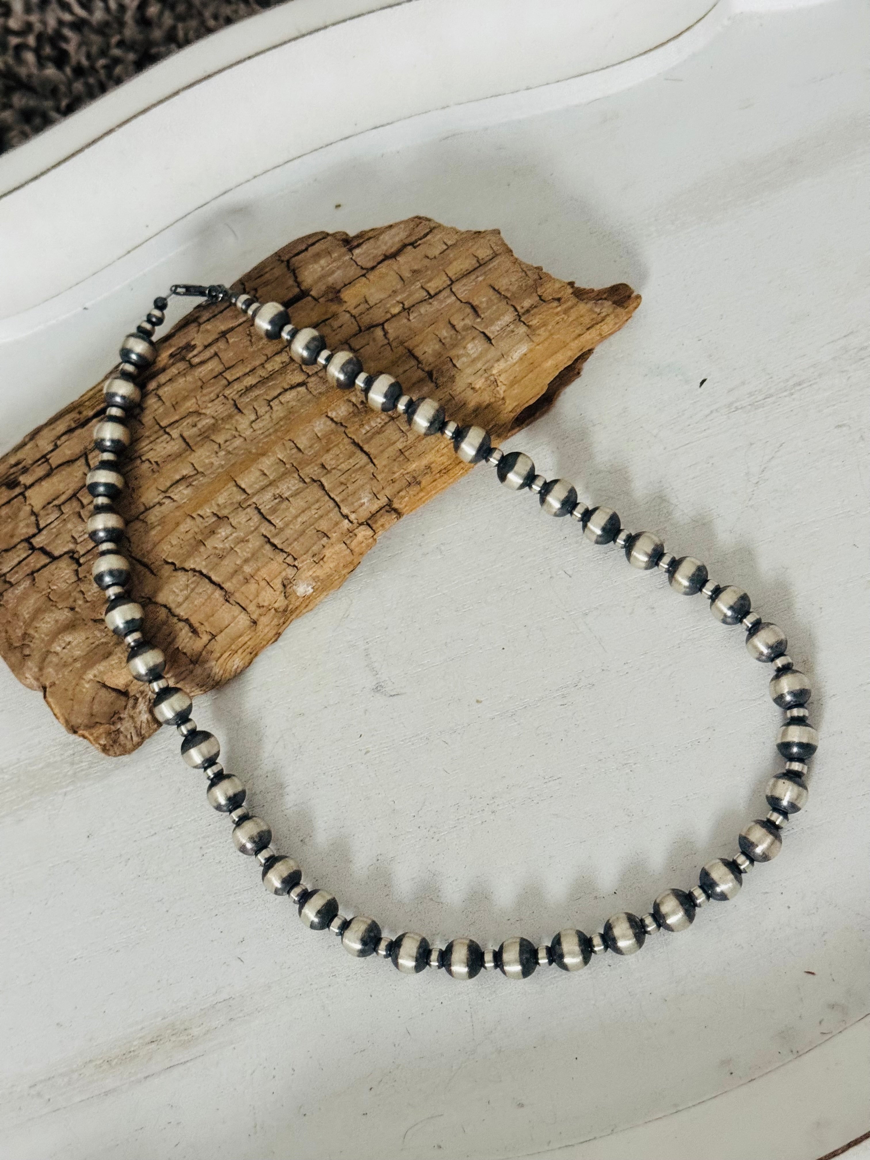 Navajo Strung Graduated Sterling Silver Pearls Beaded Necklace