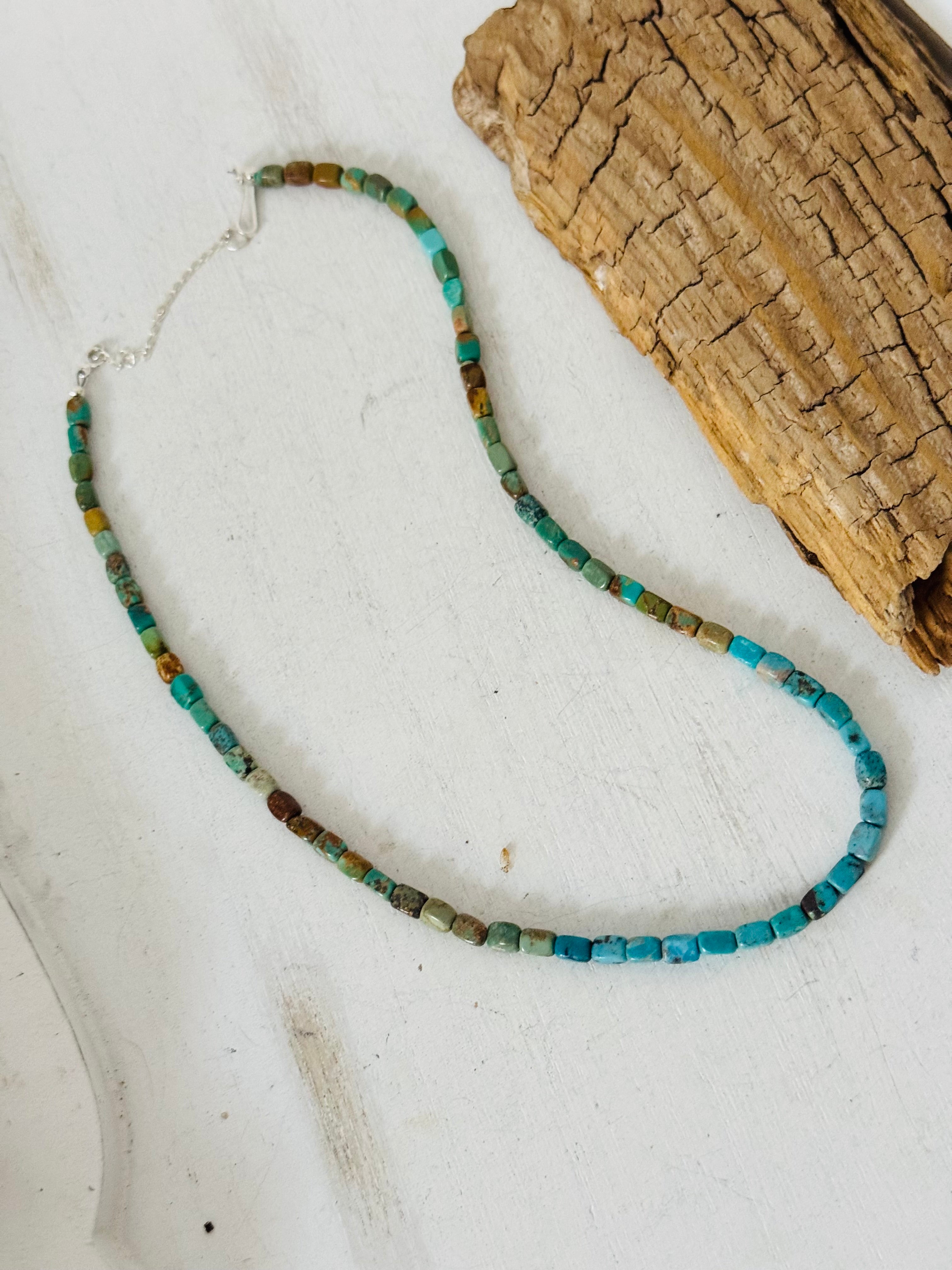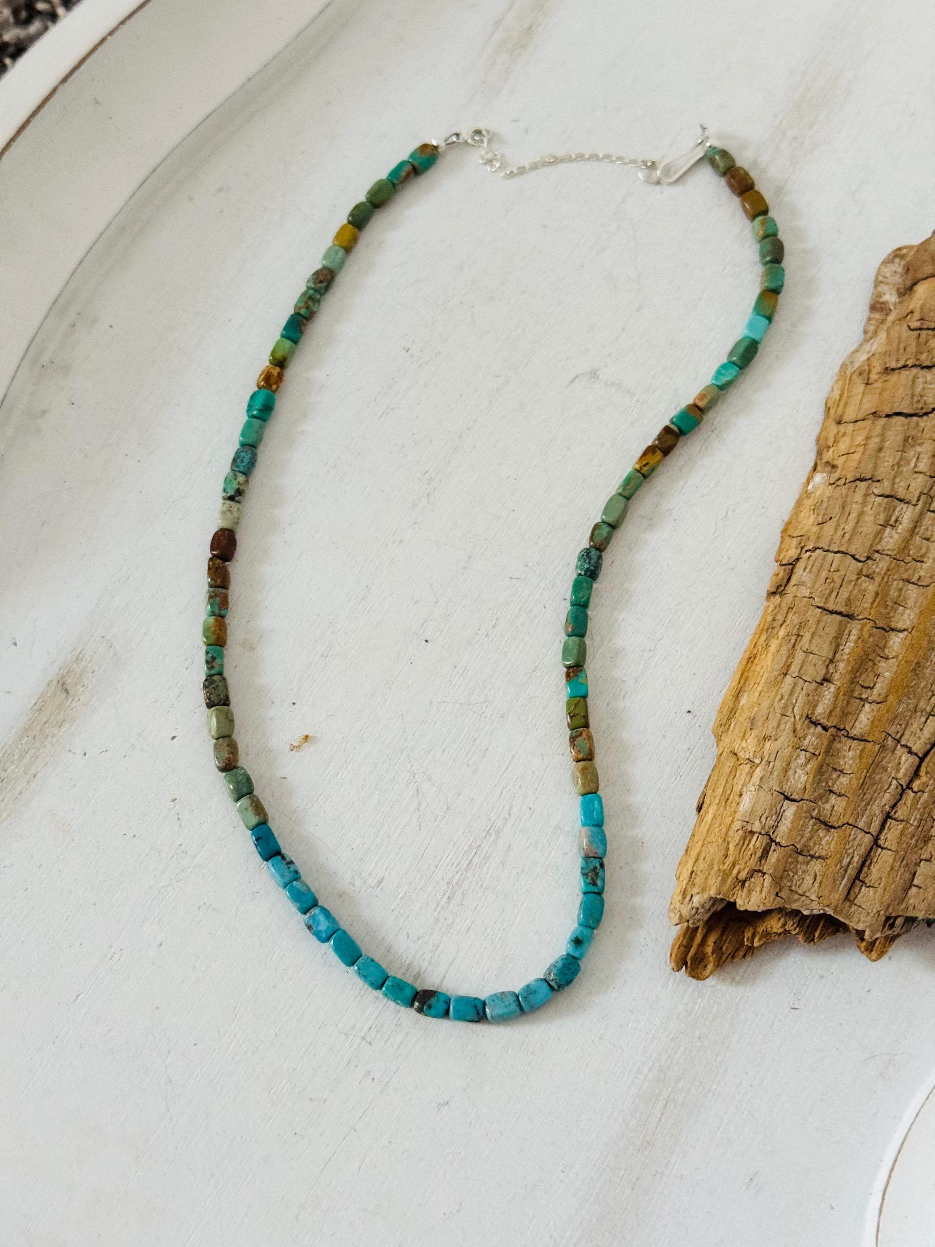 Navajo Strung Royston Turquoise & Sterling Silver Beaded Necklace. It measures 17-19 inches long.