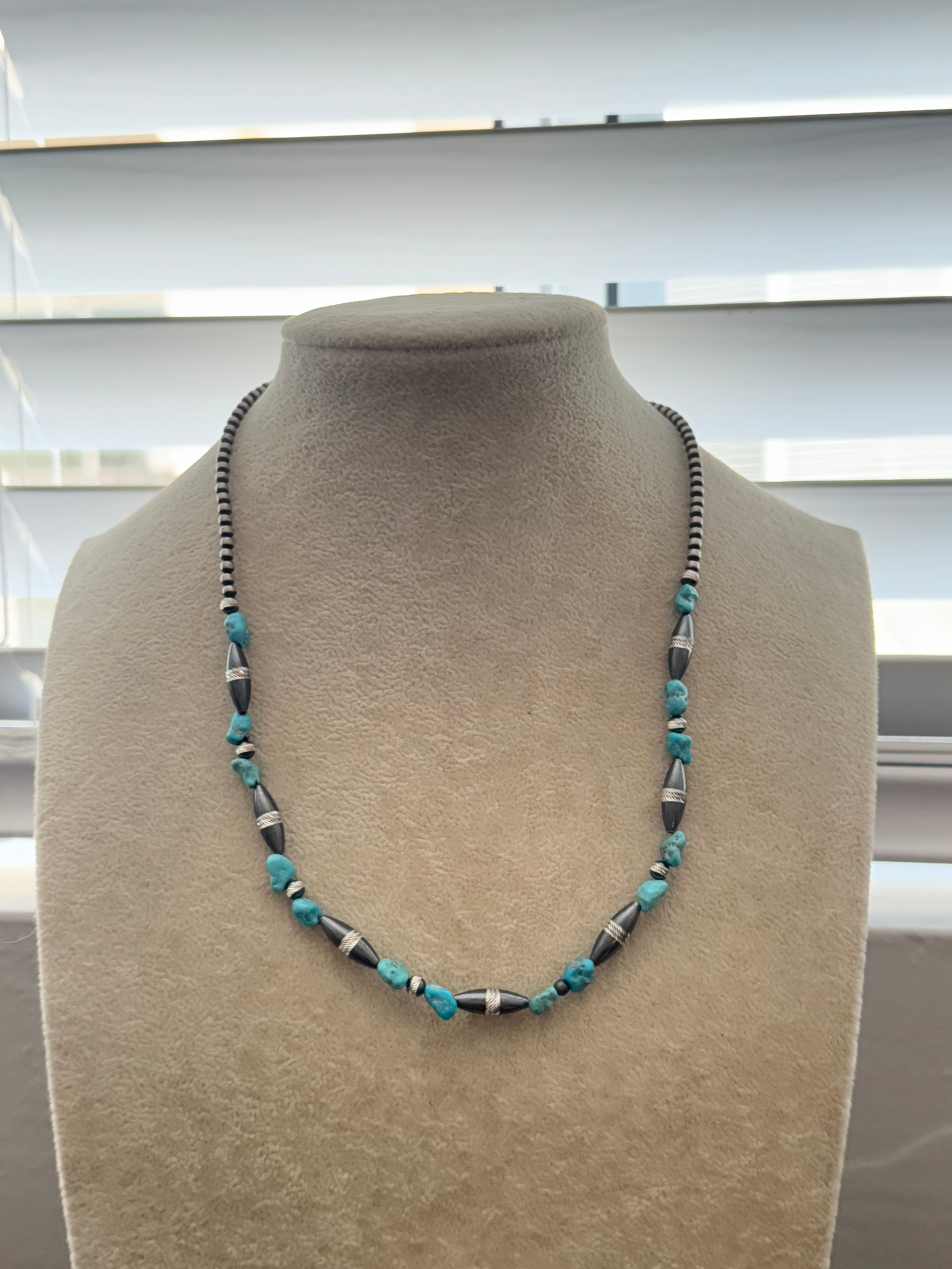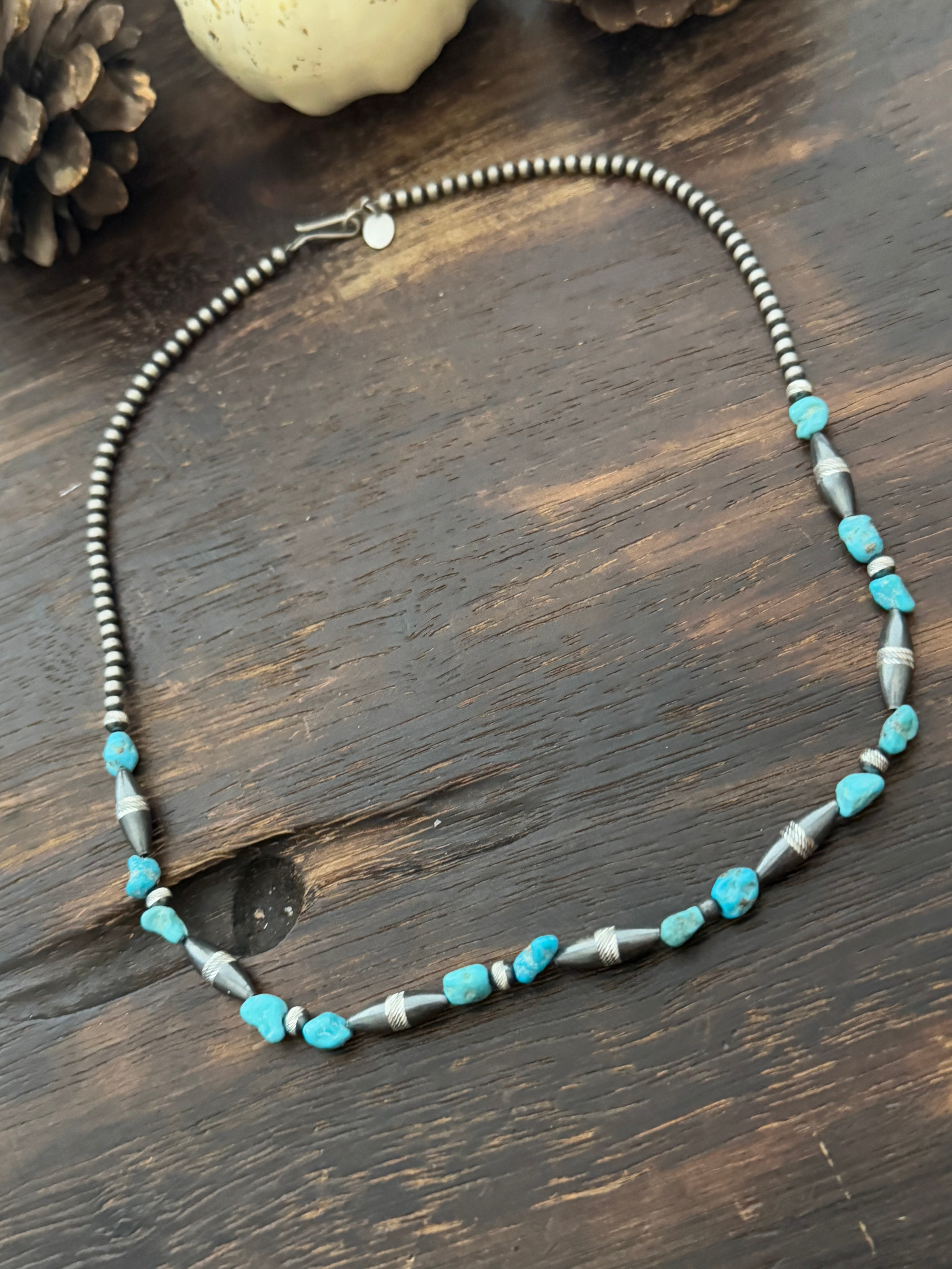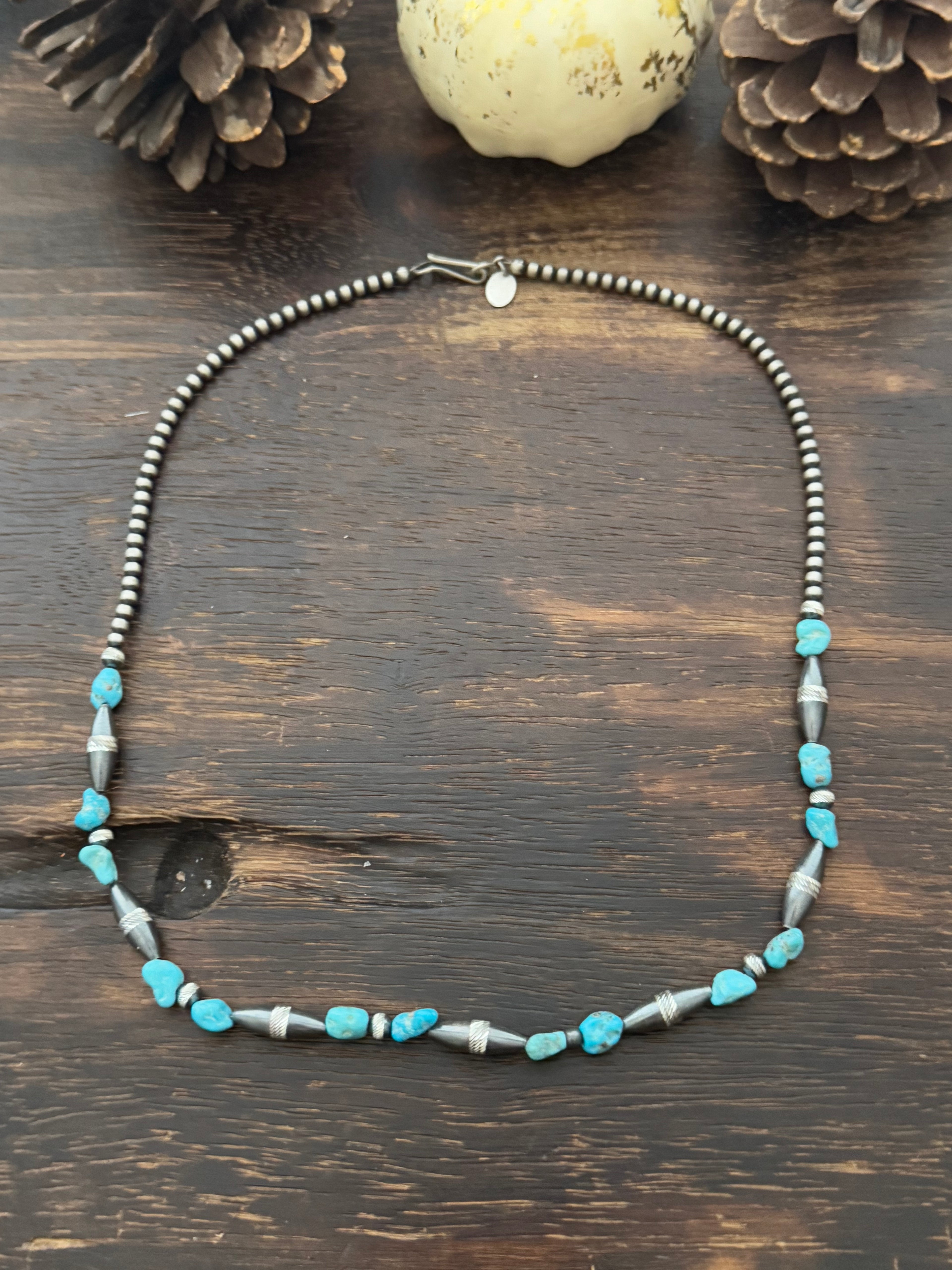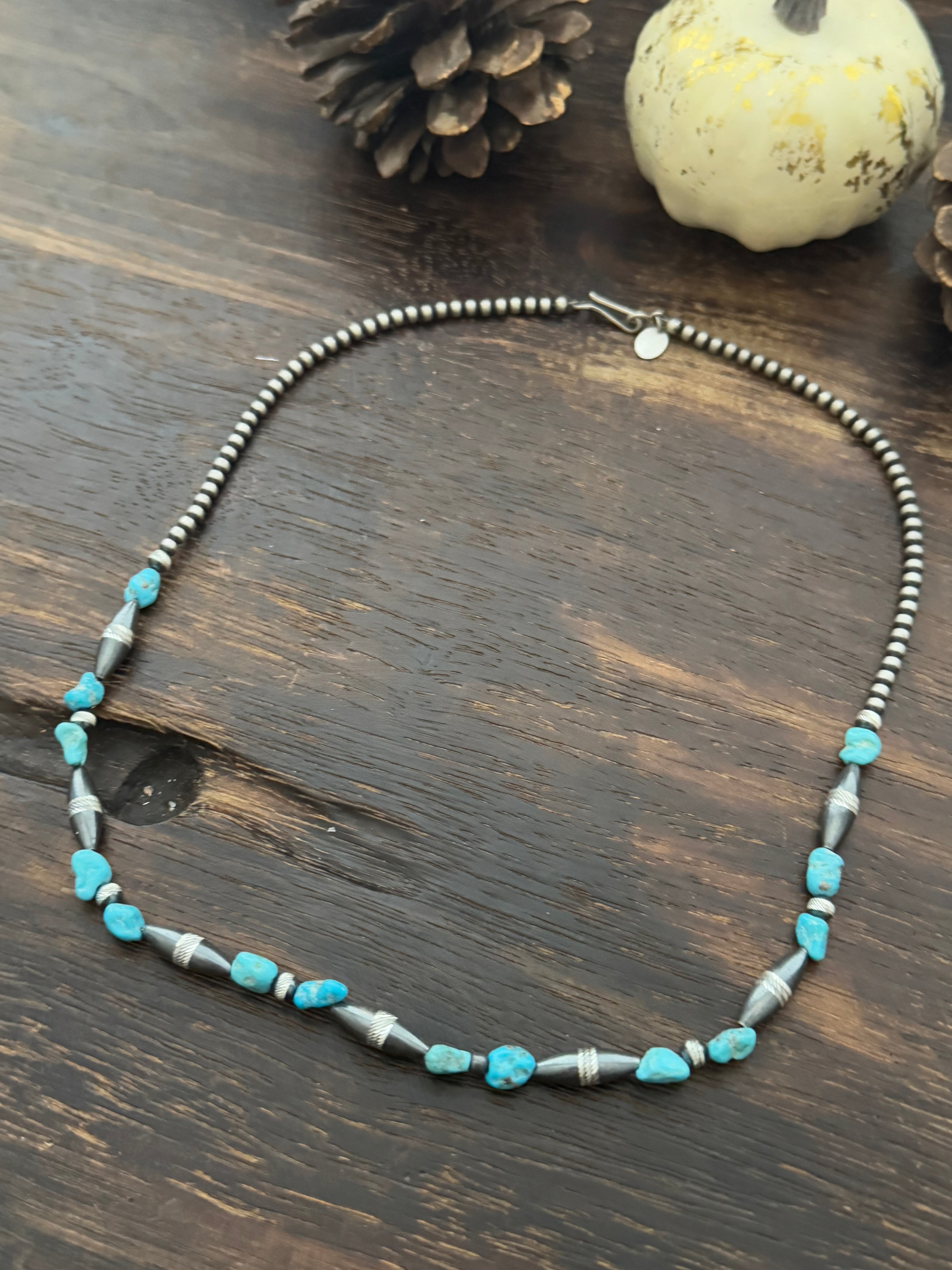 Navajo Strung Kingman Turquoise & Sterling Silver Beaded Necklace