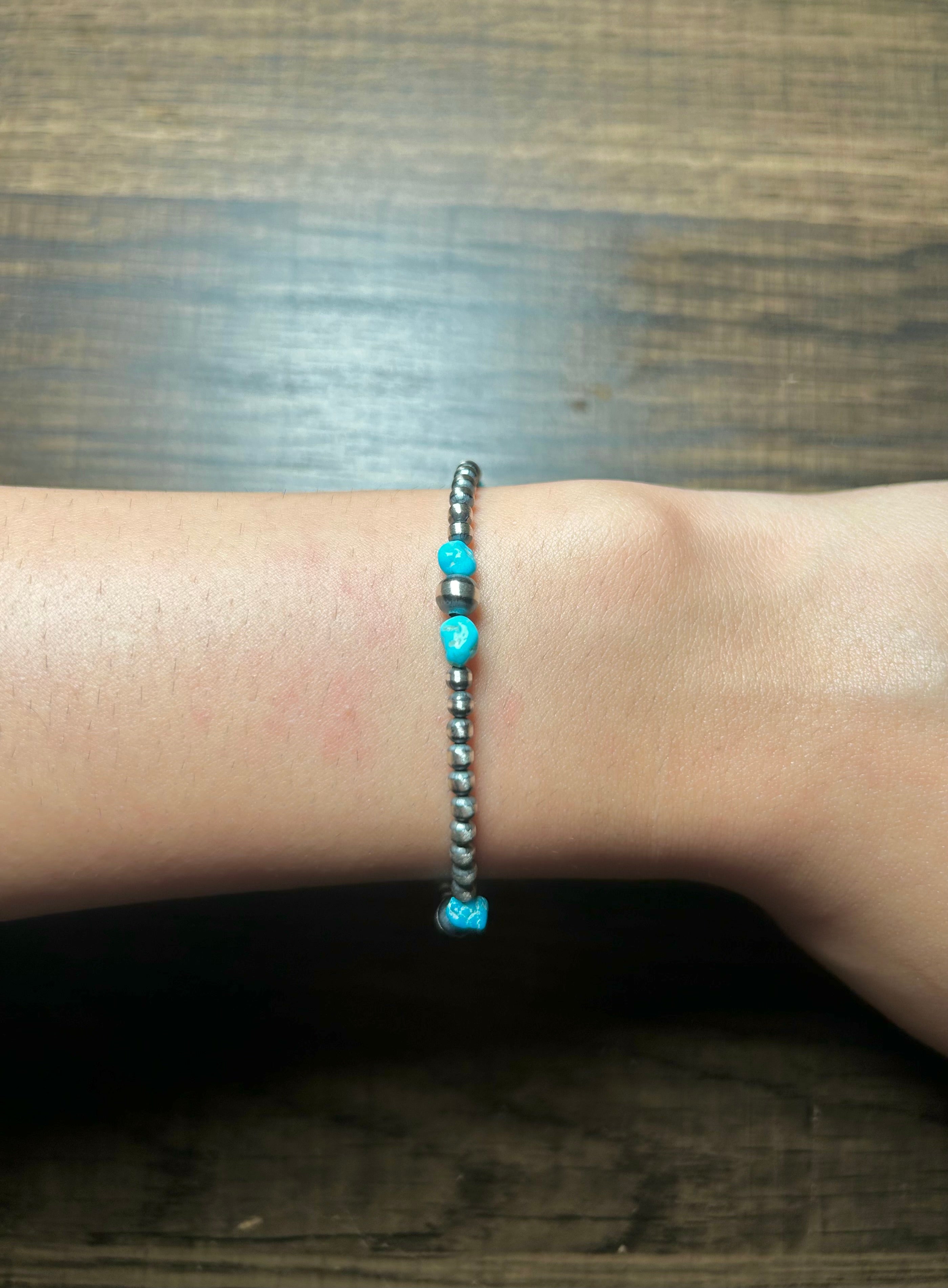 Navajo Strung Kingman Turquoise & Sterling Silver Bracelet