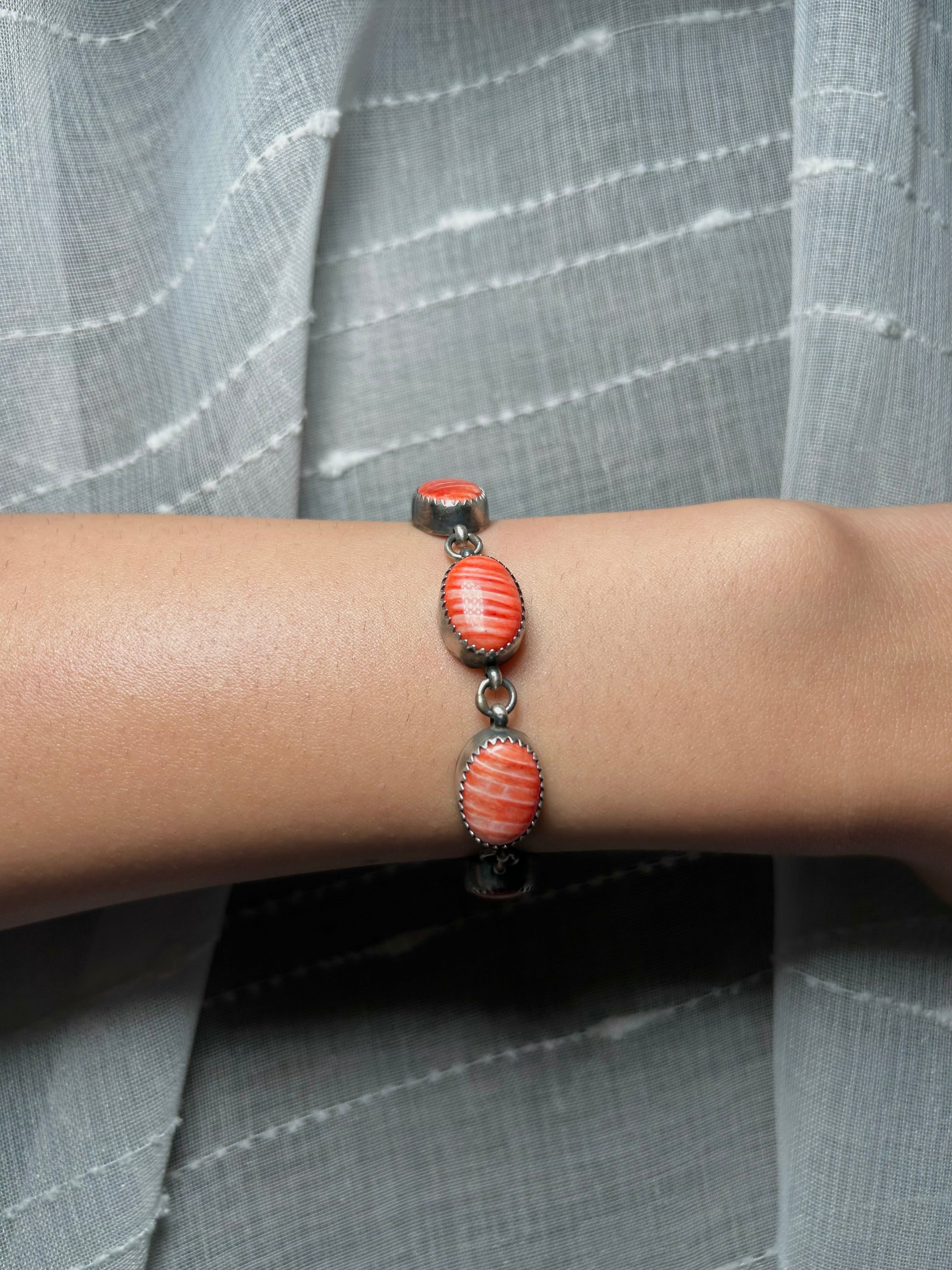 Navajo Made Spiny Oyster & Sterling Silver Bracelet
