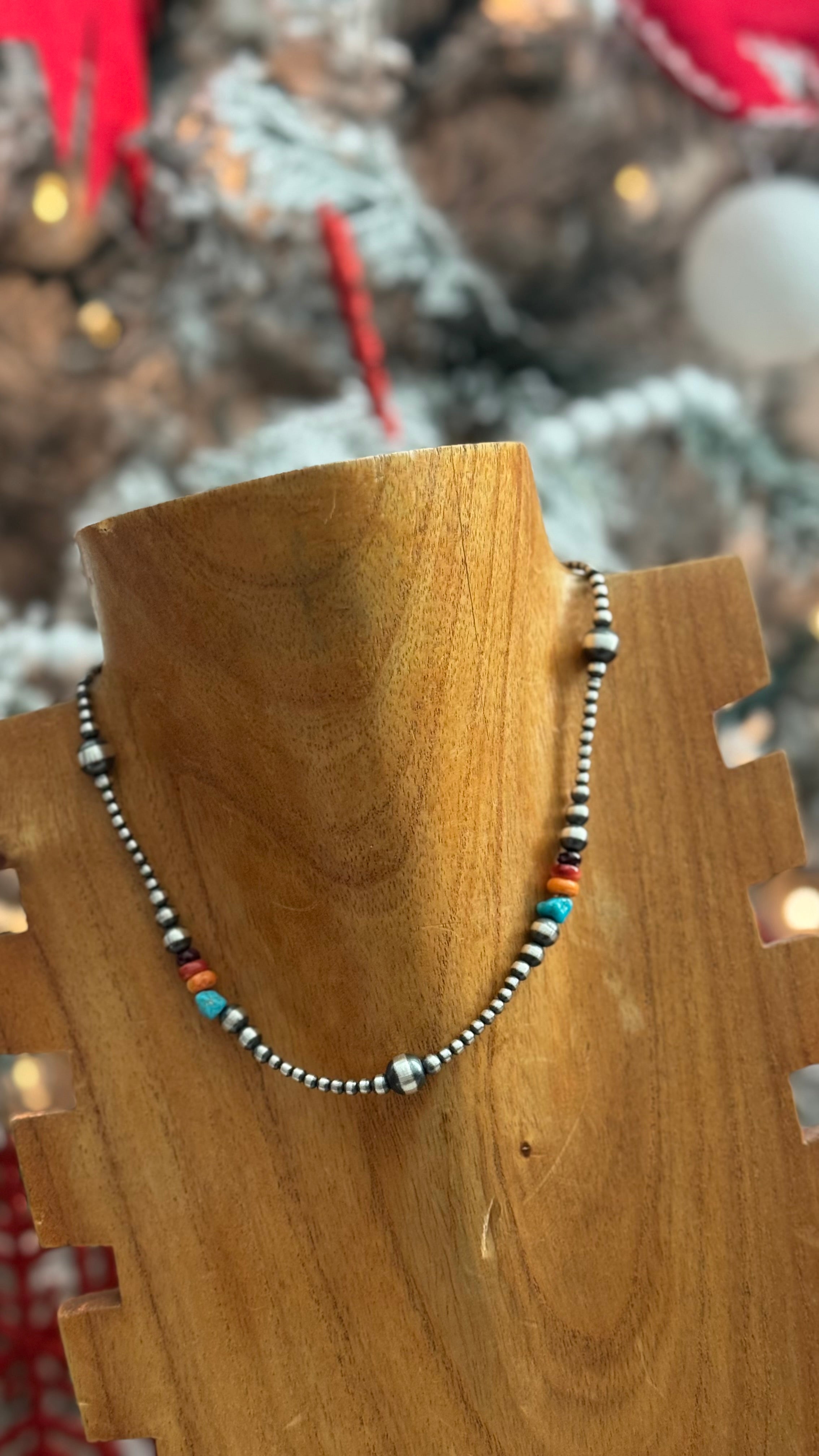 Navajo Strung Multi Stone & Sterling Silver Graduated Pearl Necklace. They measure 14 inches long. Stones will differ due to natural stones.