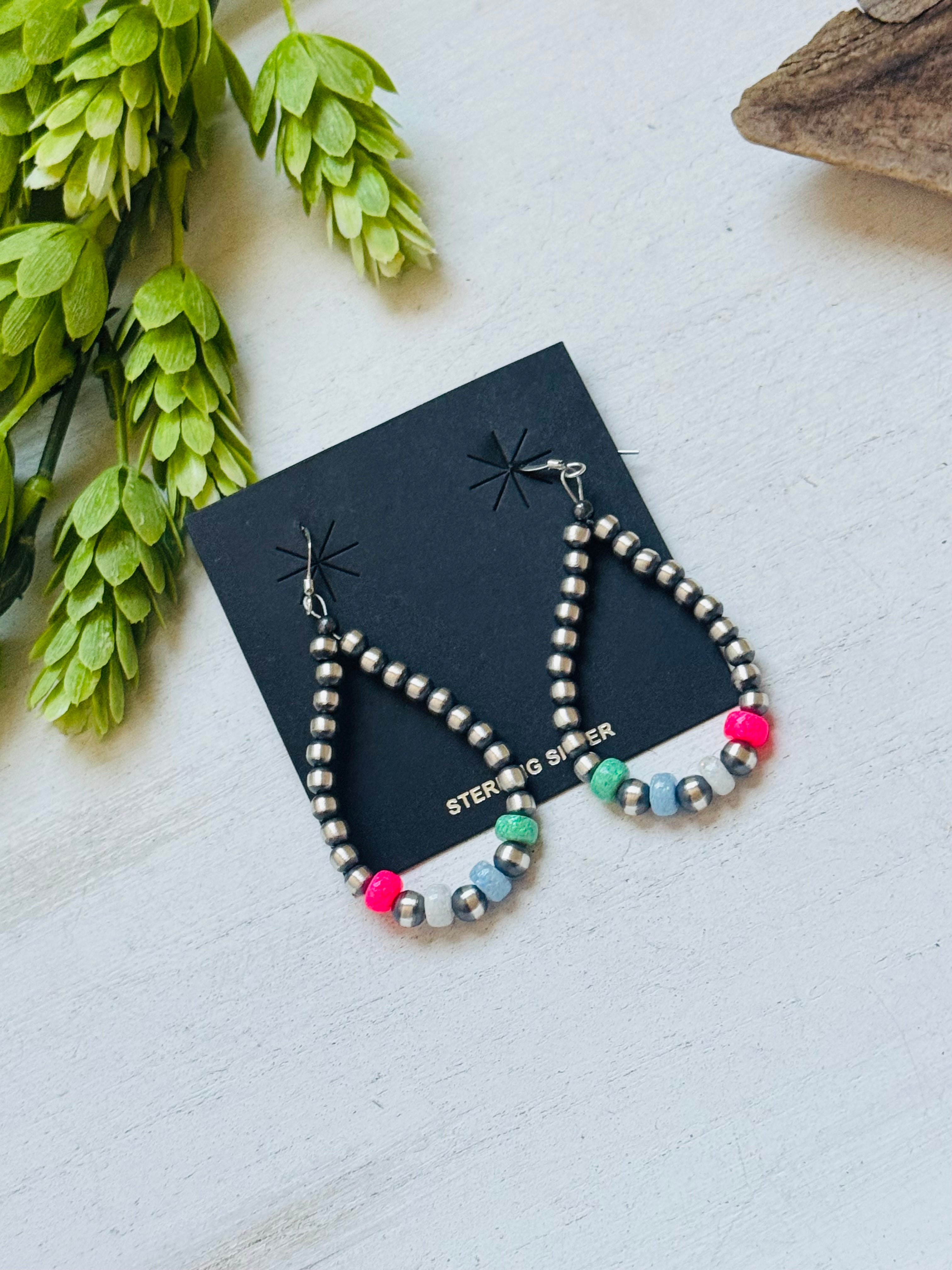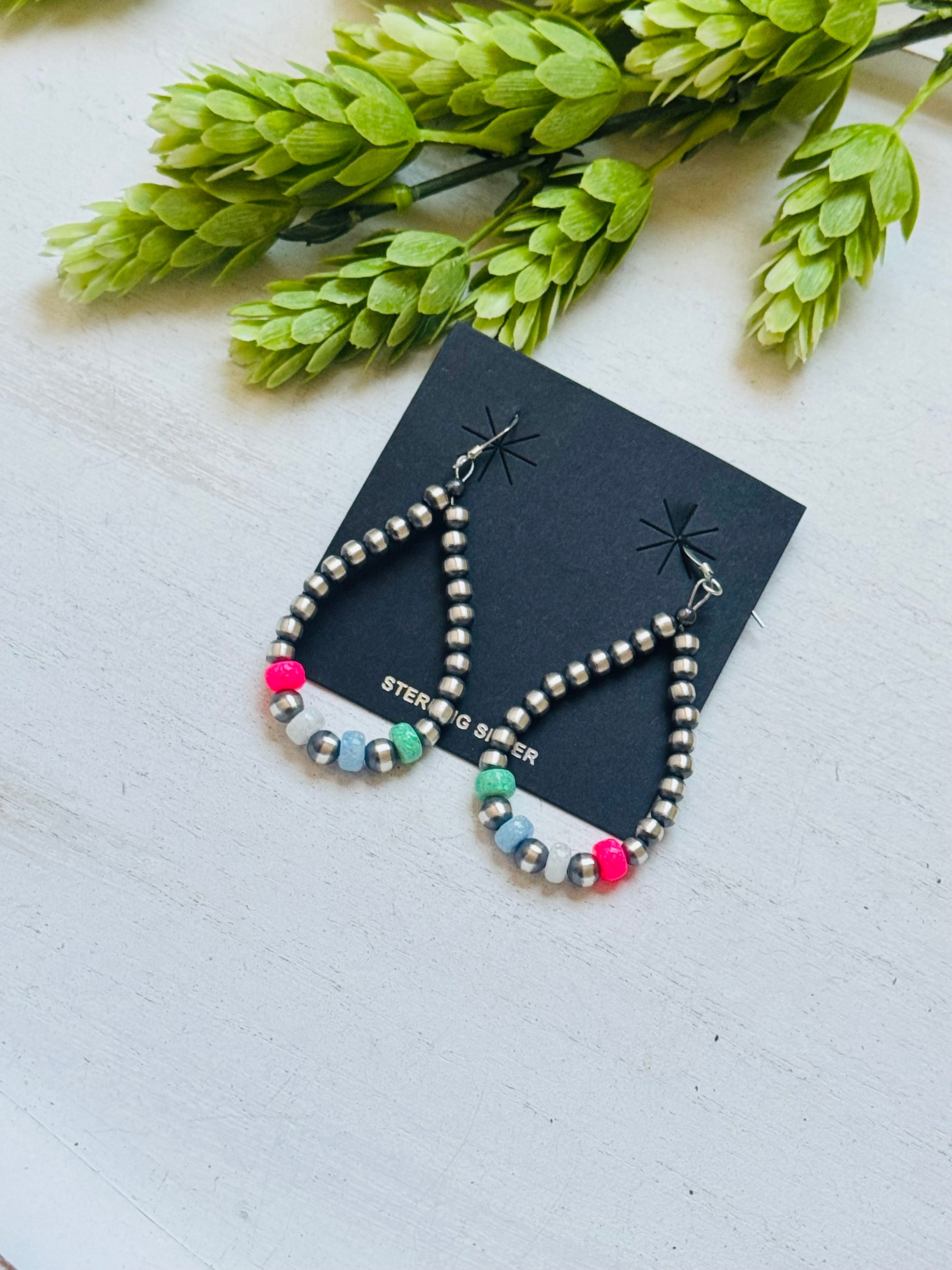 Navajo Strung Opal (Man Made) & Sterling Silver Graduated Pearl Dangle Earrings