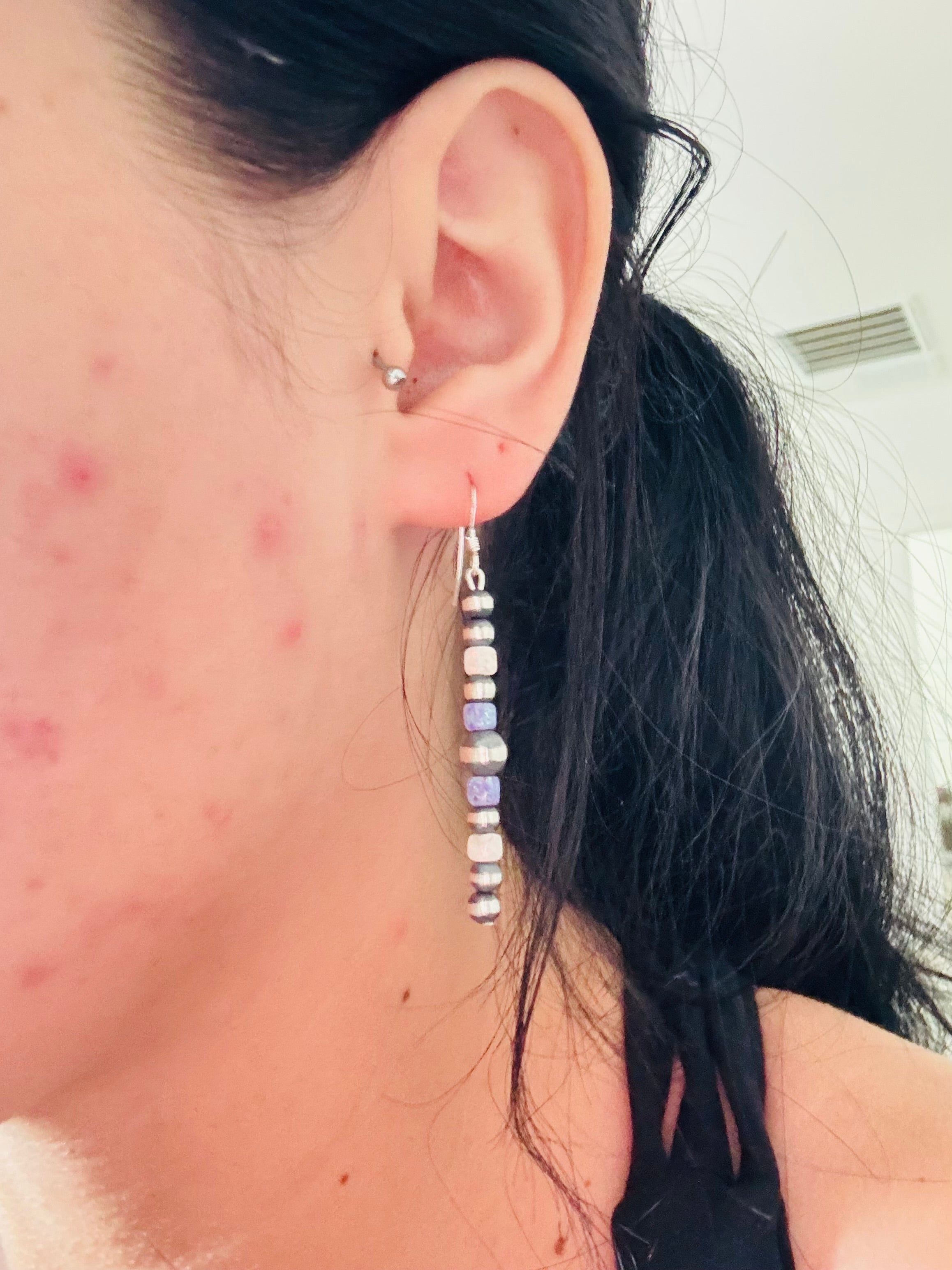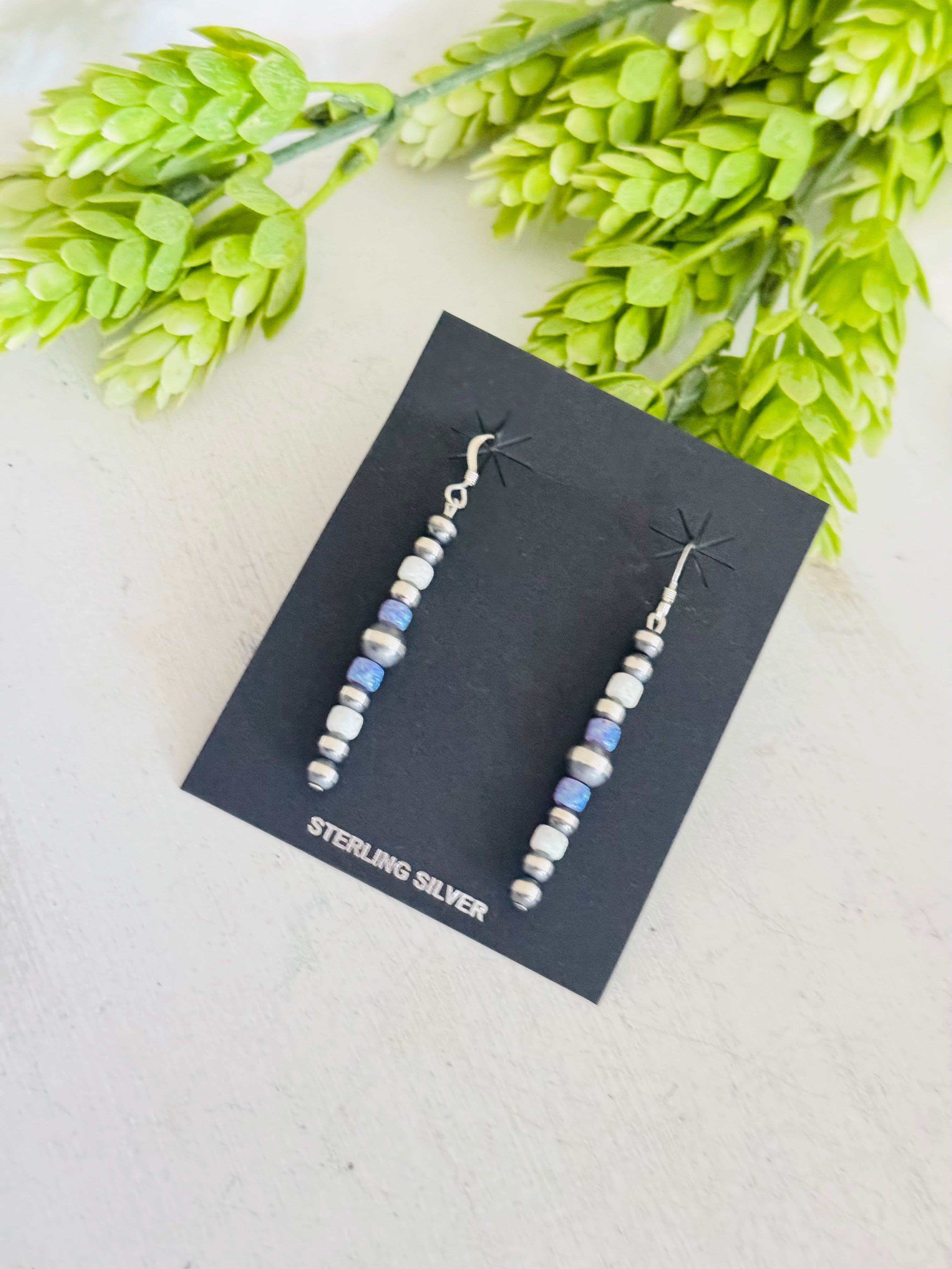 Navajo Strung Opal (Man Made) & Sterling Silver Graduated Pearl Dangle Earrings