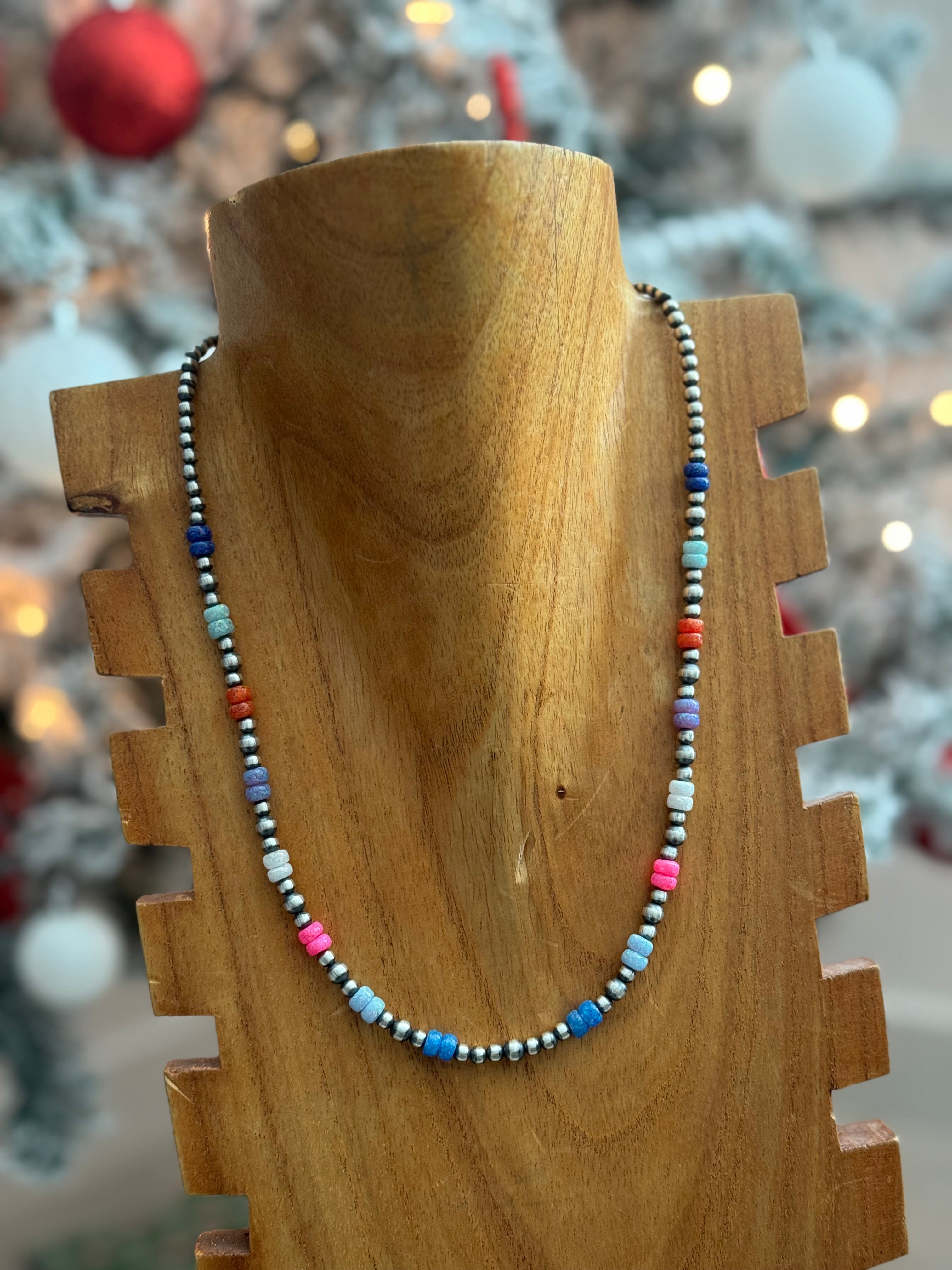 Navajo Strung Opal (Man Made) & Sterling Silver Beaded Pearl Necklace. It measures 20 inches long.