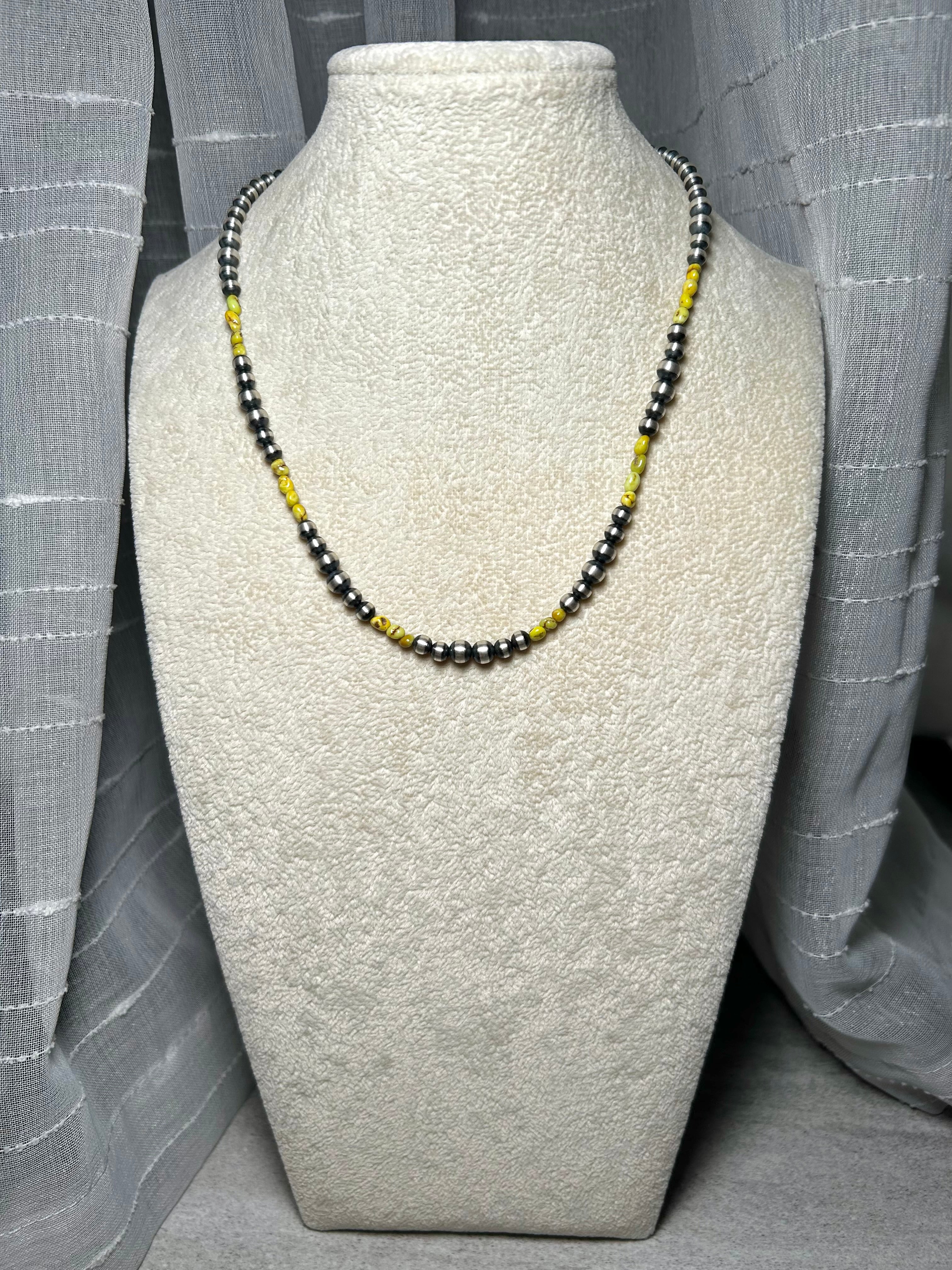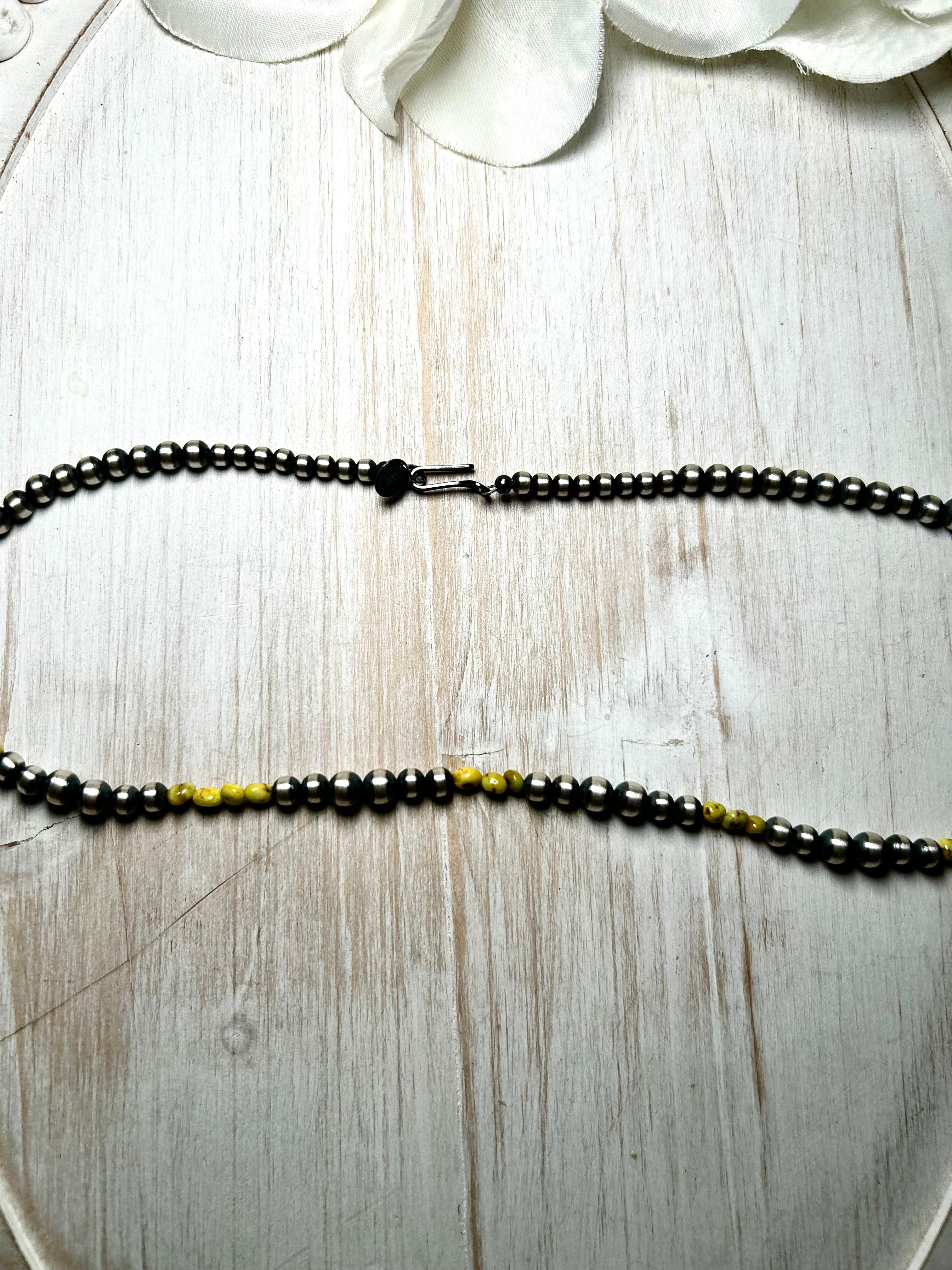 Navajo Strung Palomino Variscite & Sterling Silver Necklace