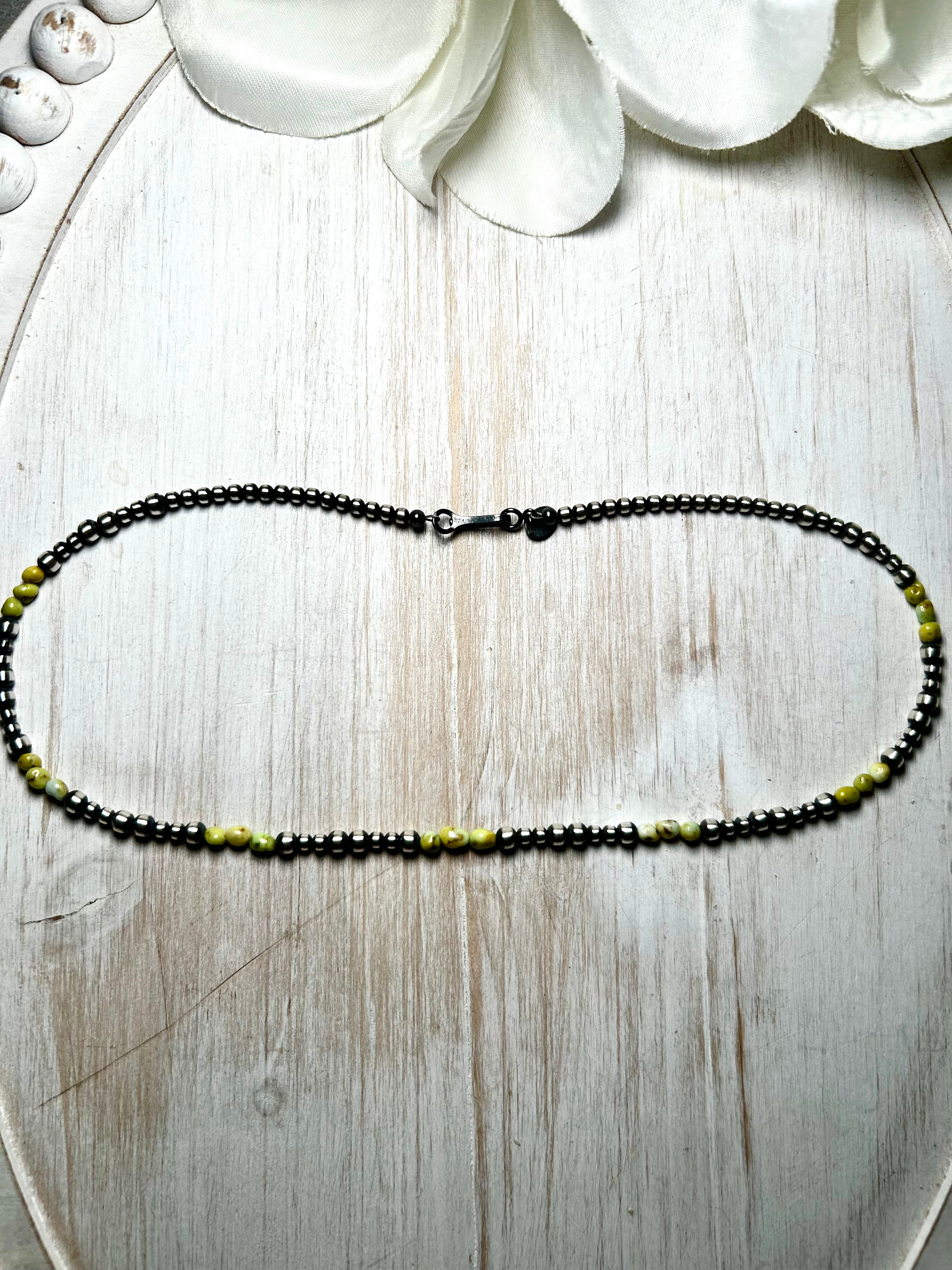 Navajo Strung Palomino Variscite & Sterling Silver Necklace