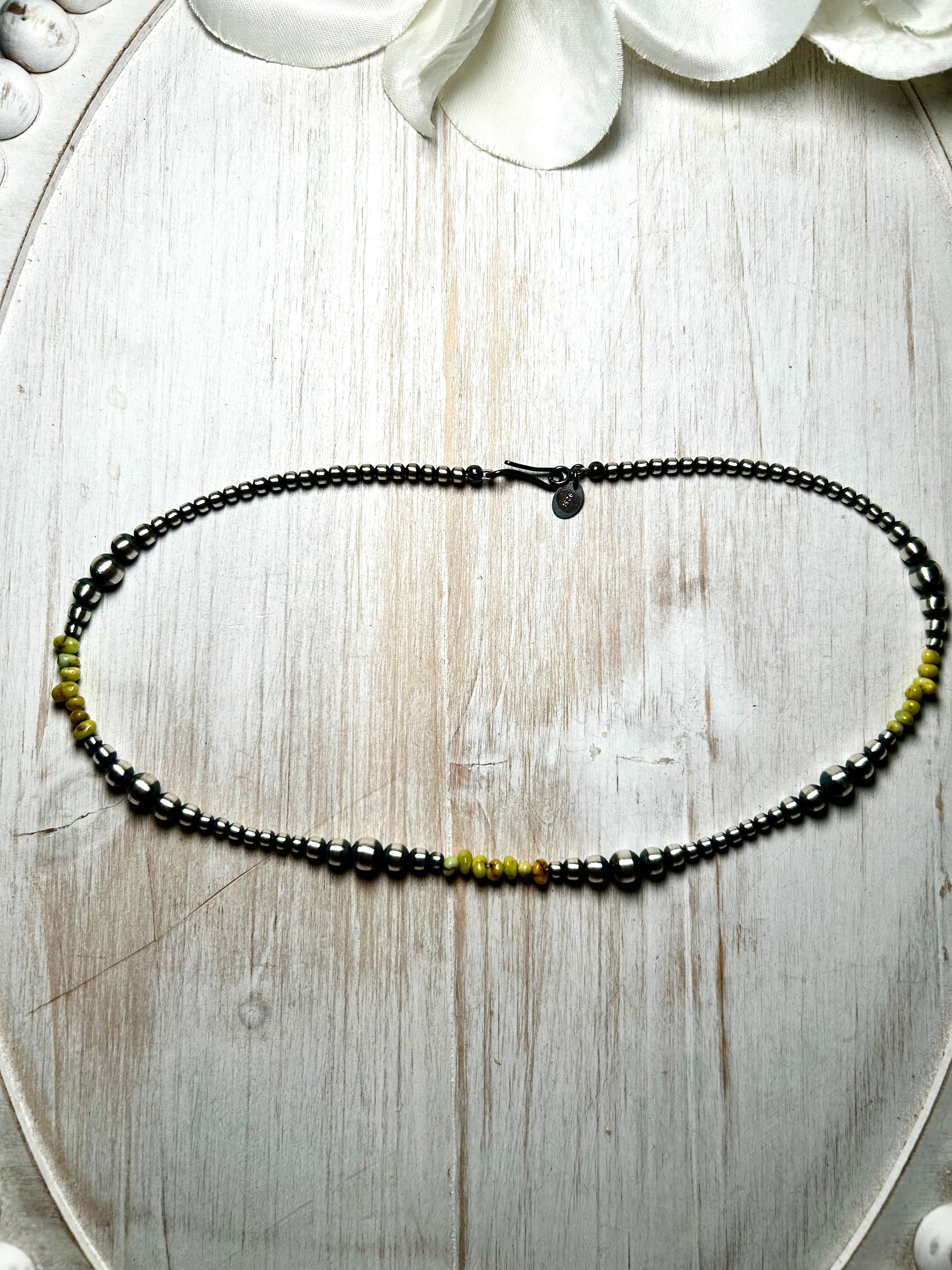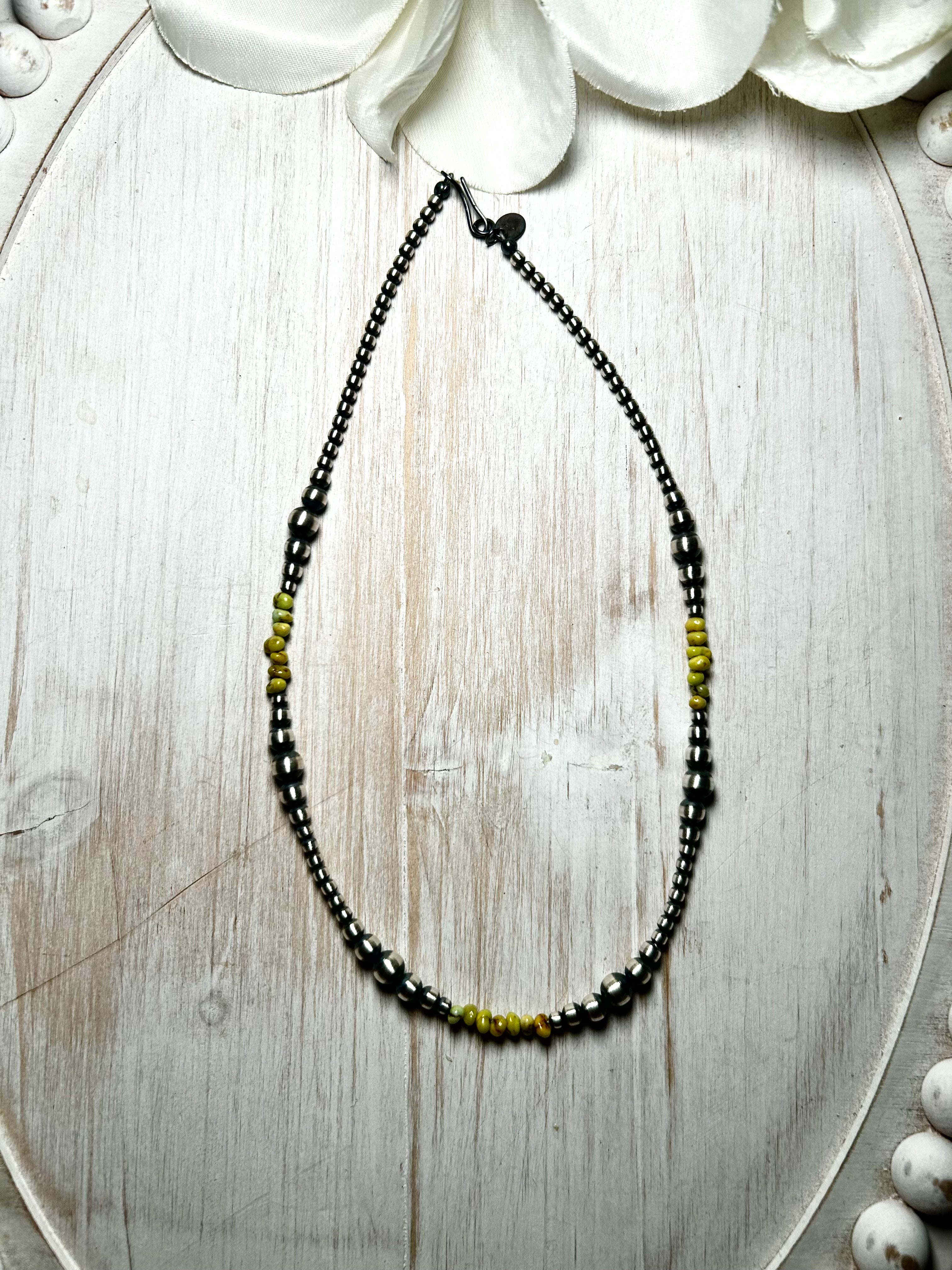 Navajo Strung Palomino Variscite & Sterling Silver Necklace