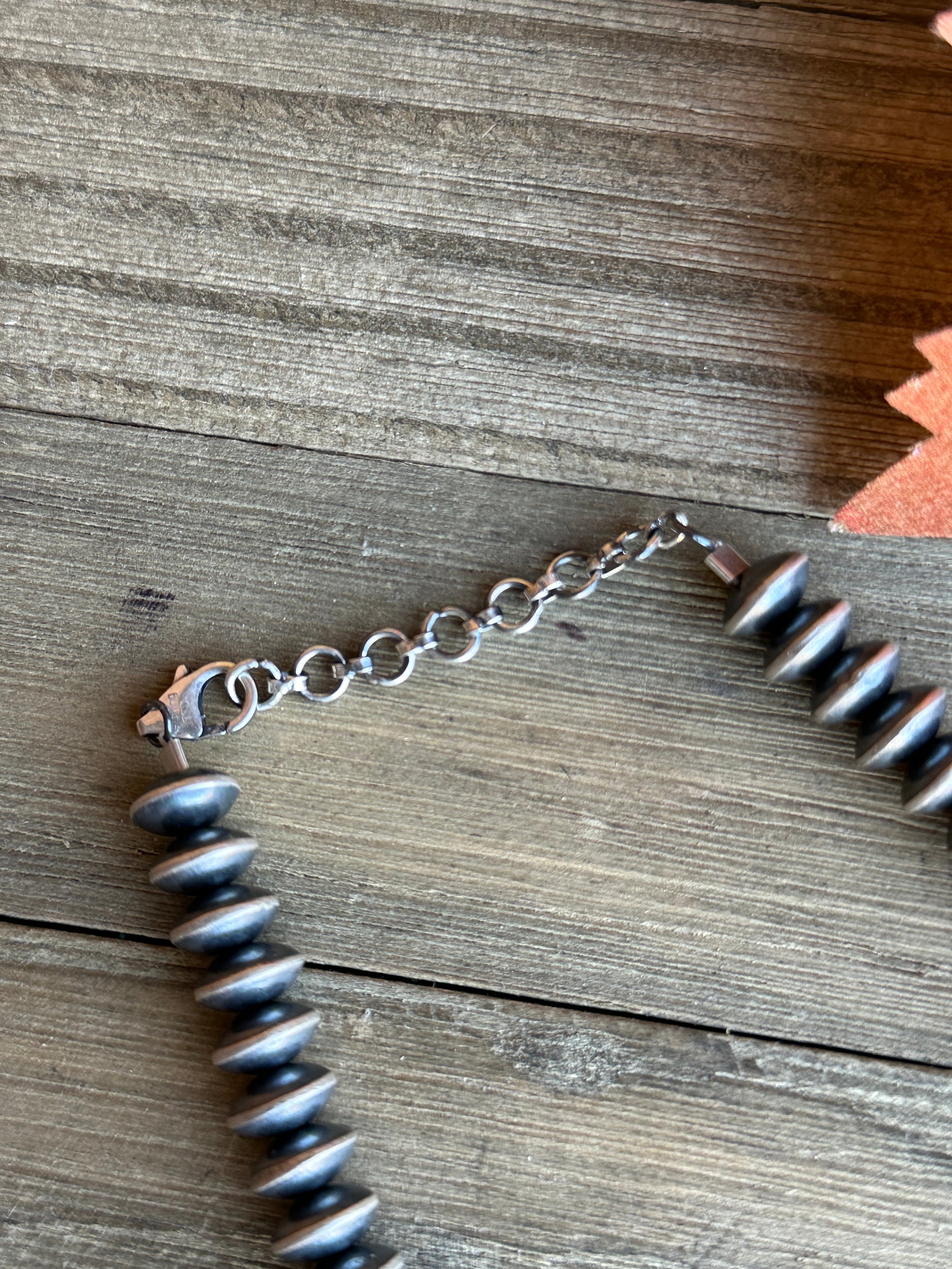 Southwest Handmade Sterling Silver 10 MM Disk Pearls Beaded Necklace