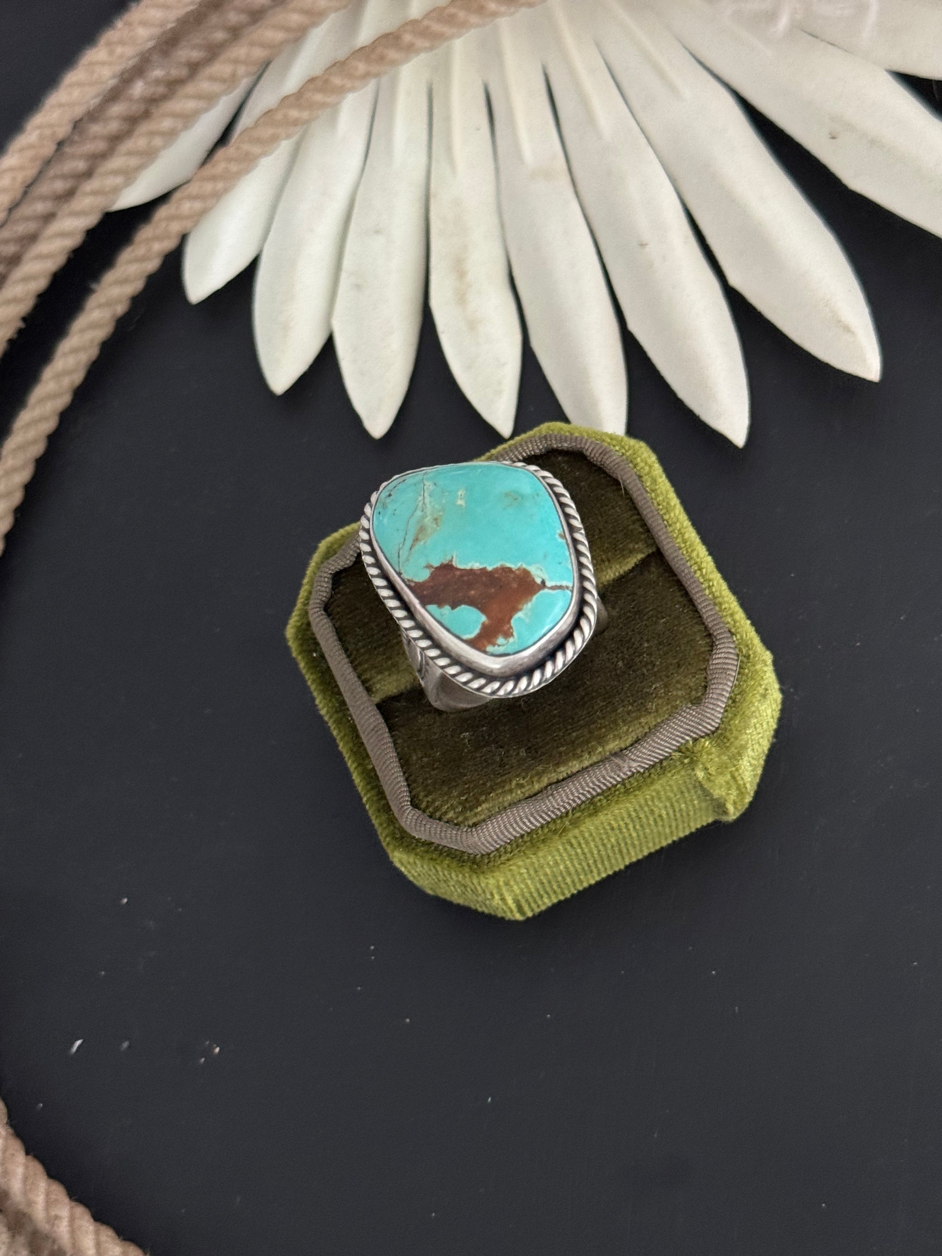 Patrick Yazzie #8 Turquoise & Sterling Silver Ring Size 9.5