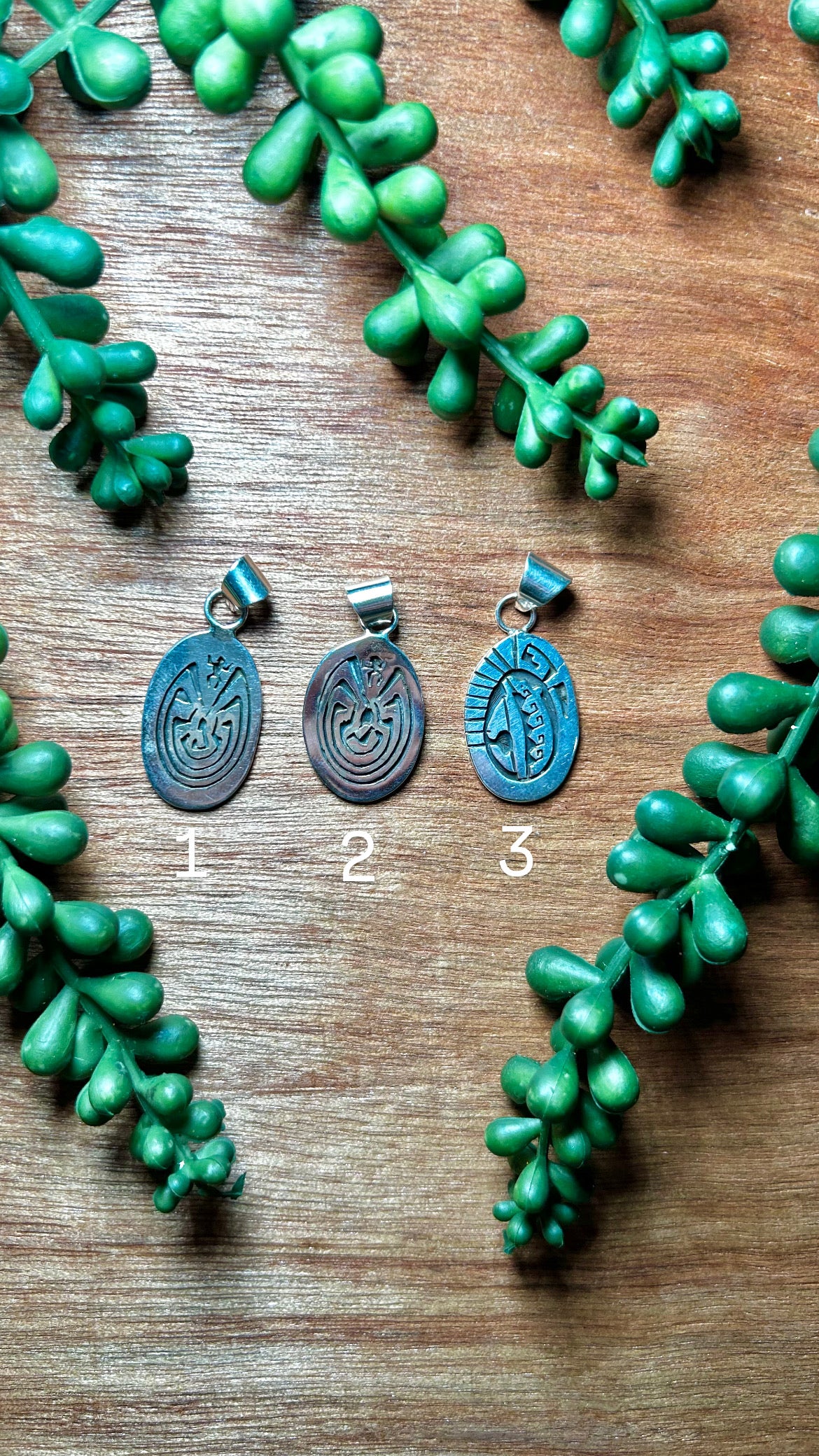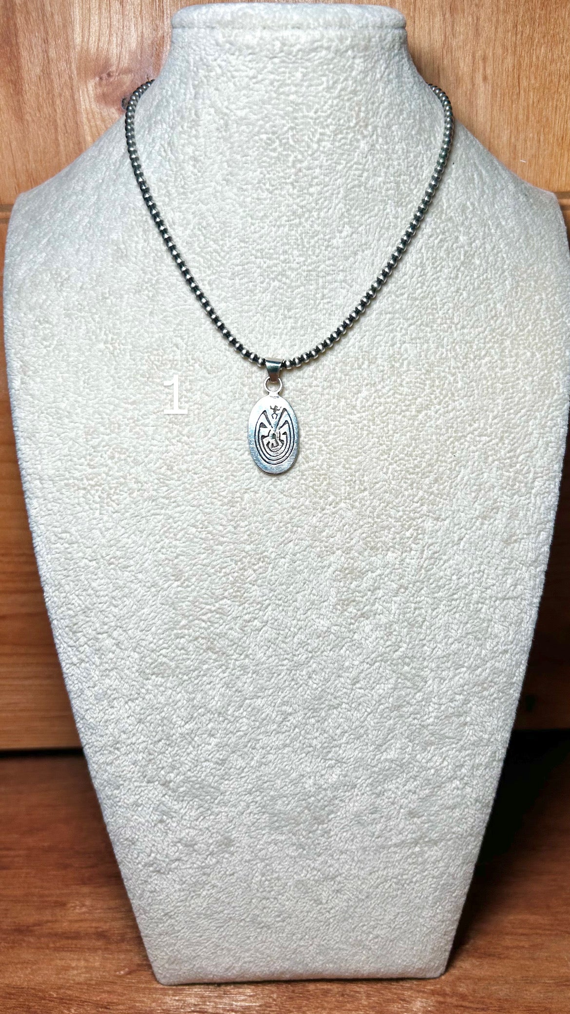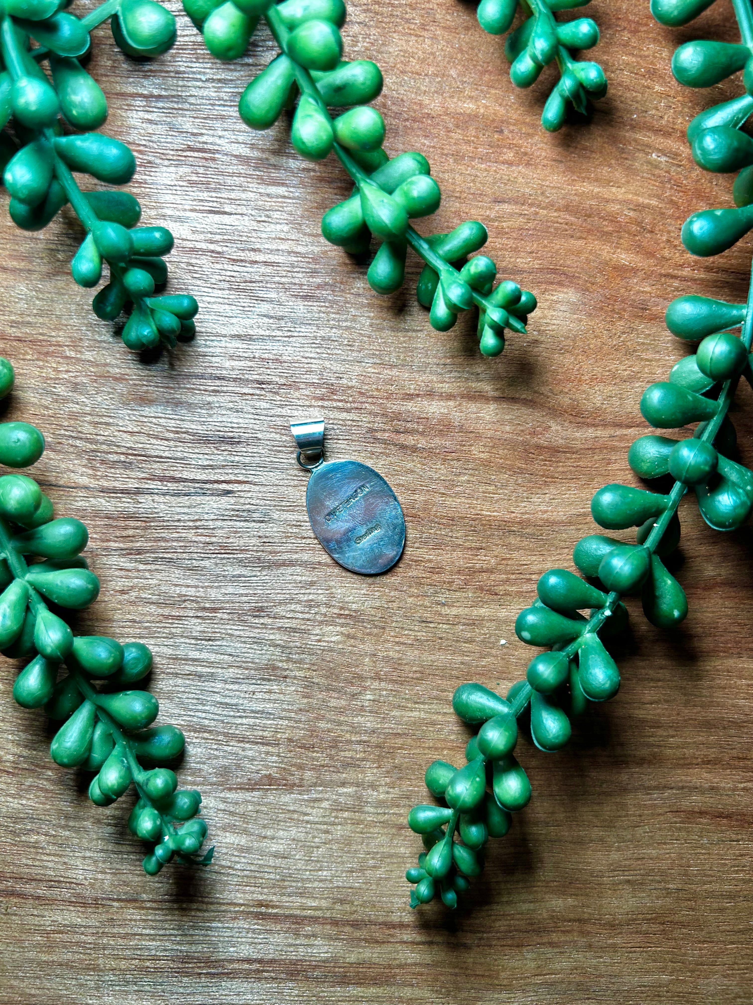Calvin Peterson Sterling Silver Pendant. It measures 1 3/8 inches long and 5/8 of an inch wide. Pendant Only! Signed by the artist and stamped sterling silver.