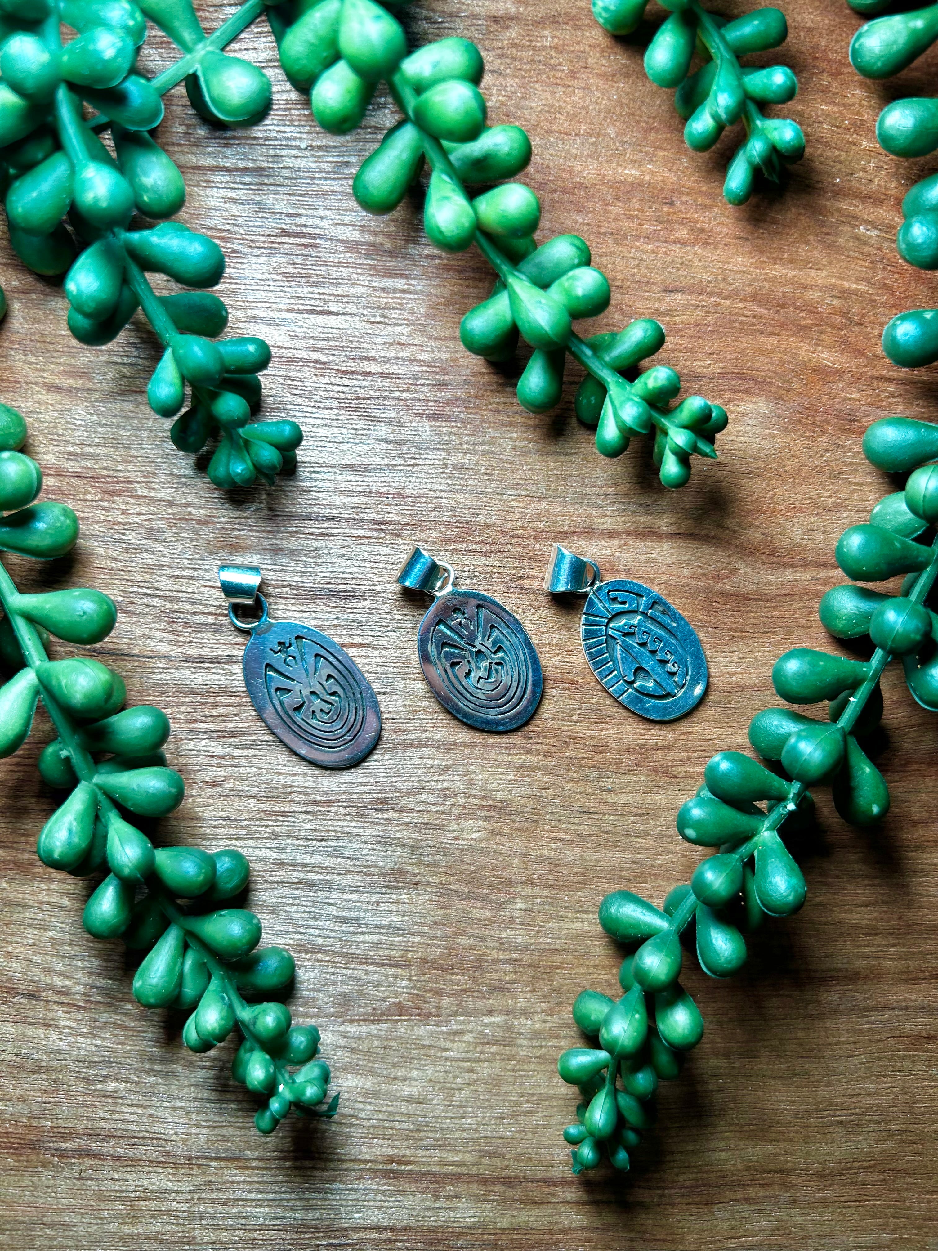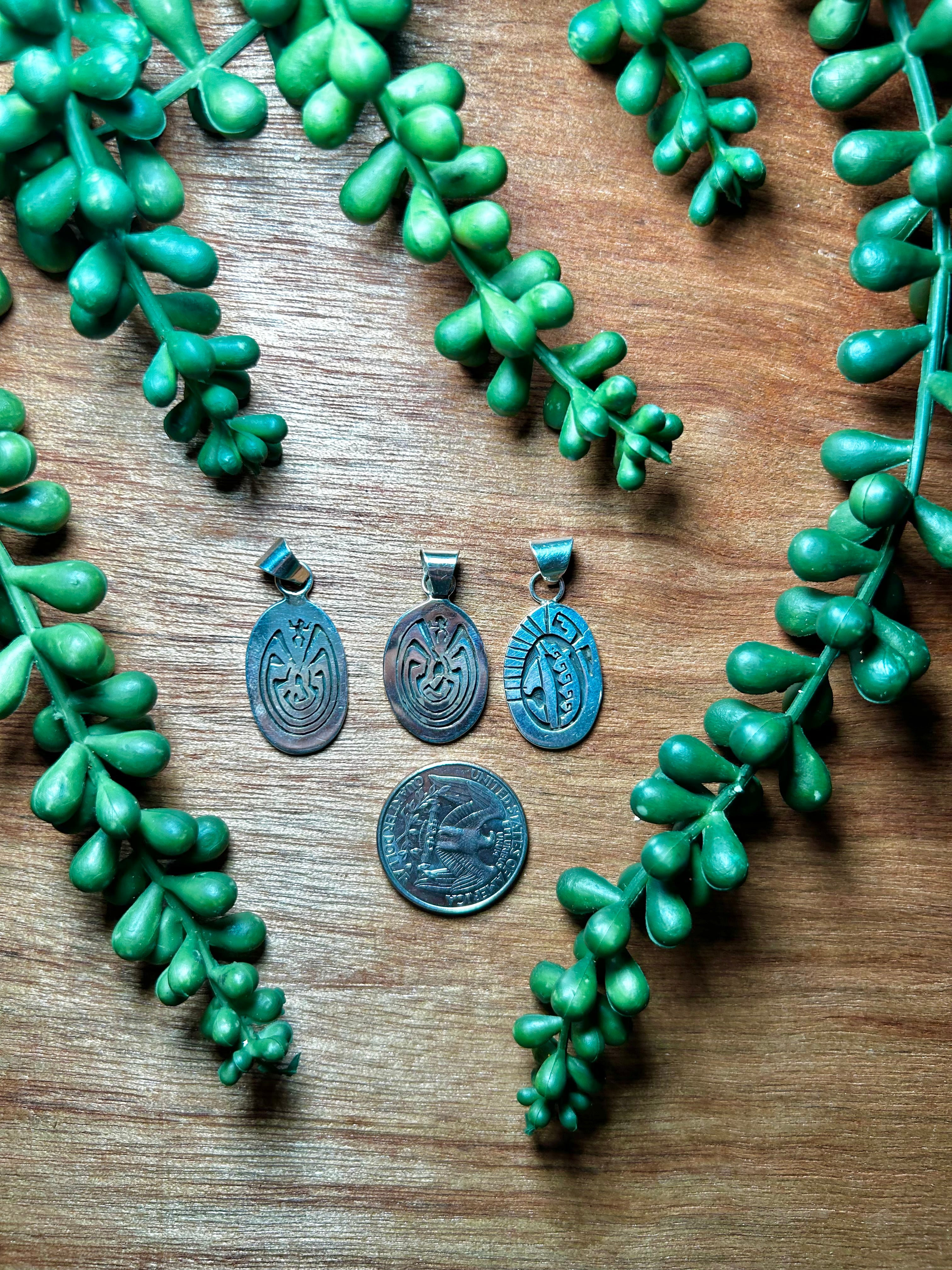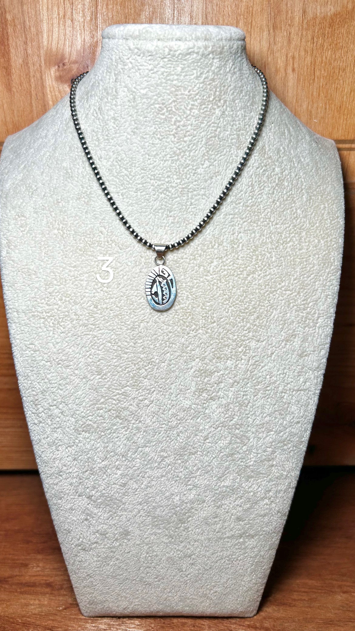 Calvin Peterson Sterling Silver Pendant. It measures 1 3/8 inches long and 5/8 of an inch wide. Pendant Only! Signed by the artist and stamped sterling silver.