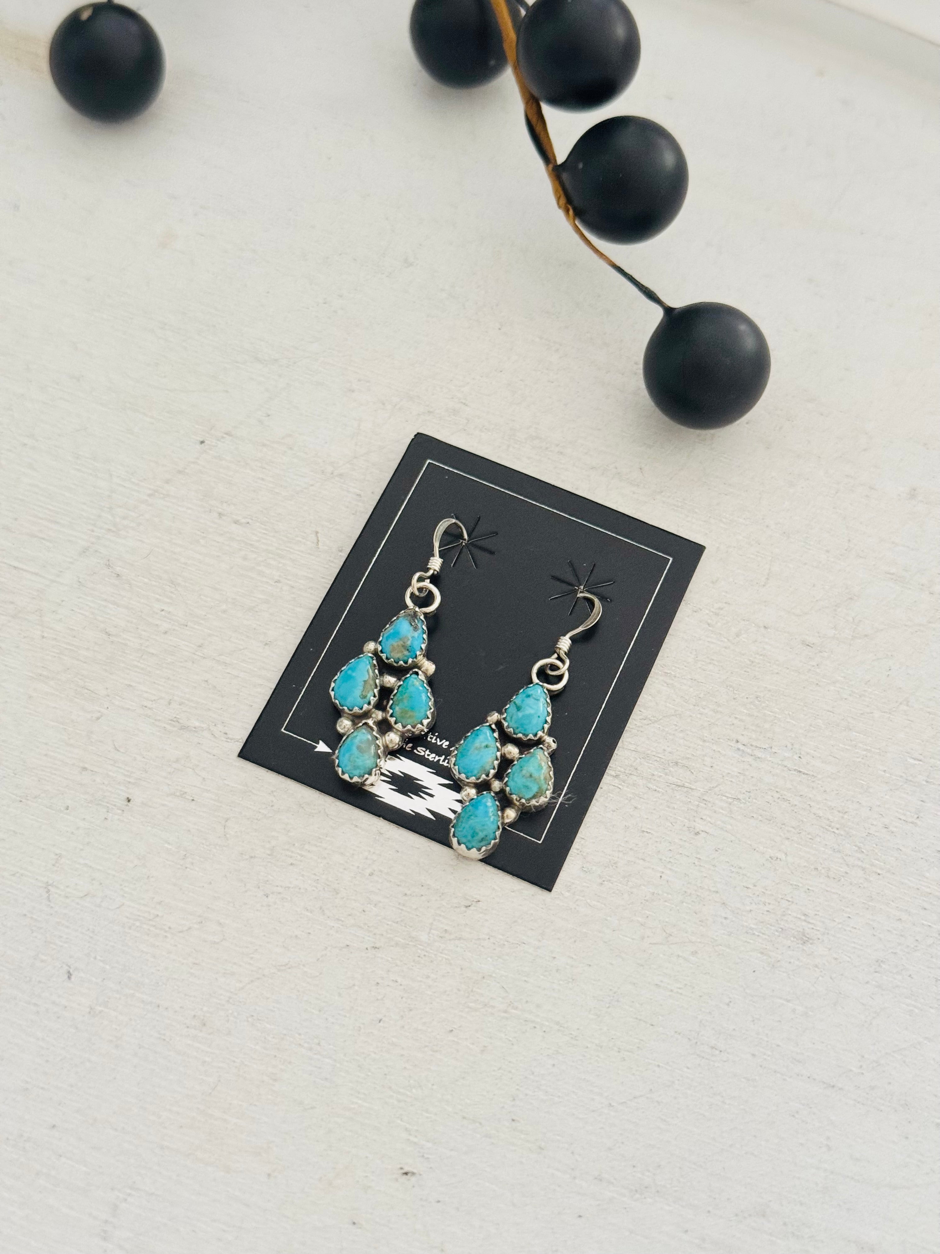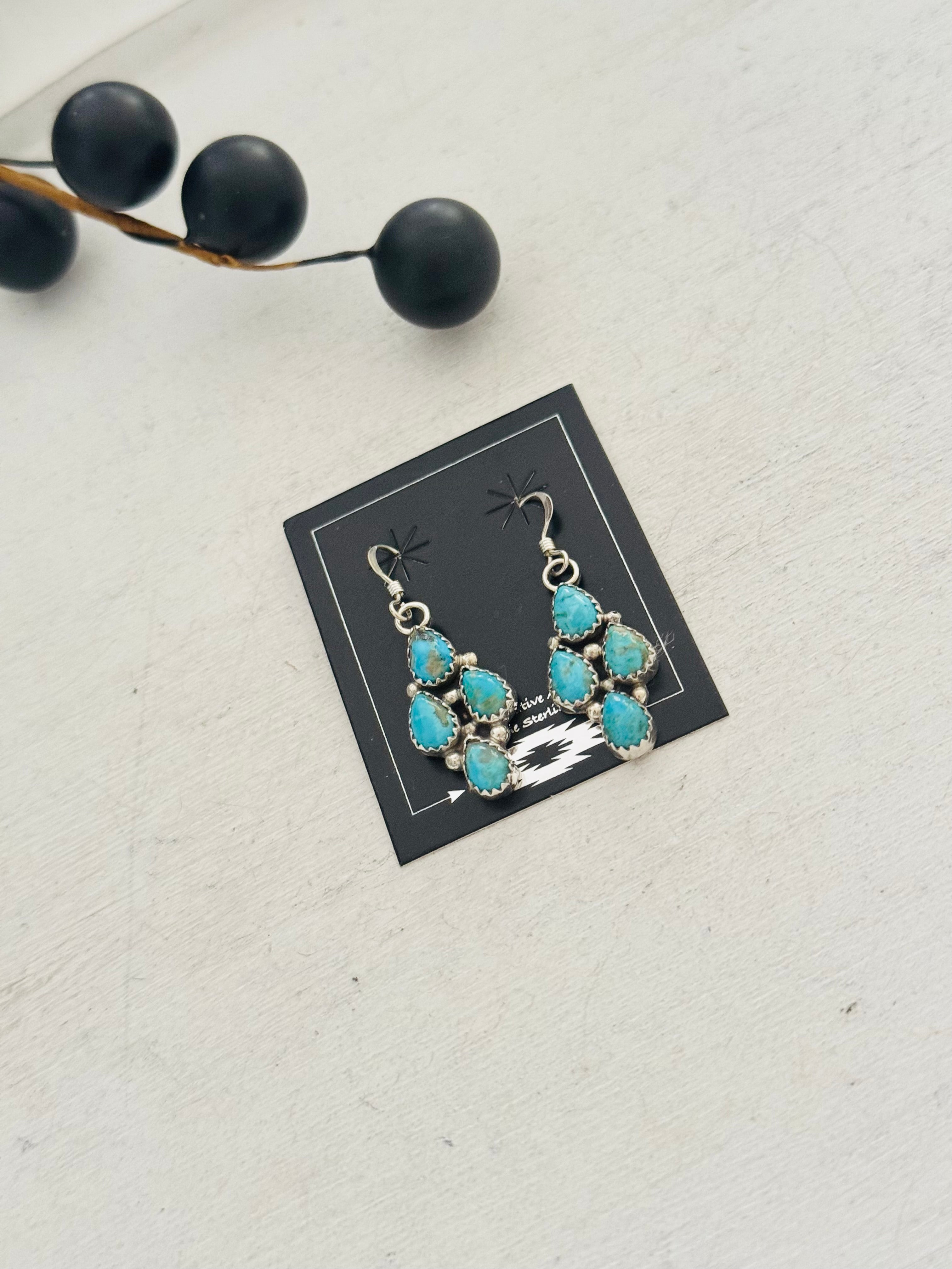 Pearline Spencer Kingman Turquoise & Sterling Silver Cluster Dangle Earrings