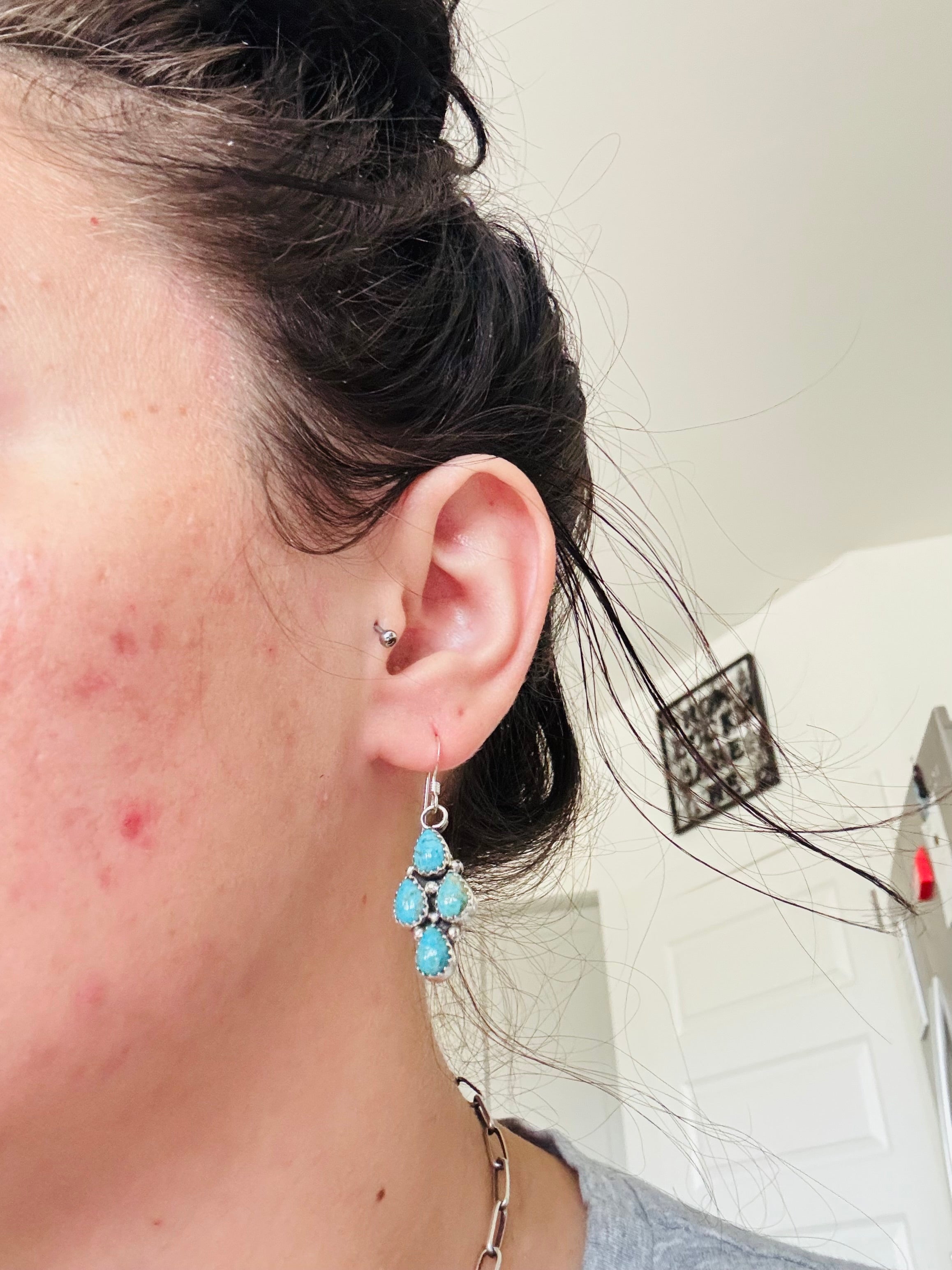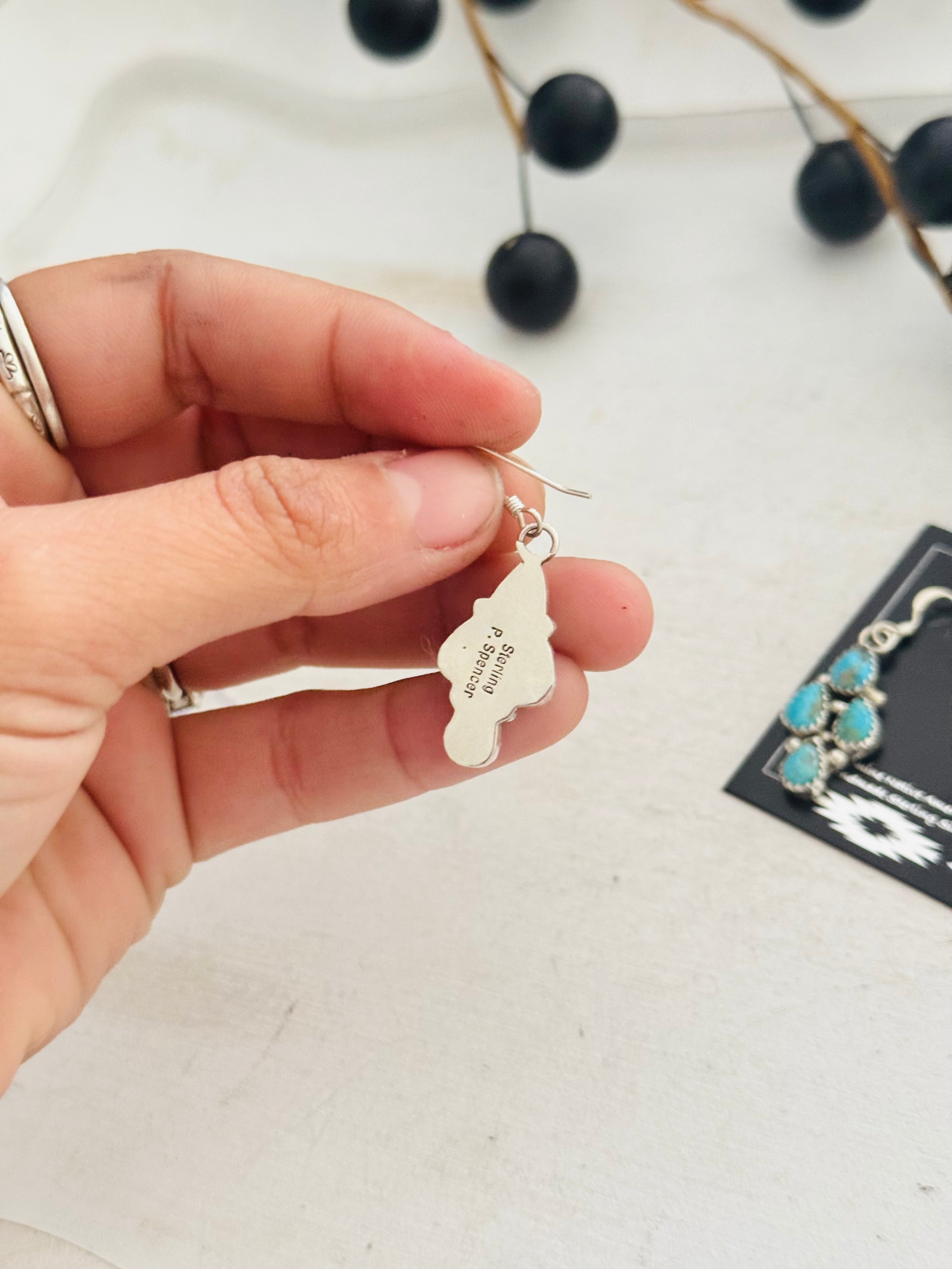 Pearline Spencer Kingman Turquoise & Sterling Silver Cluster Dangle Earrings. They measure 1 1/2 inches long and 1/2 of an inch wide. Signed and stamped. Stones will differ due to natural stones.