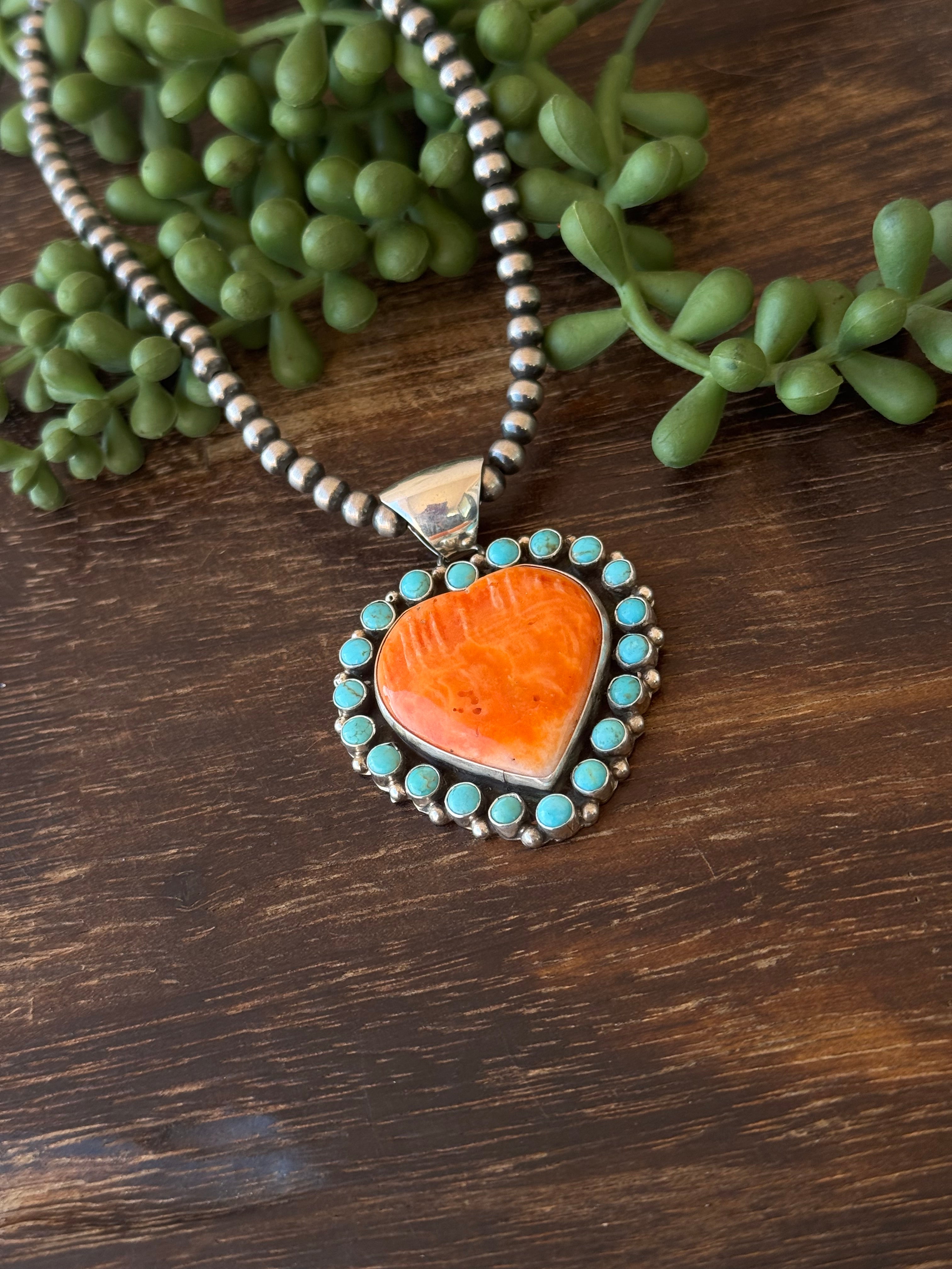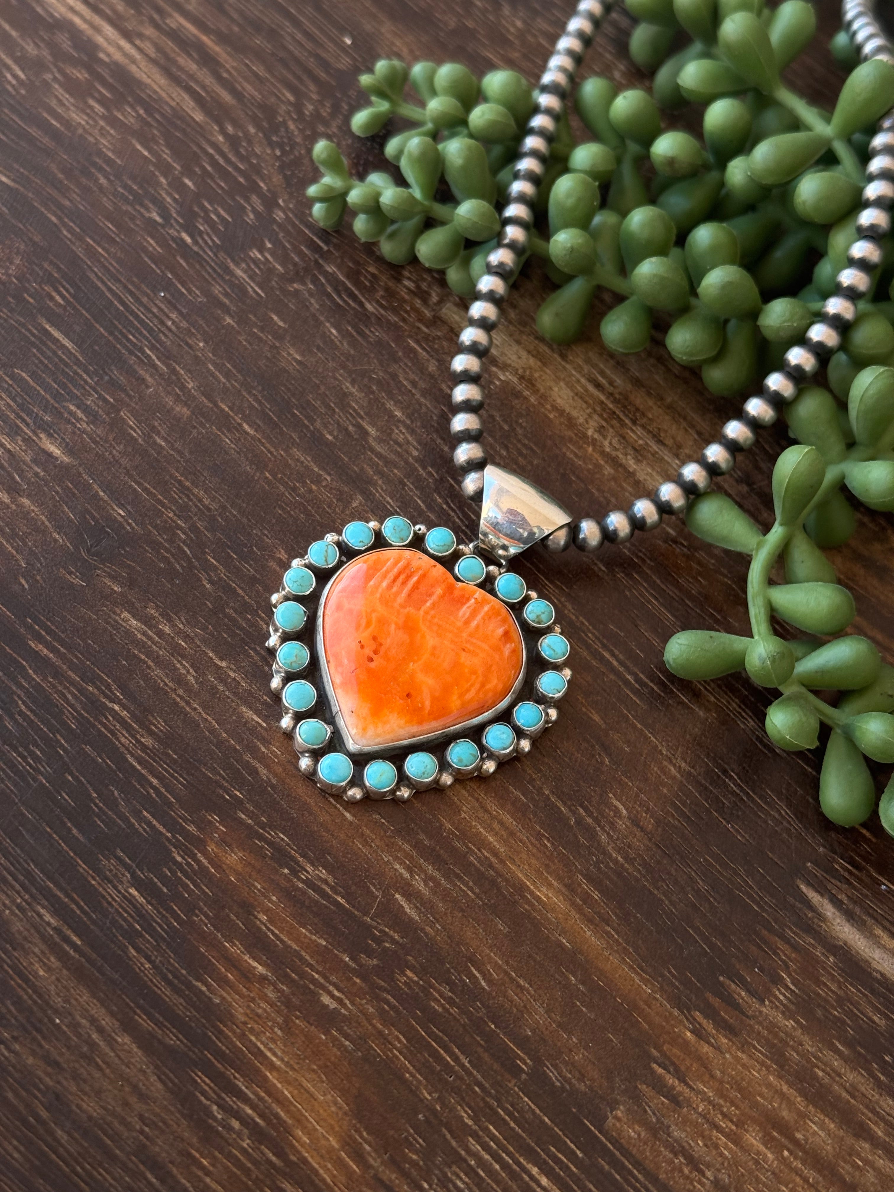 Peggy Skeets Multi Stone & Sterling Silver Cluster Heart Pendant