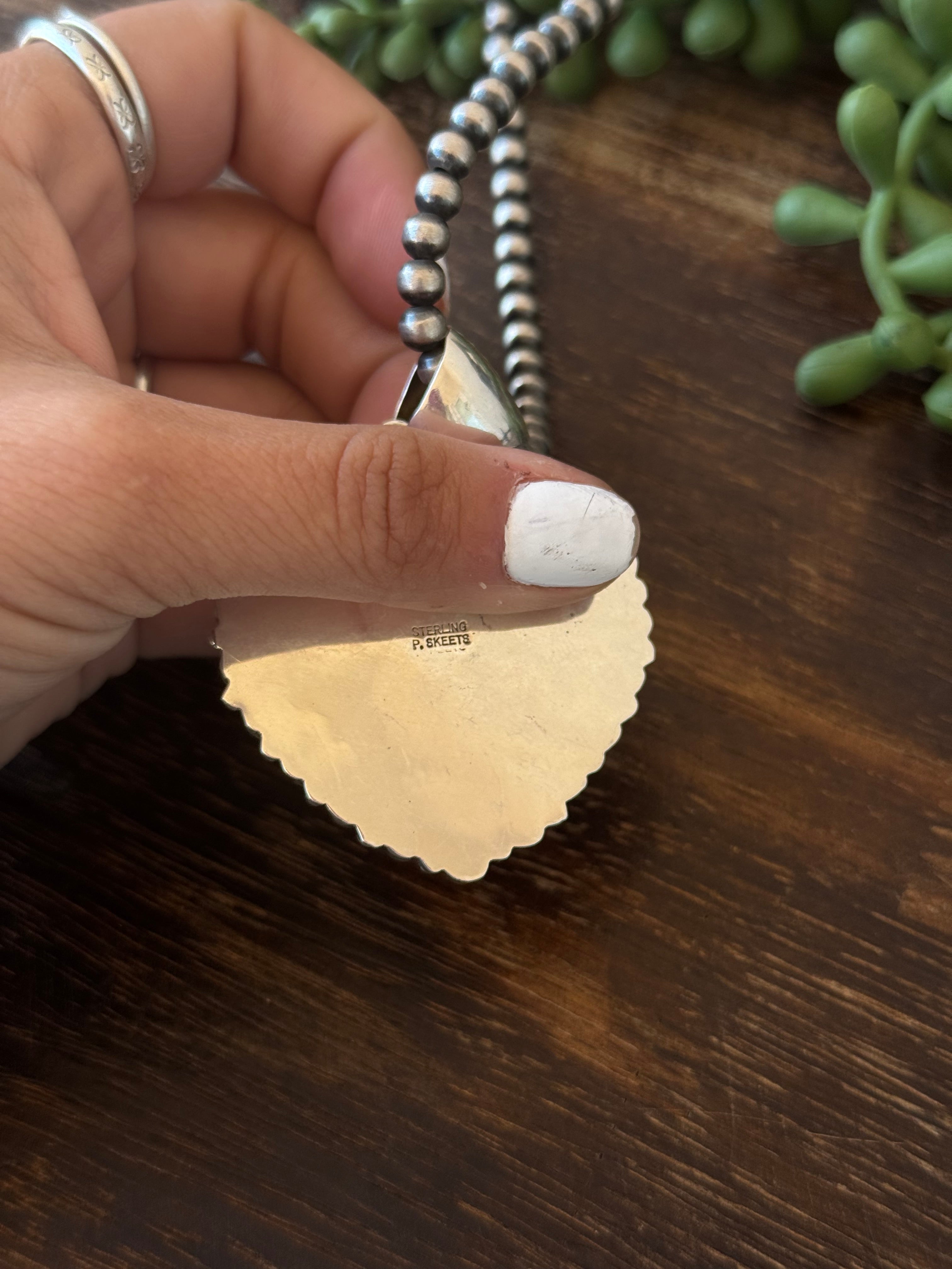 Peggy Skeets Multi Stone & Sterling Silver Cluster Heart Pendant. It measures 2 1/4 inches long and 1 3/4 inches wide. Pendant Only. Stamped and signed.
