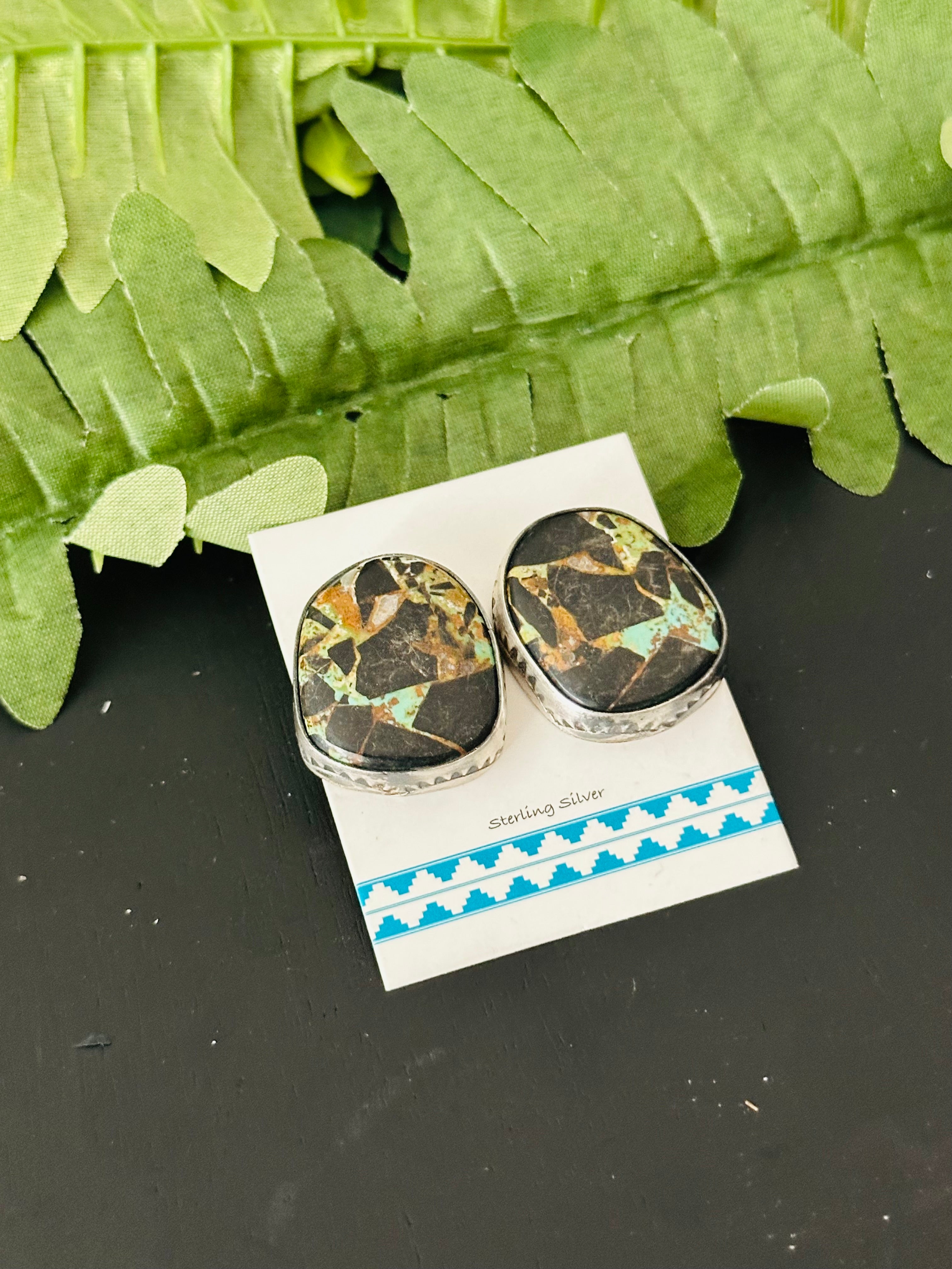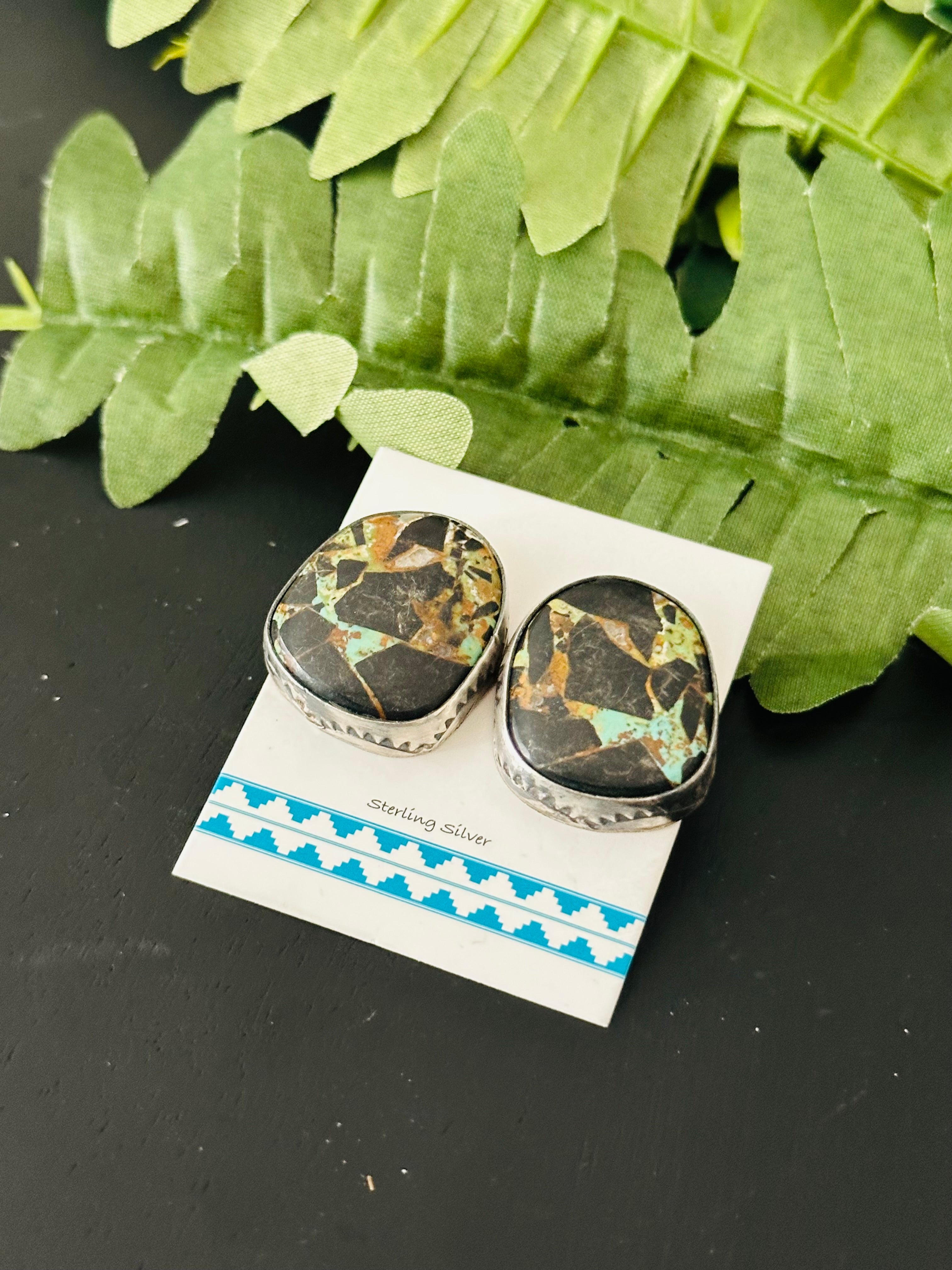 Pete Skeets Black Jack Turquoise & Sterling Silver Post Earrings