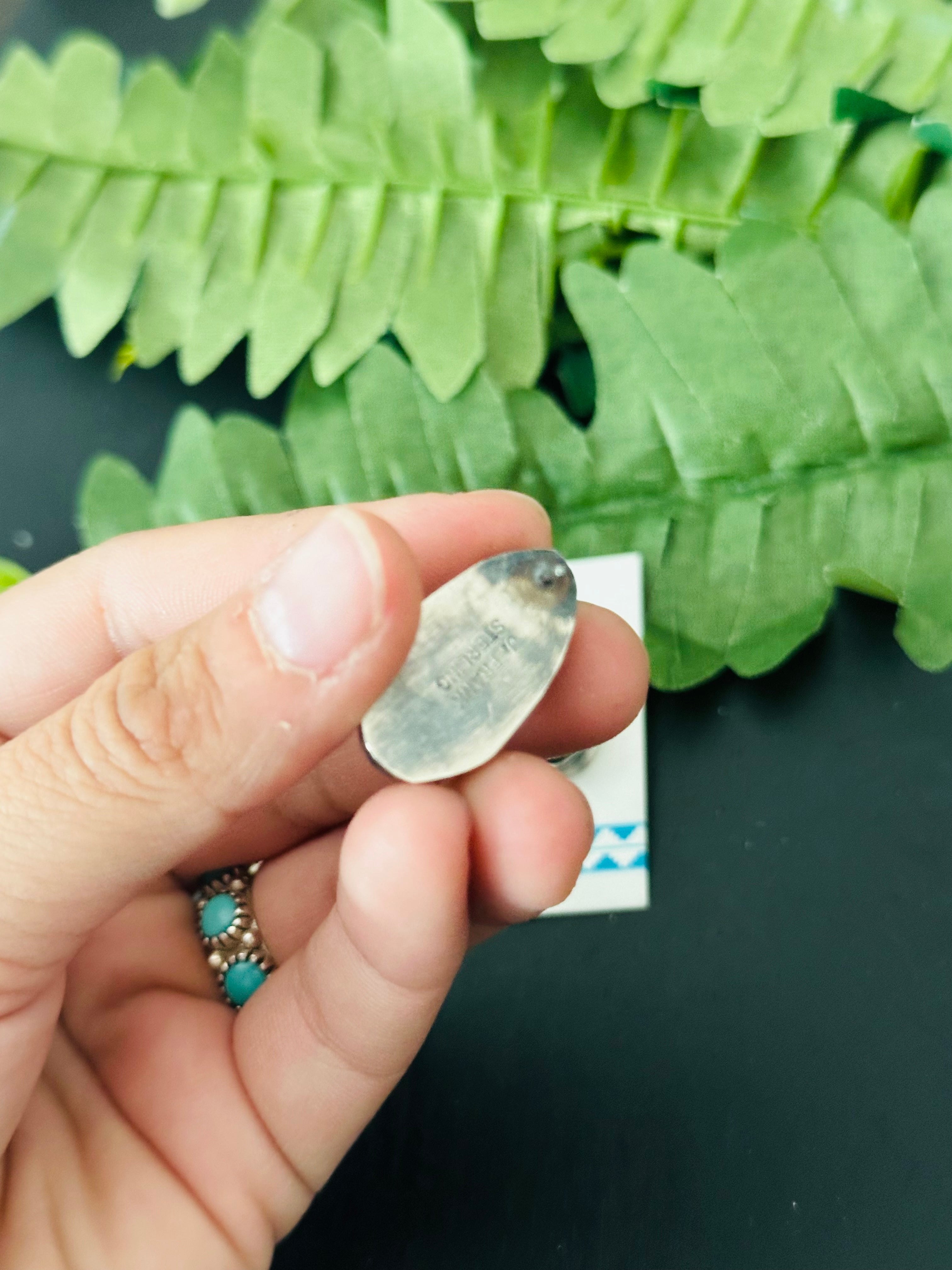 Pete Skeets Black Jack & Sterling Silver Post Earrings. They measures 1 inch long and 7/8 of an inch wide. Signed by the artist and stamped sterling silver.