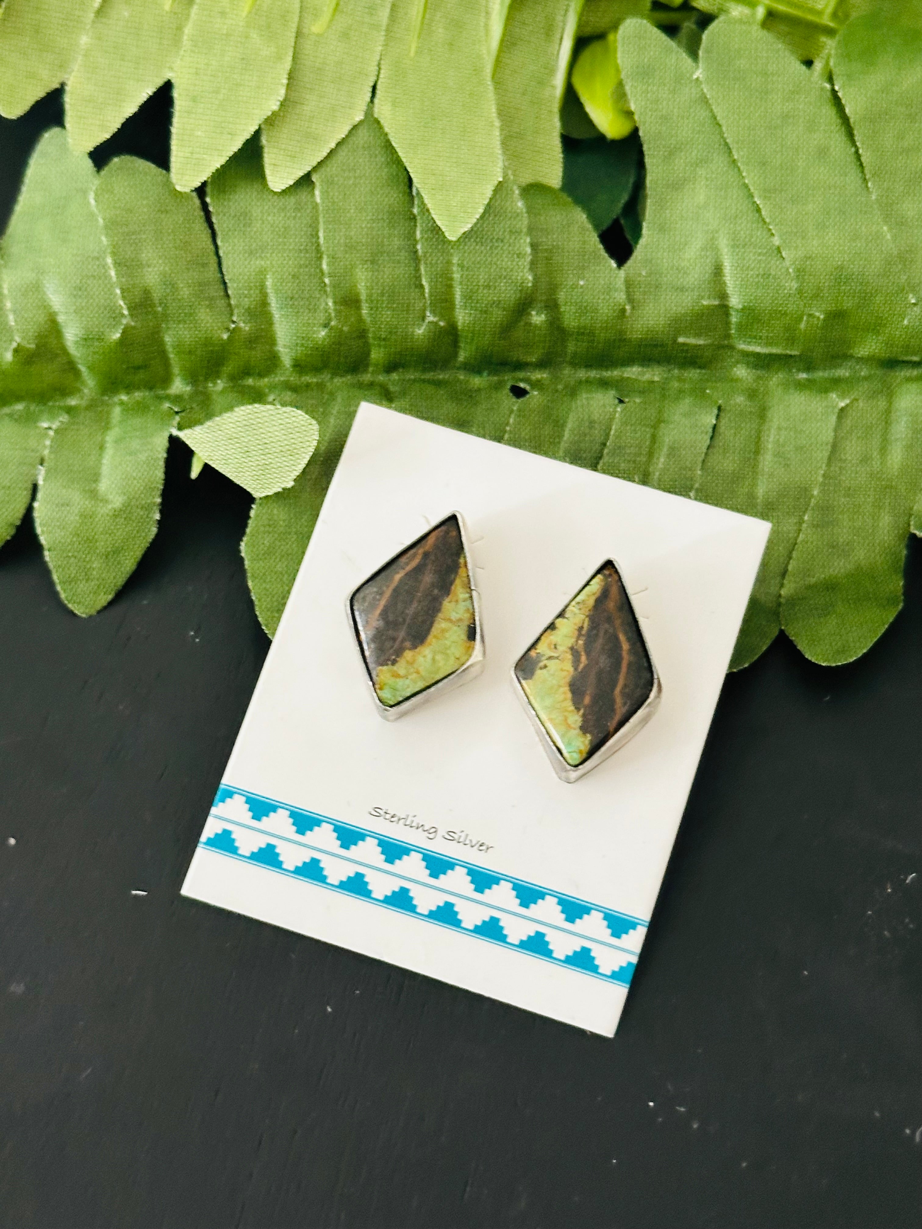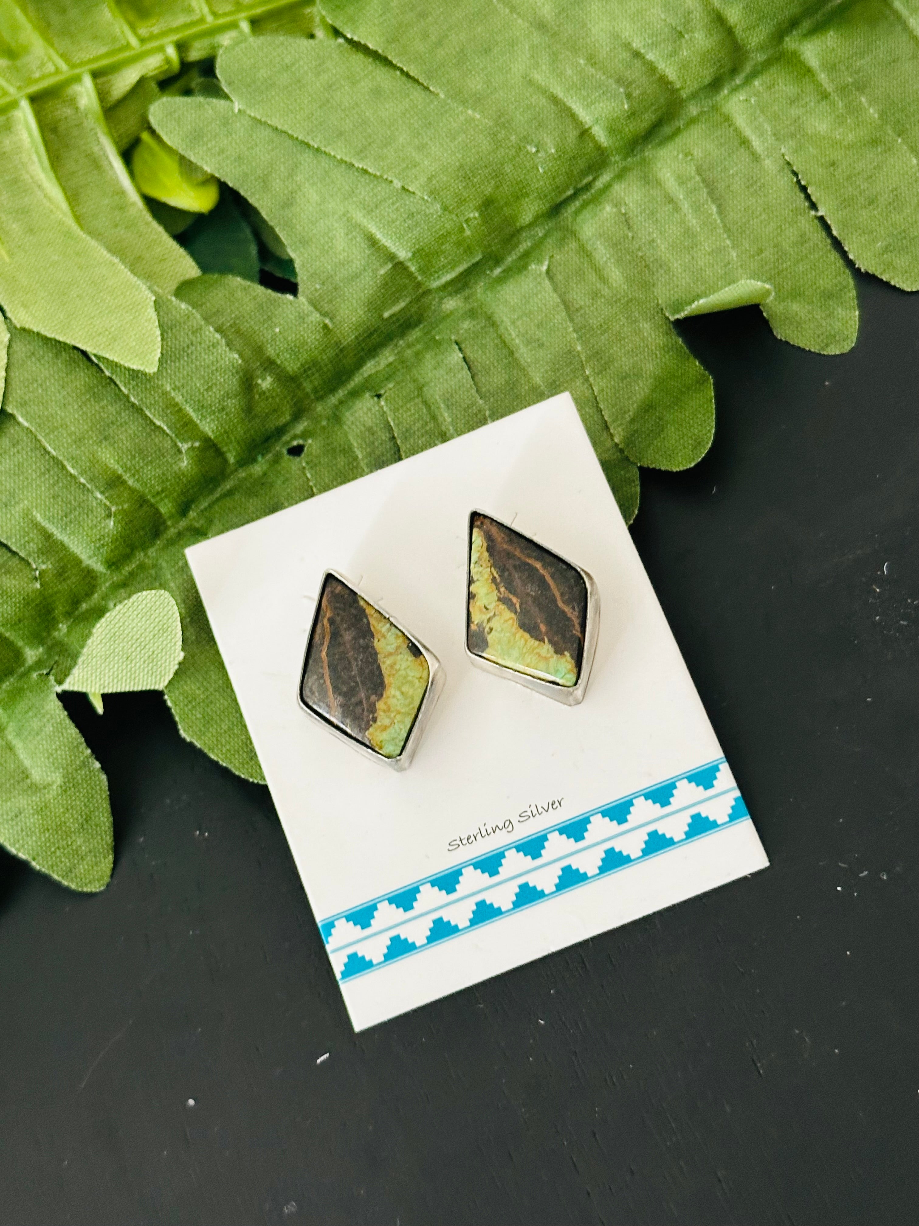 Pete Skeets Black Jack Turquoise & Sterling Silver Post Earrings
