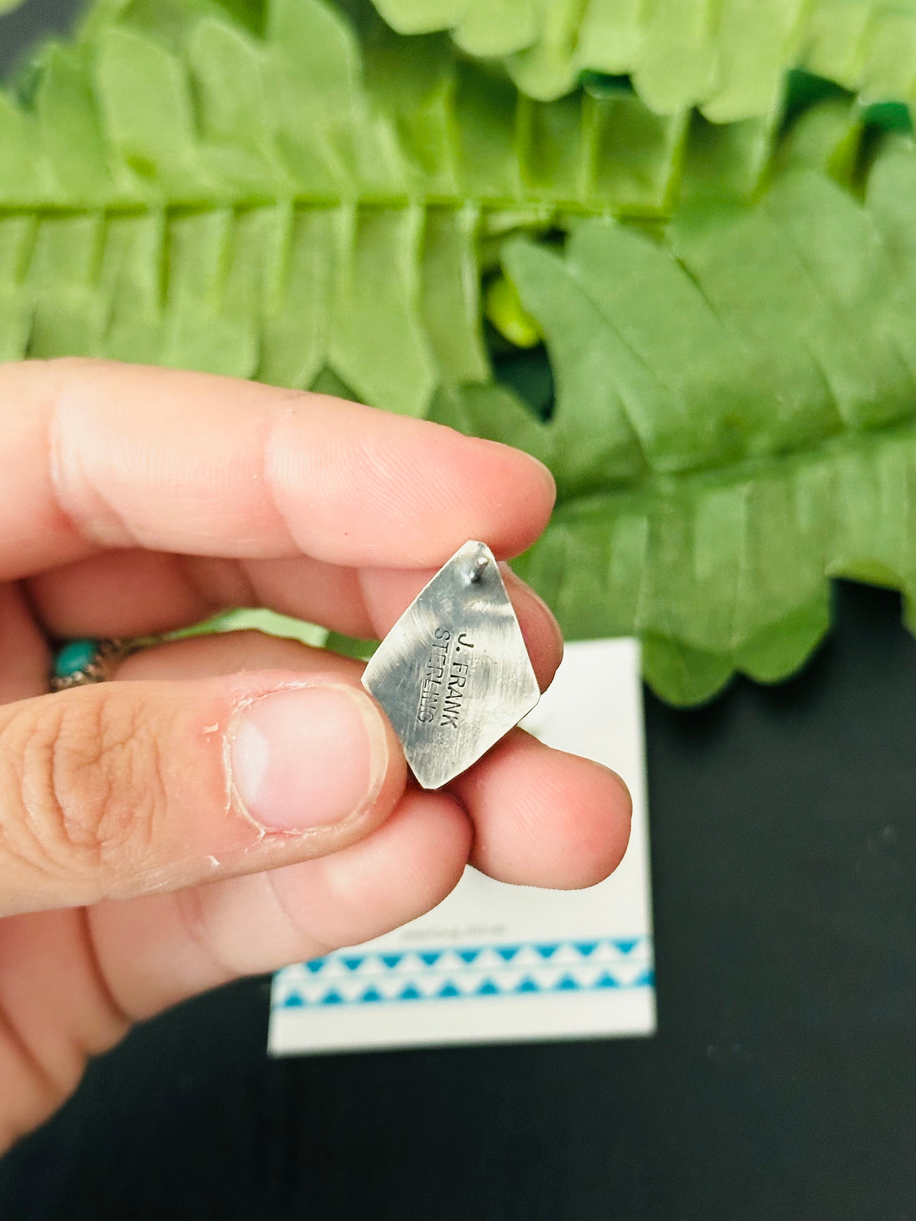 Pete Skeets Black Jack & Sterling Silver Post Earrings. They measures 7/8 of an inch long and 1/2 of an inch wide. Signed by the artist and stamped sterling silver.