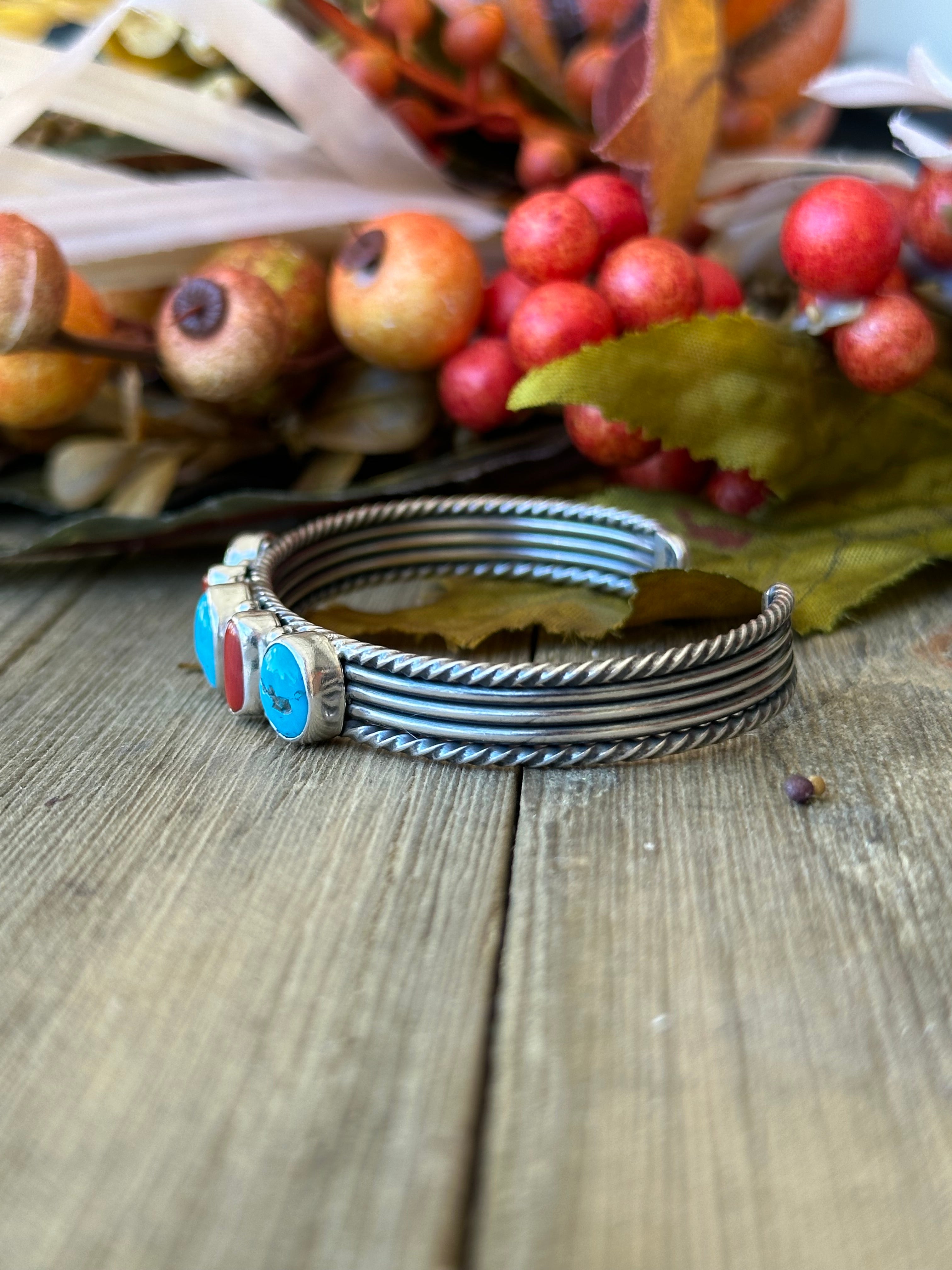 Priscilla A Smith Multi Stone & Sterling Silver Cuff Bracelet