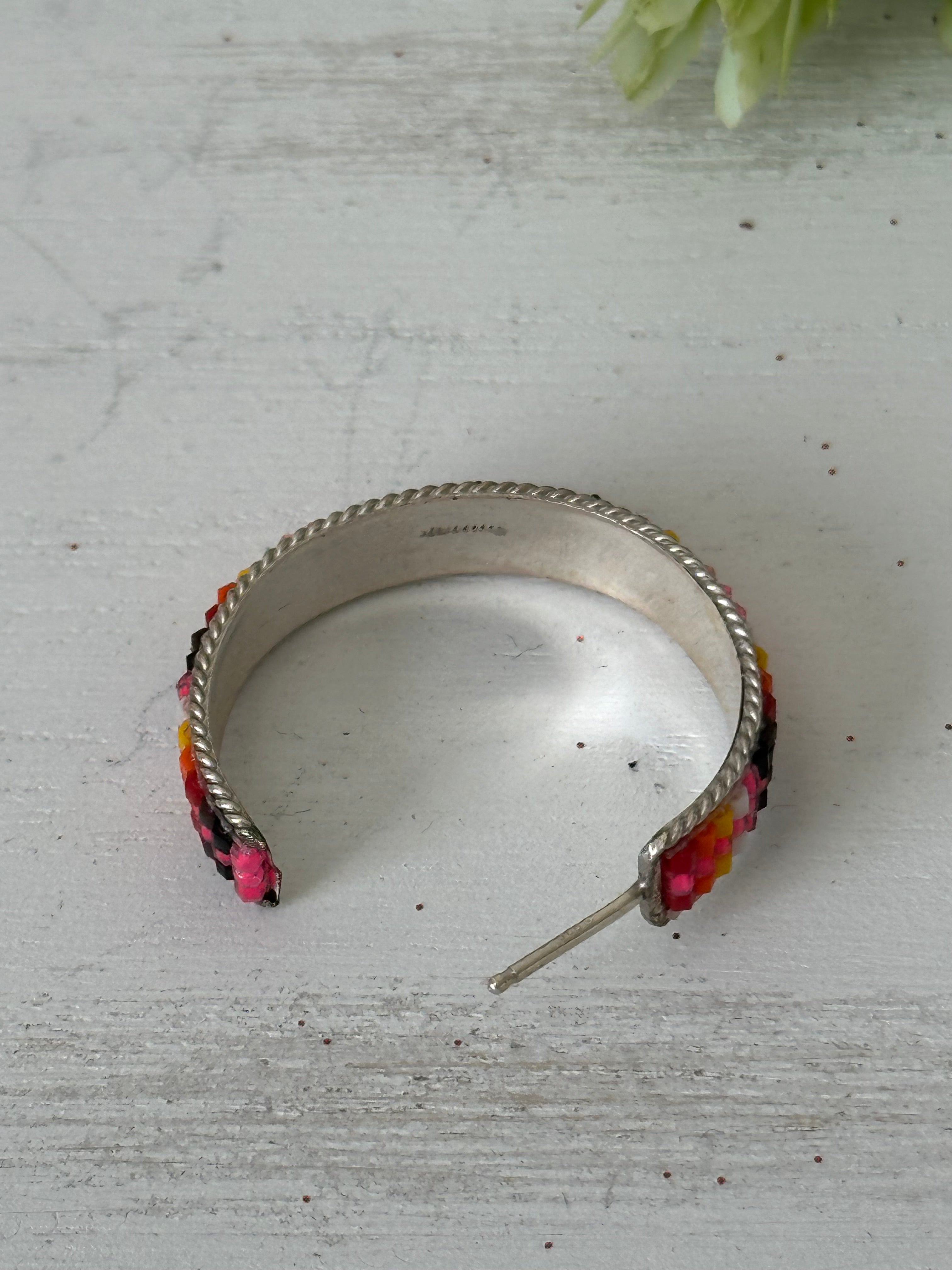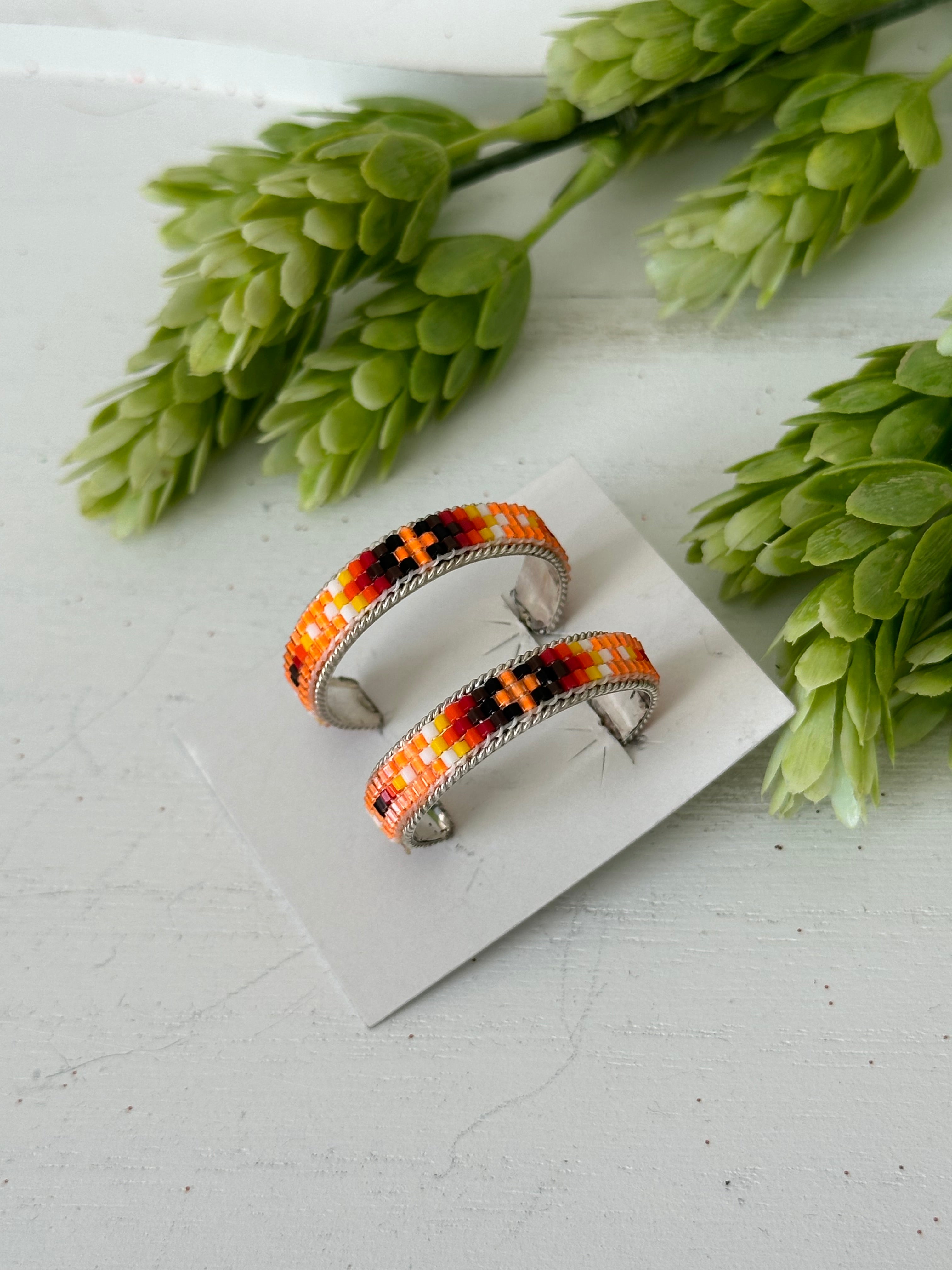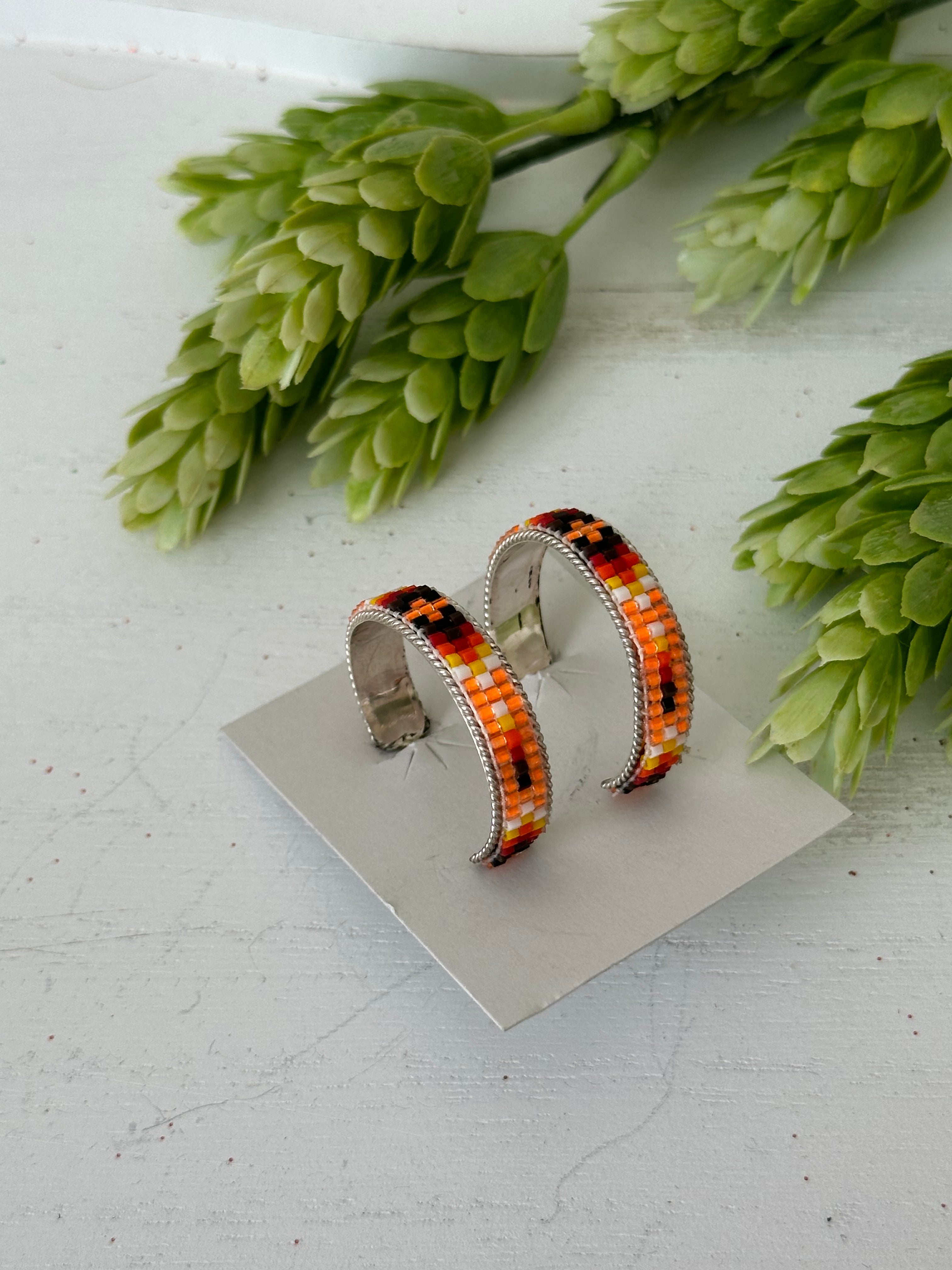 Ramone Yazzie Beaded Sterling Silver Hoop Post Earrings