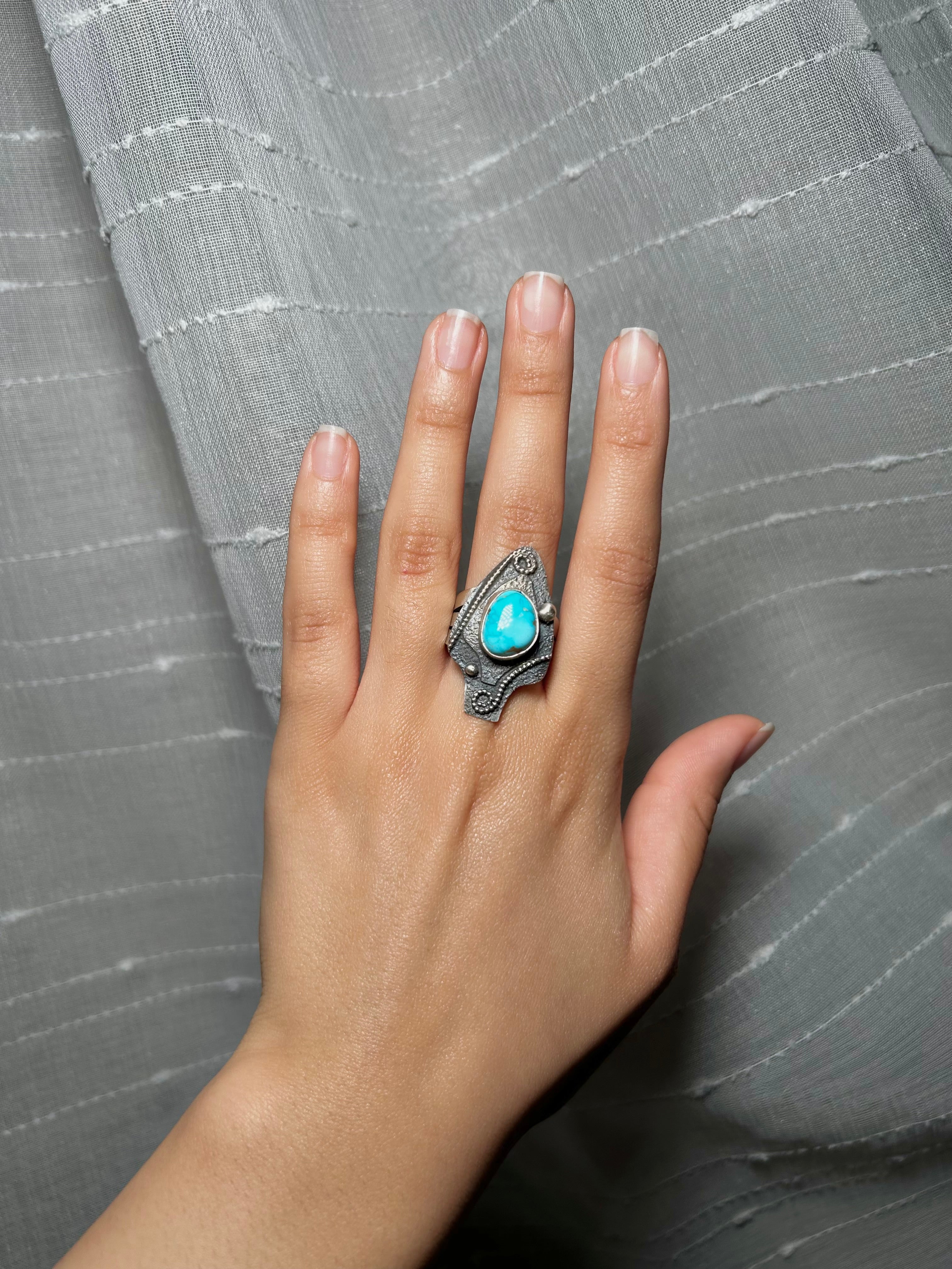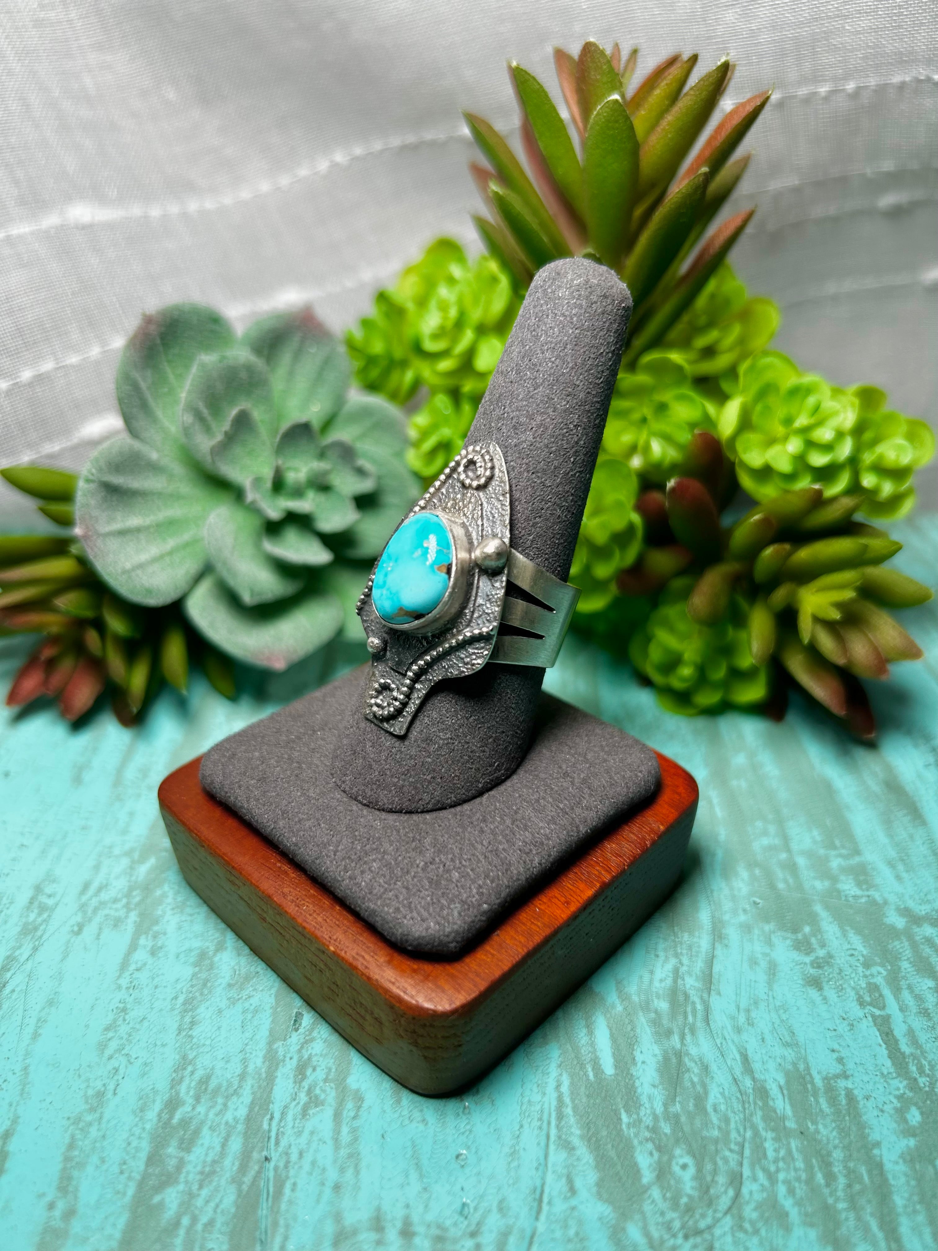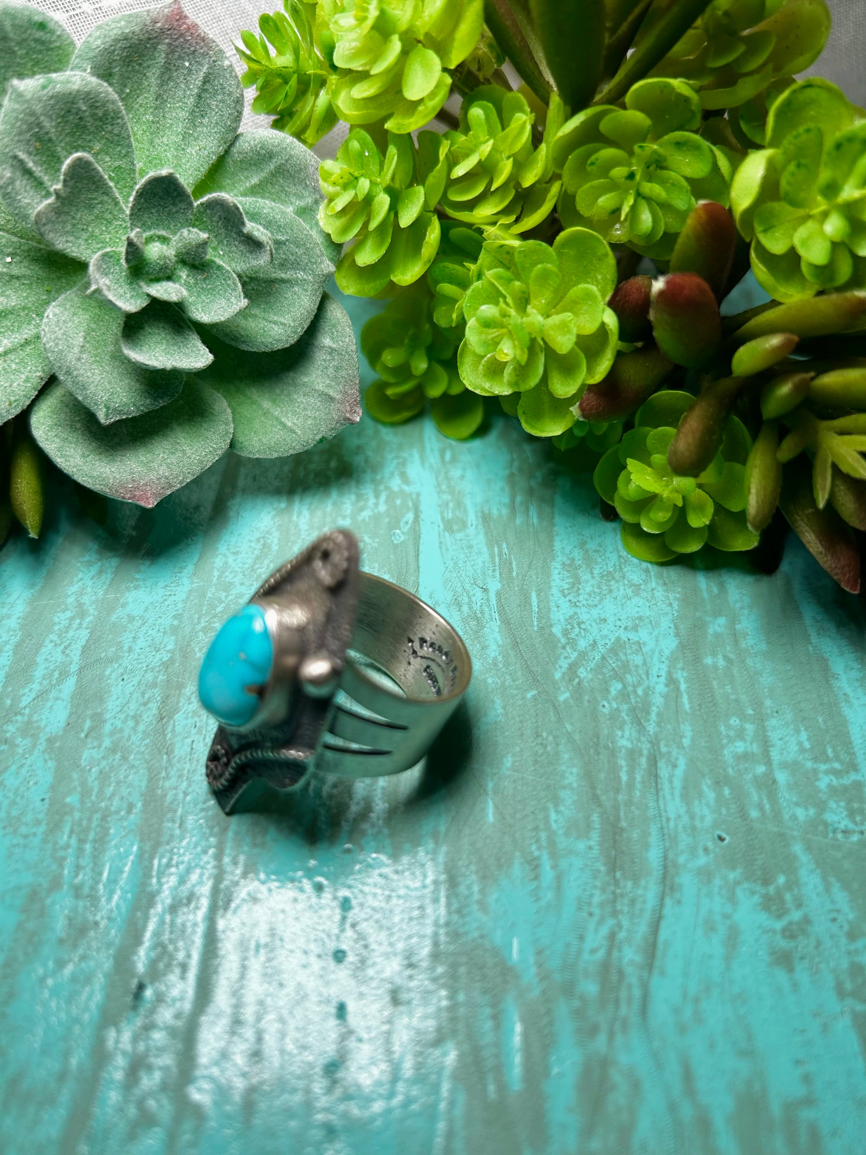 Randy Billy Kingman Turquoise & Sterling Sliver Ring Size 9.75