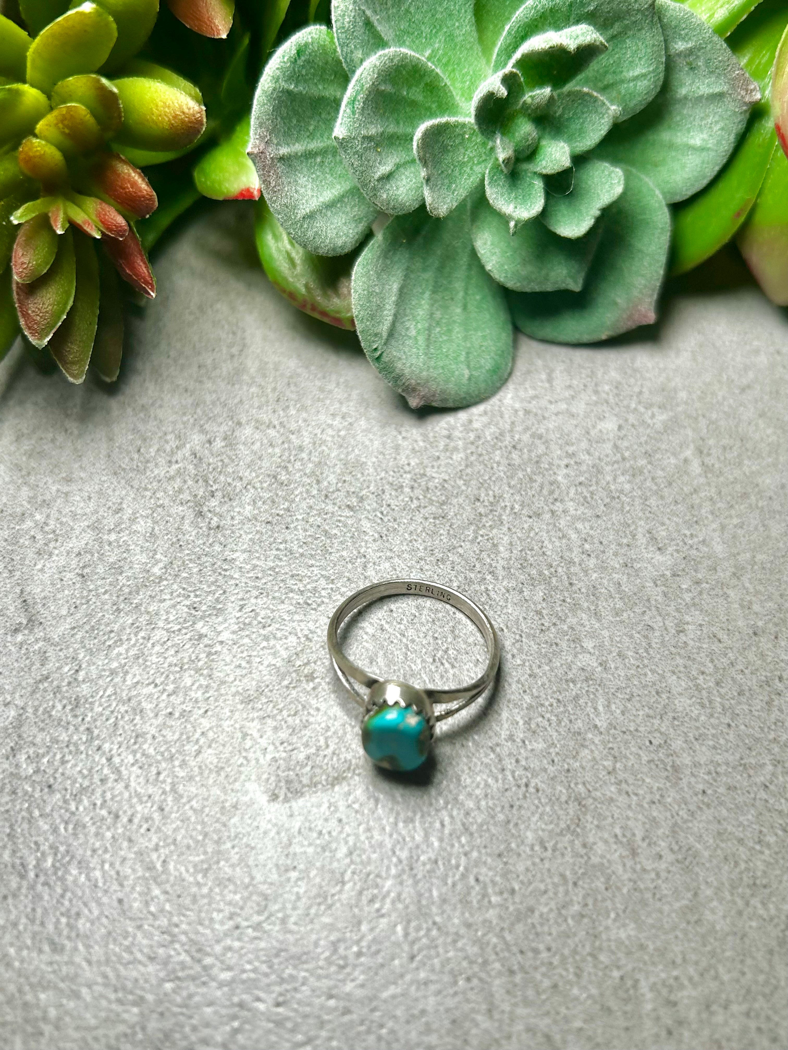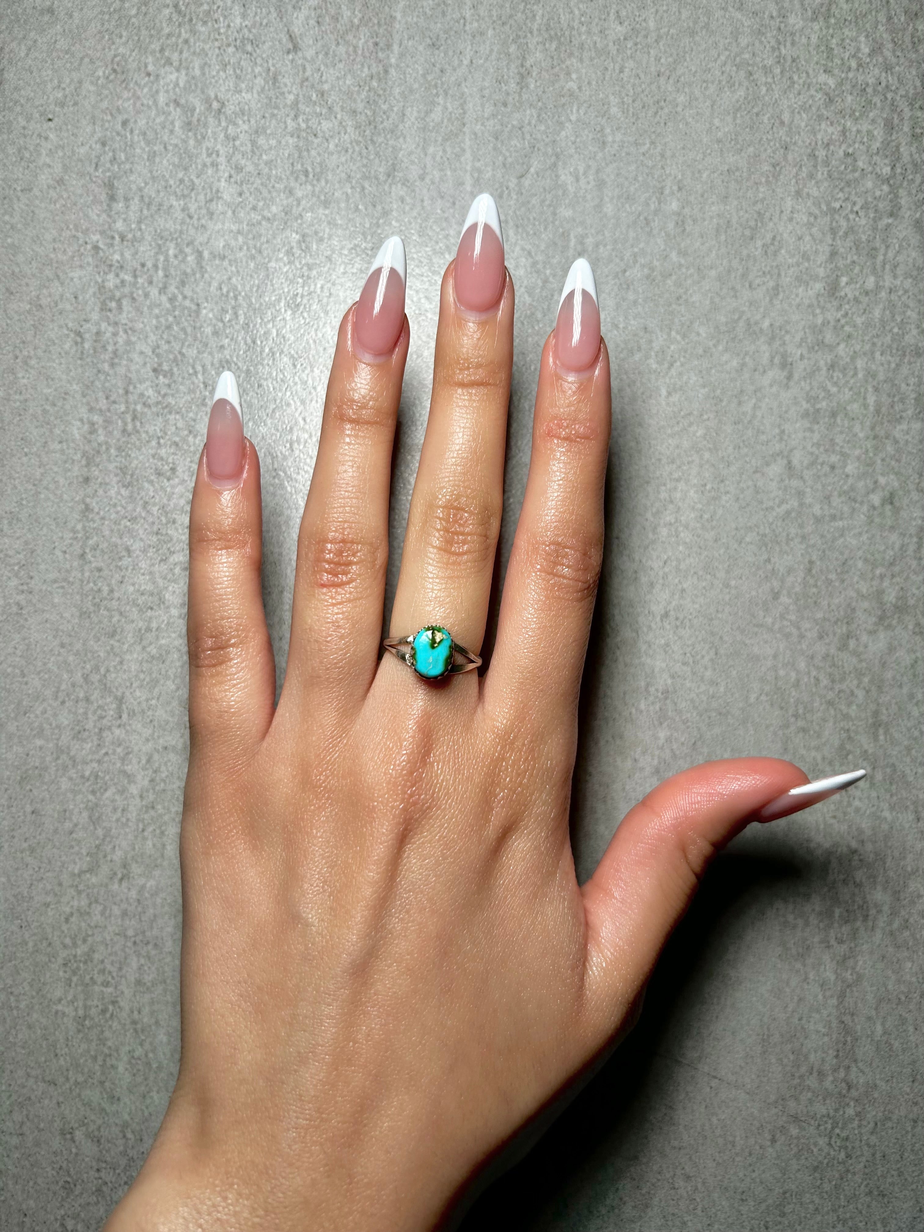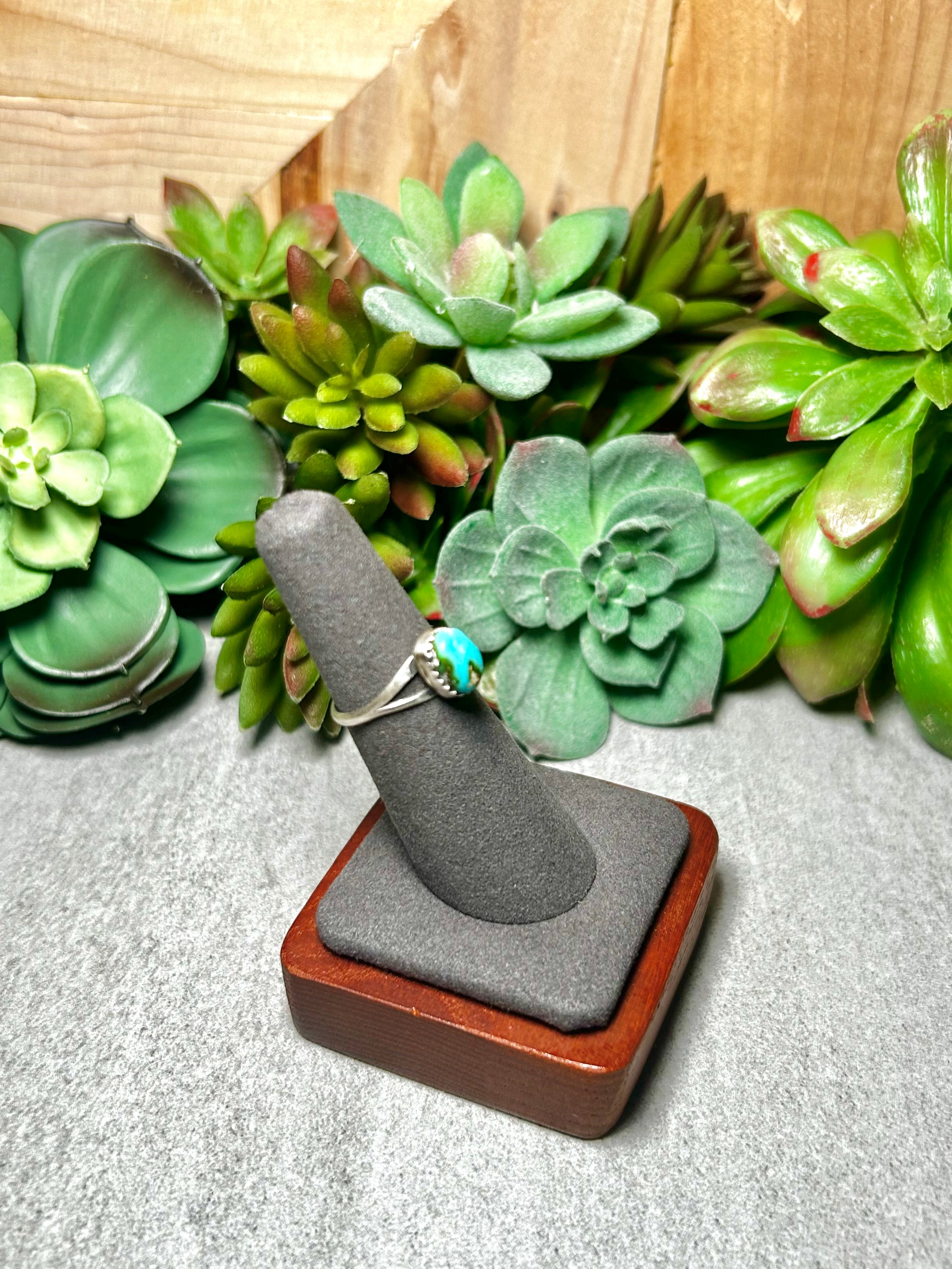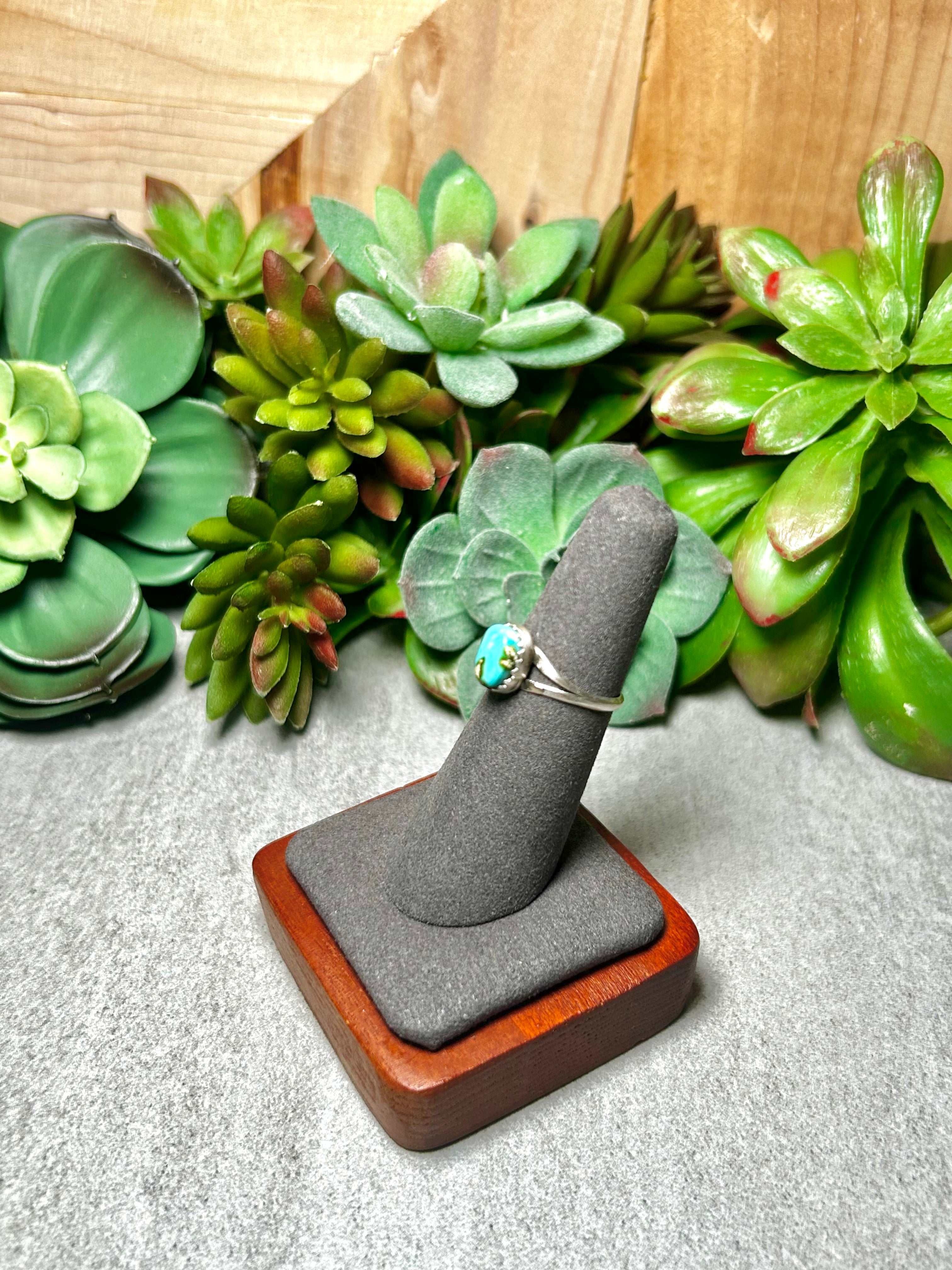 Randy Boyd Sonoran Mountain Turquoise & Sterling Silver Ring Size 5.75. It measures 3/8 of an inch long and 1/4 of an inch wide. Signed by the artist and stamped sterling silver.