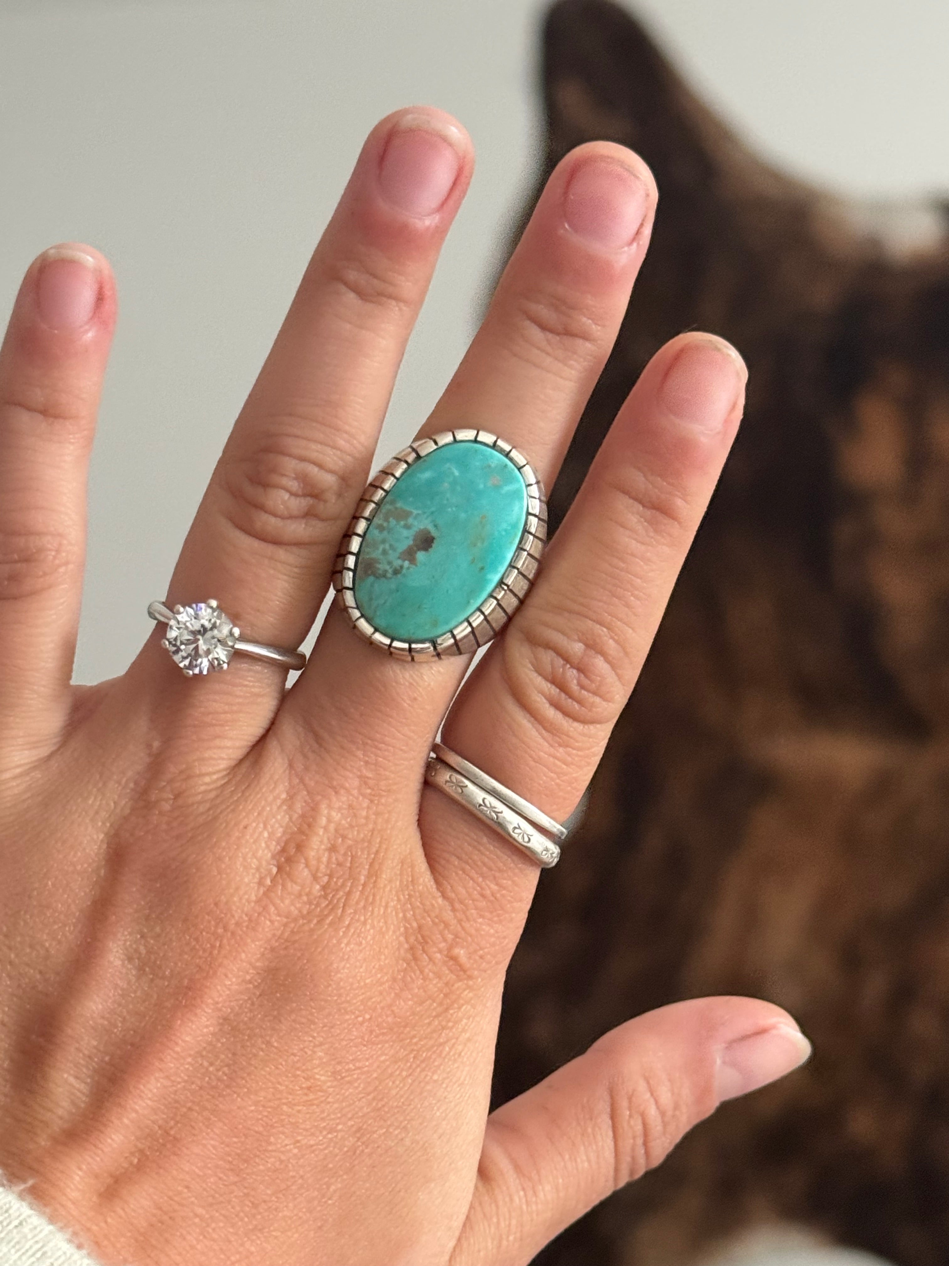 Ray Jack Kingman Turquoise & Sterling Silver Ring Size 11.75