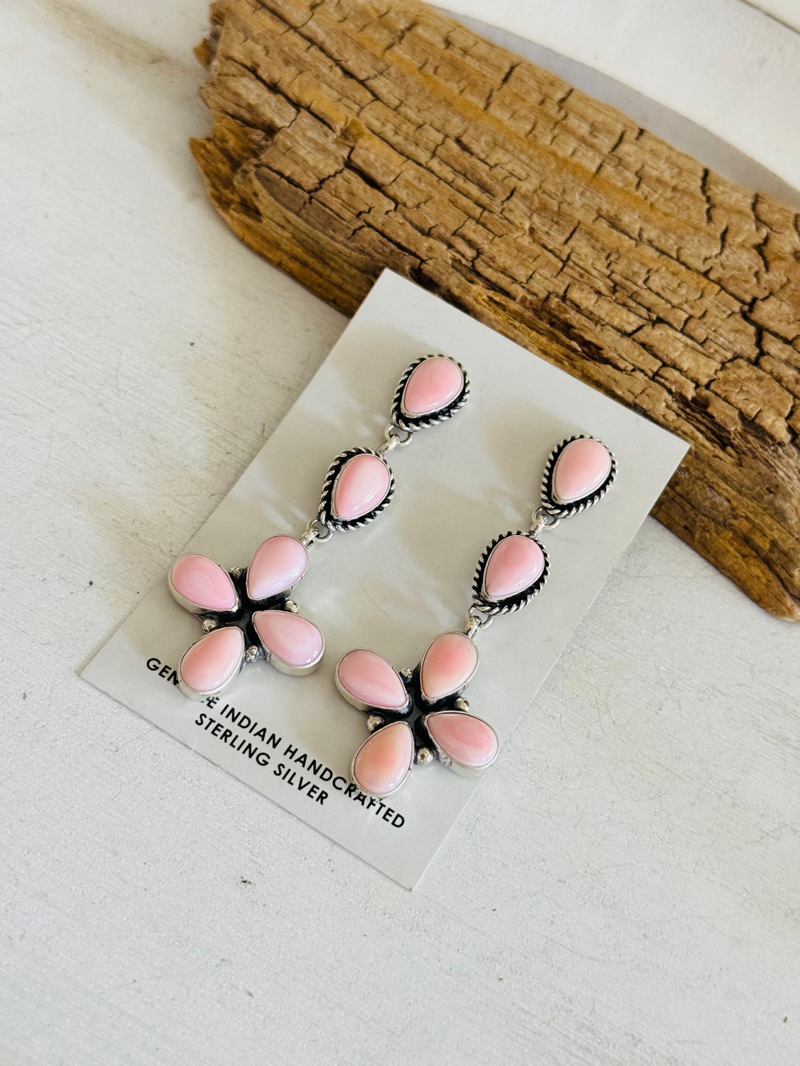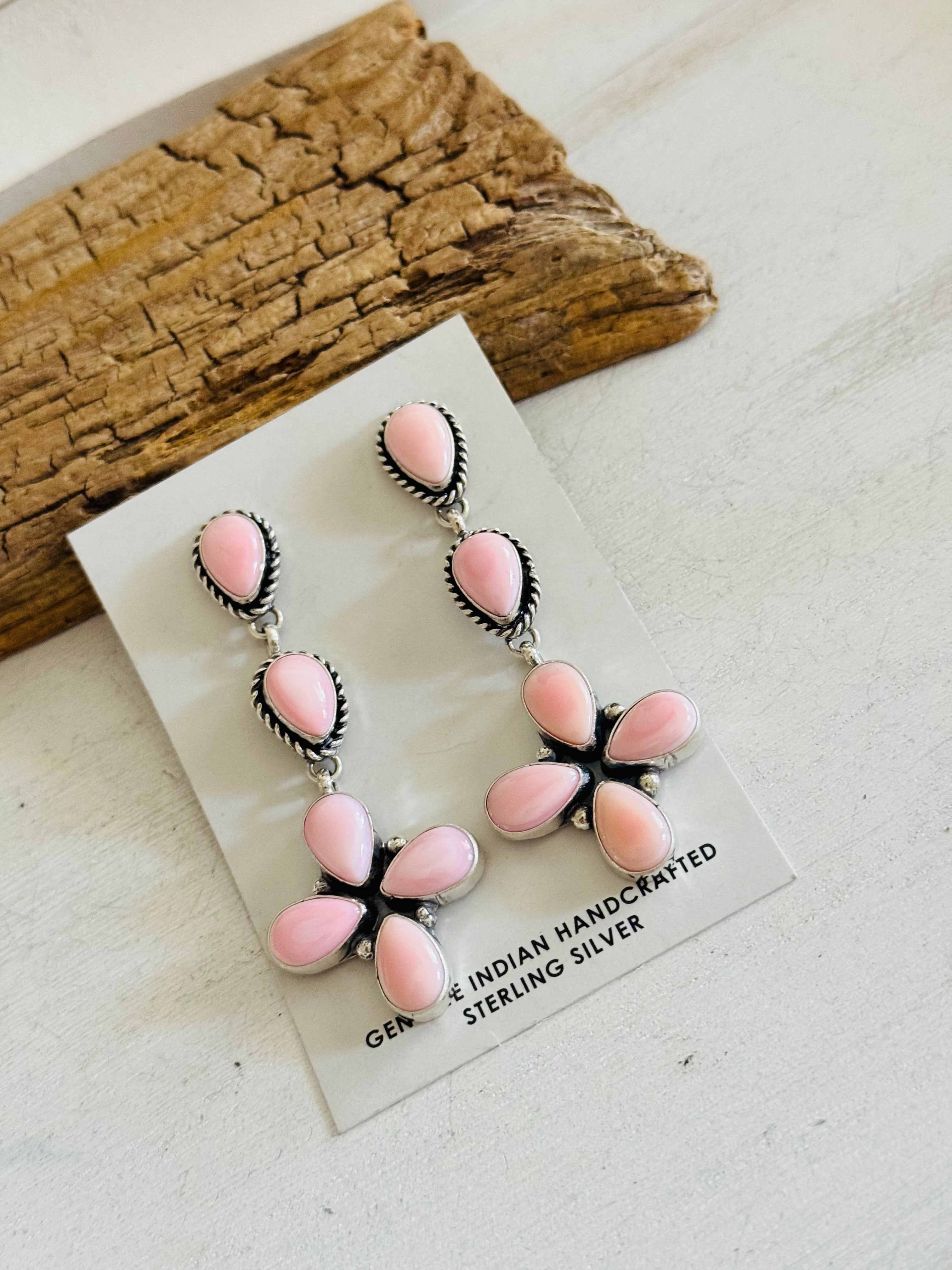 Rita Lee Pink Conch & Sterling Silver Post Dangle Cluster Earrings