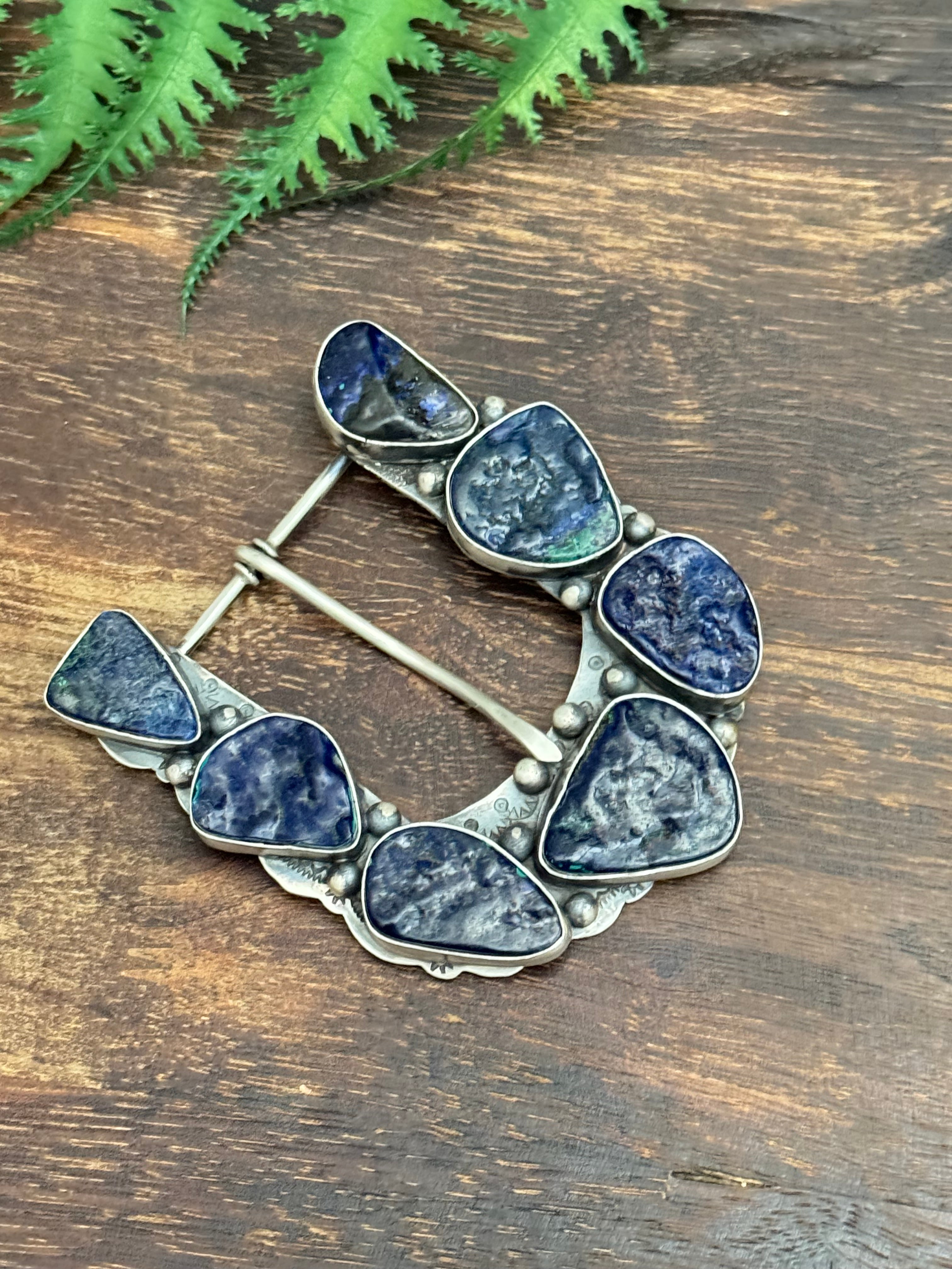 Sam Russel Natural Lapis & Sterling Silver Belt Buckle