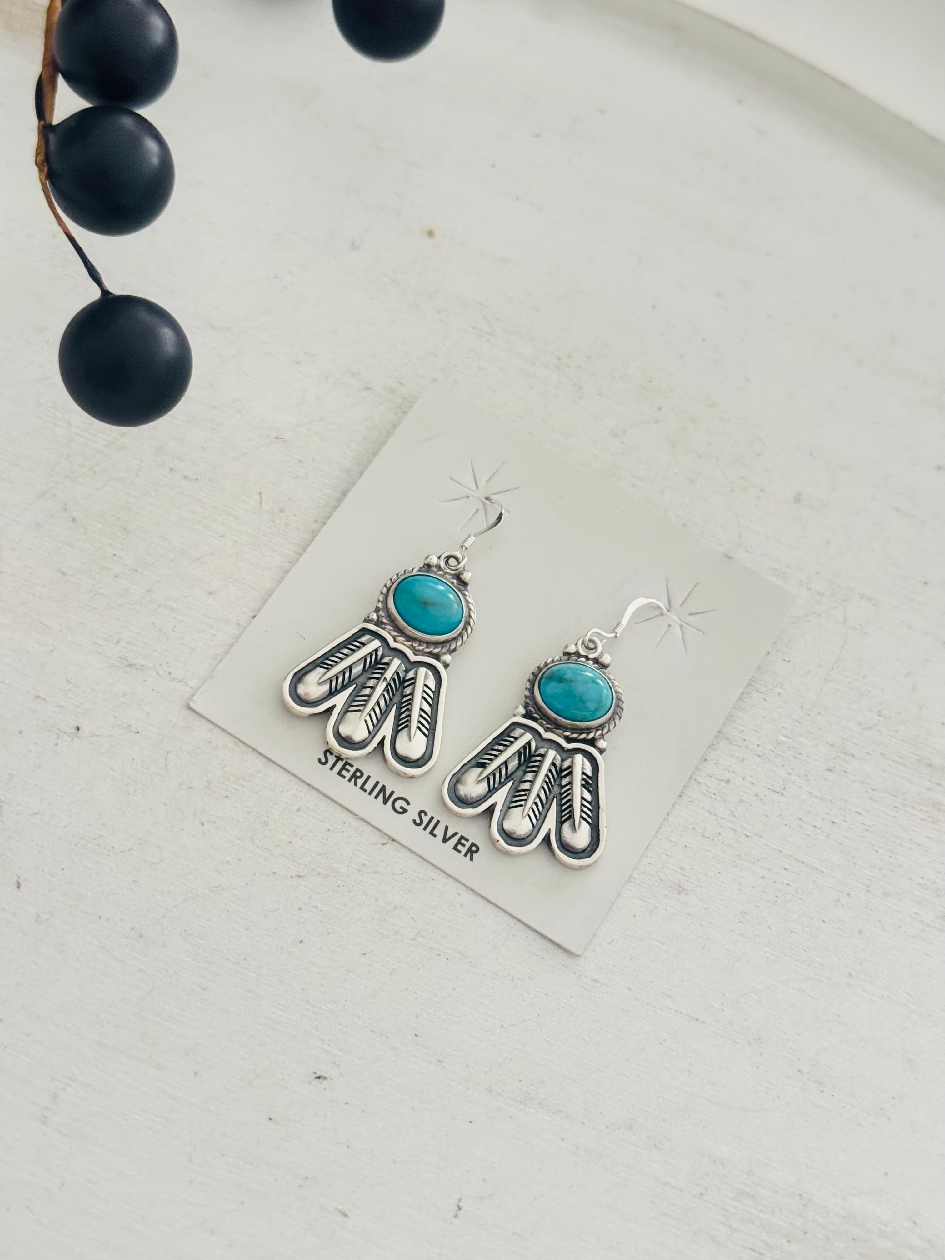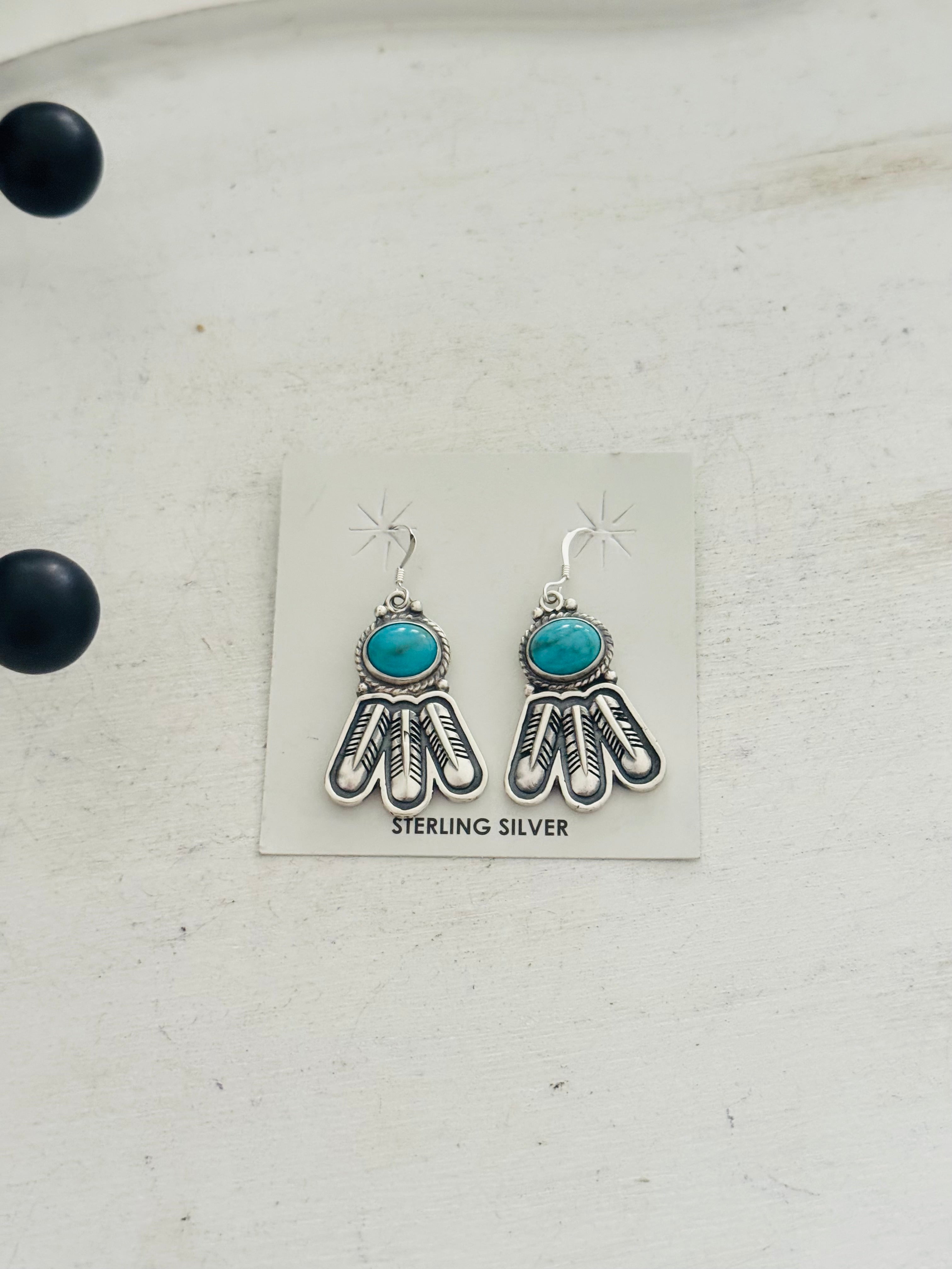 Sharon Mccarthy Kingman Turquoise & Sterling Silver Dangle Feather Earrings