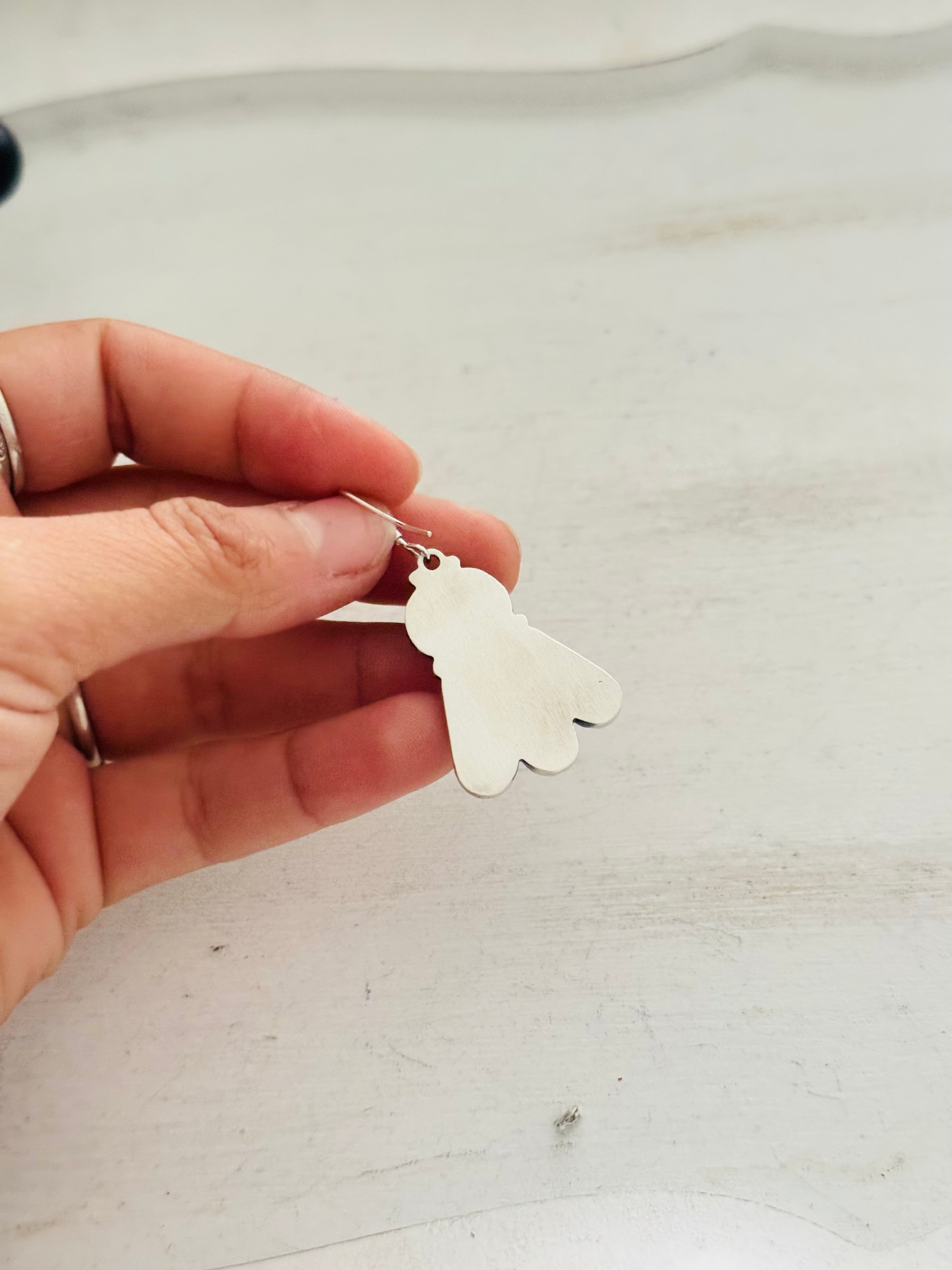 Sharon Mccarthy Kingman Turquoise & Sterling Silver Dangle Earrings. It measures 1 3/4 inches long and 7/8 of an inch wide. Signed by artist and stamped sterling silver. Stones will differ due to natural stones.