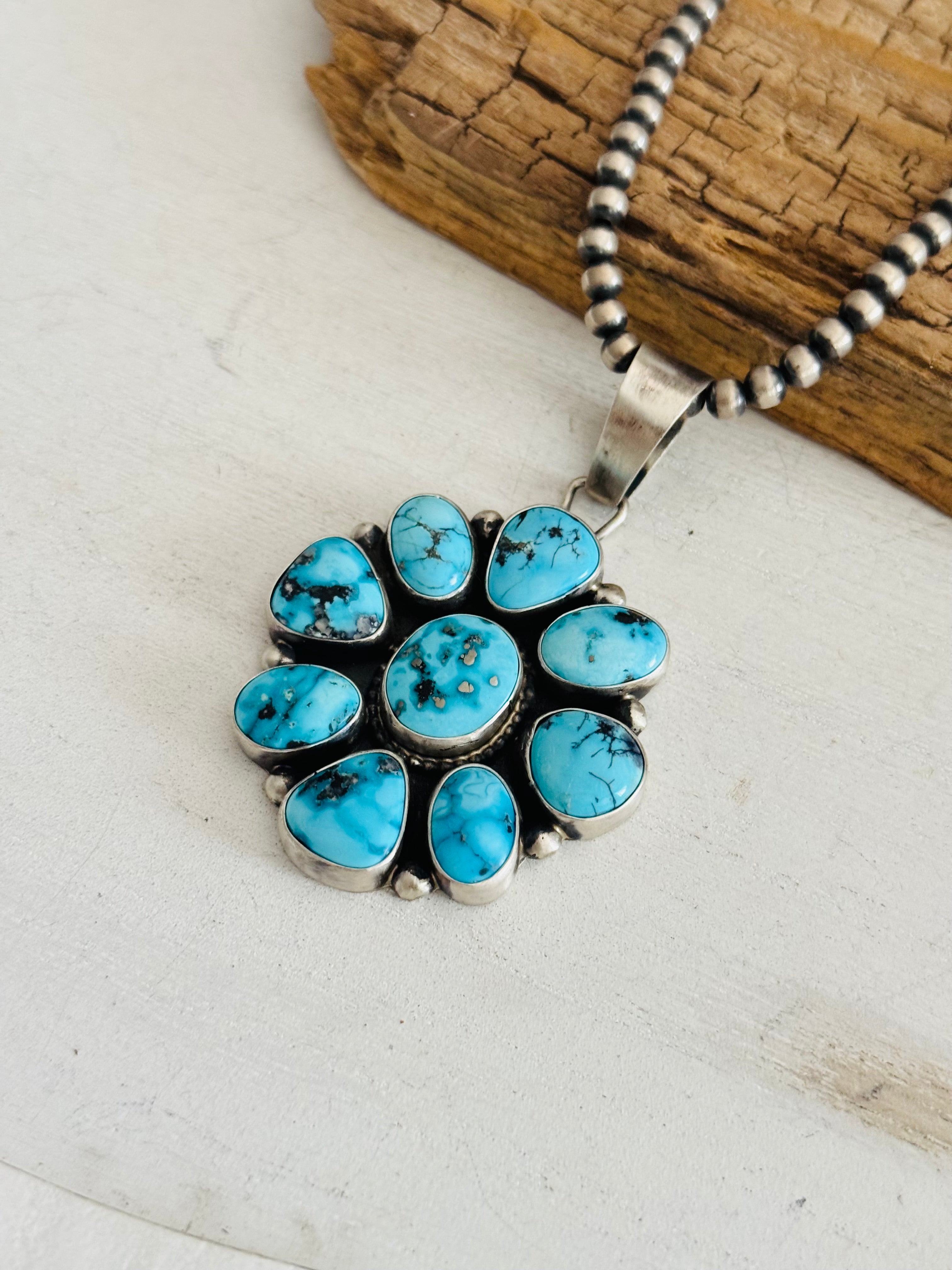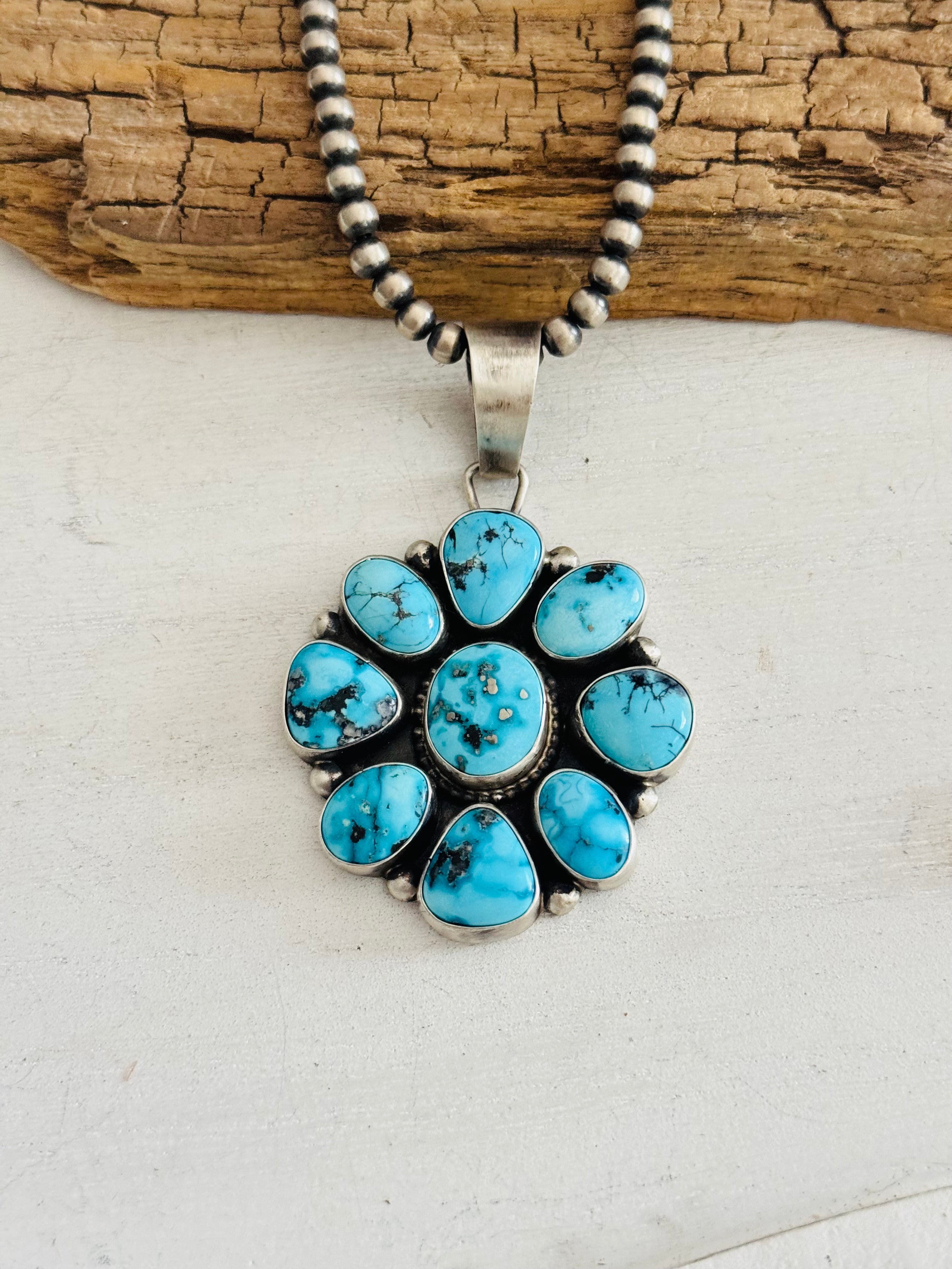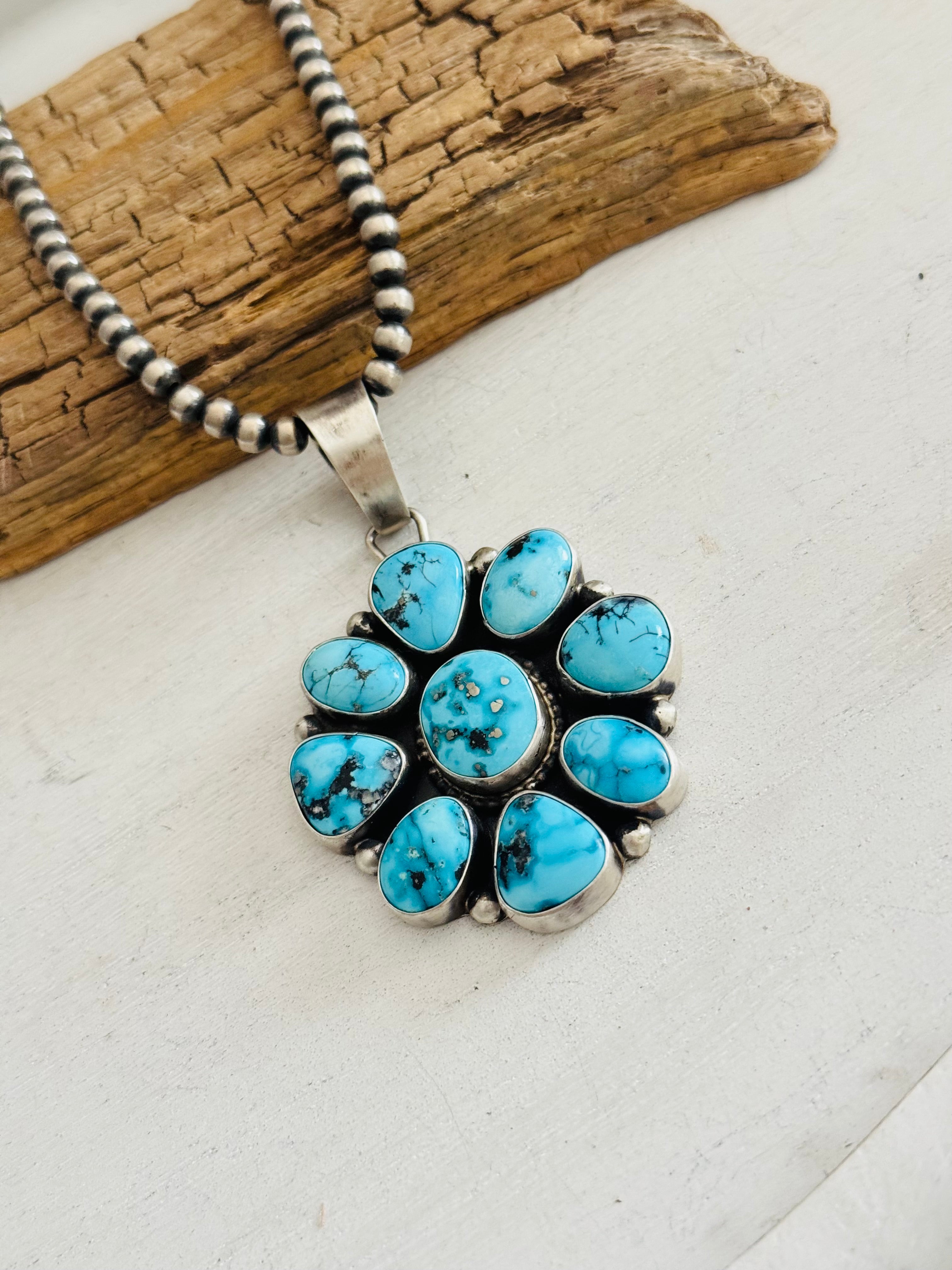 Navajo Made Blue Ridge Turquoise & Sterling Silver Cluster Pendant