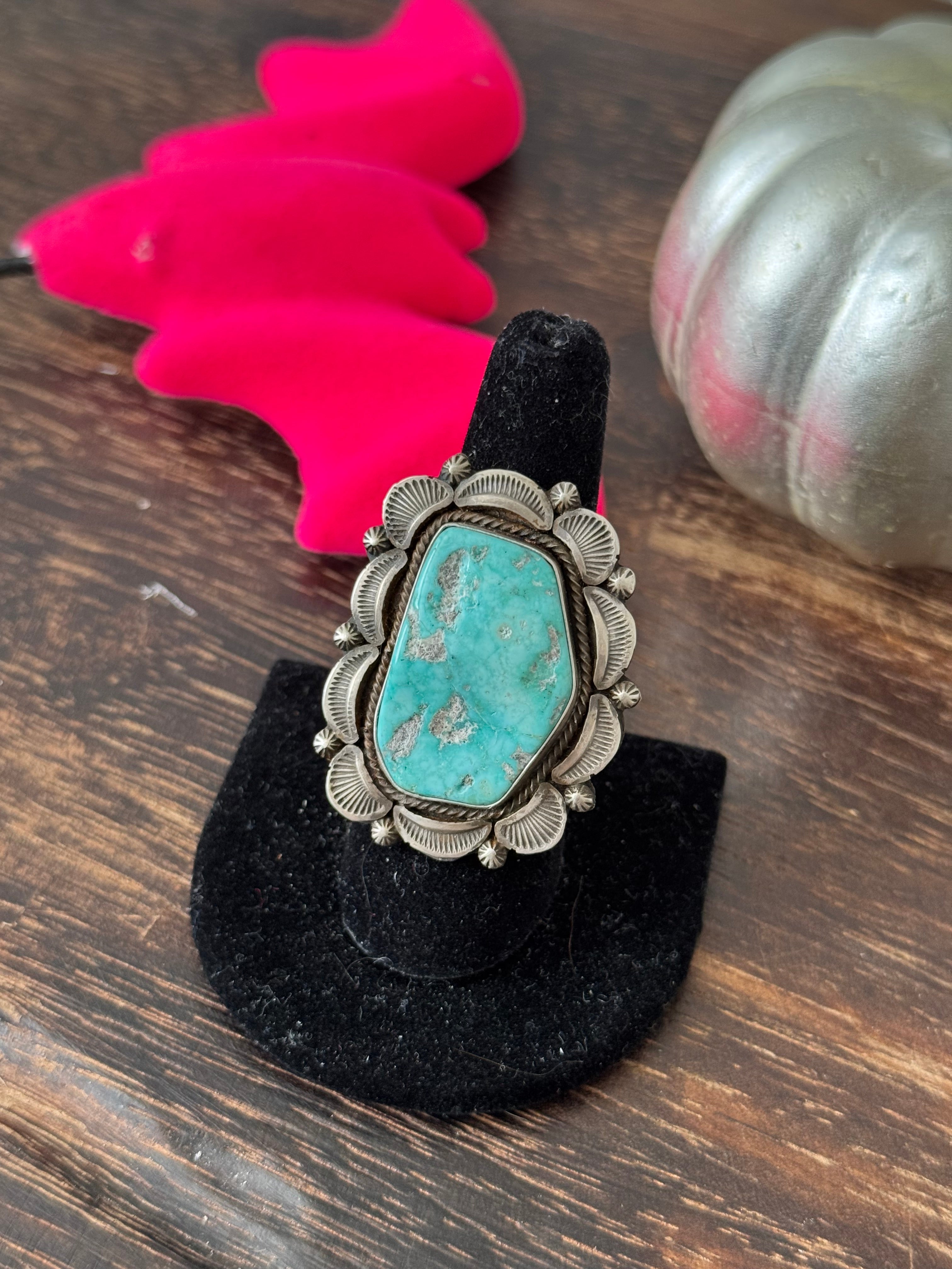 Sheila Becenti Kingman Turquoise Sterling Silver Ring Size 8.75
