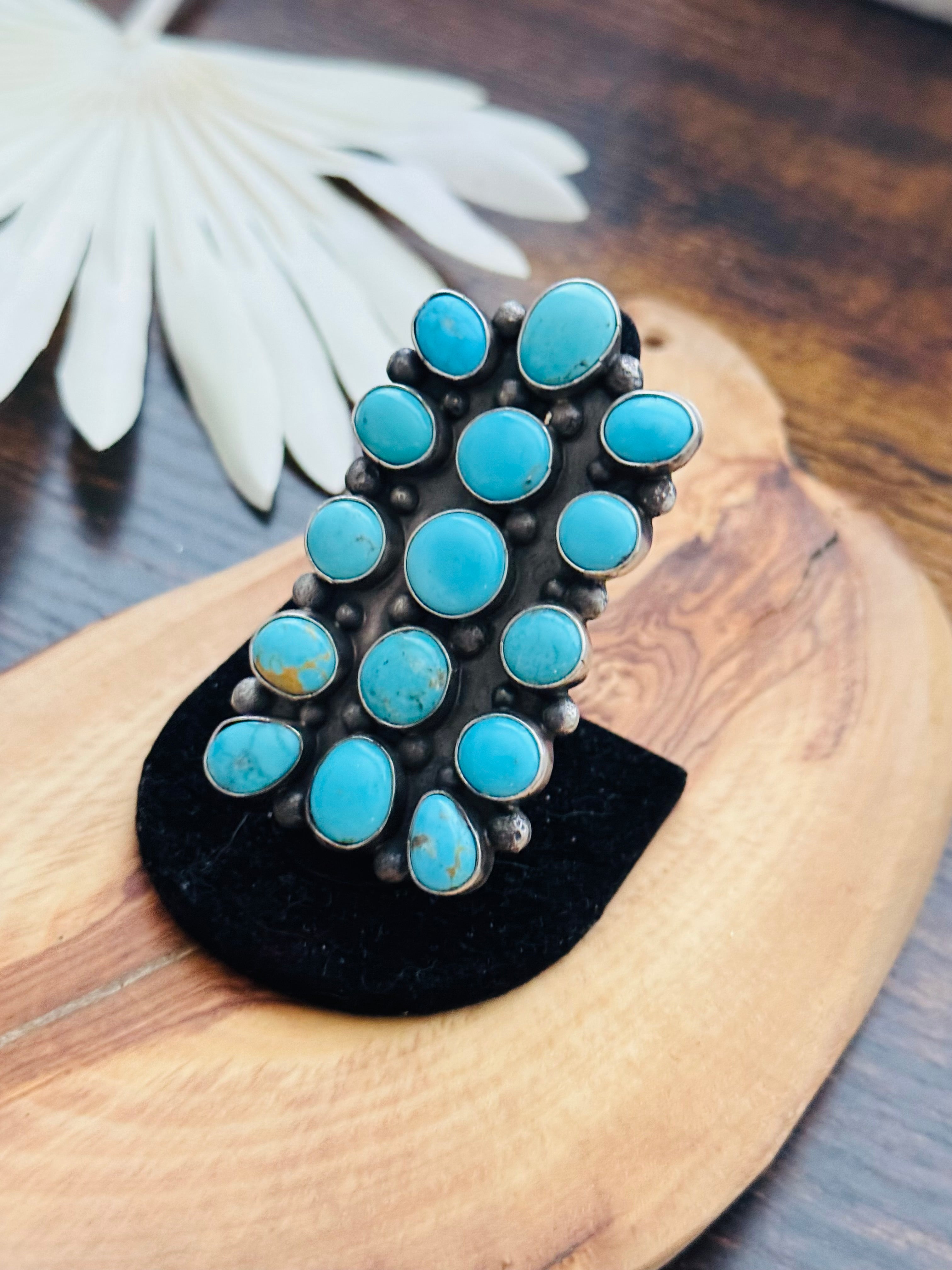 Sheila Becenti Kingman Turquoise Sterling Silver Ring Size 7.75