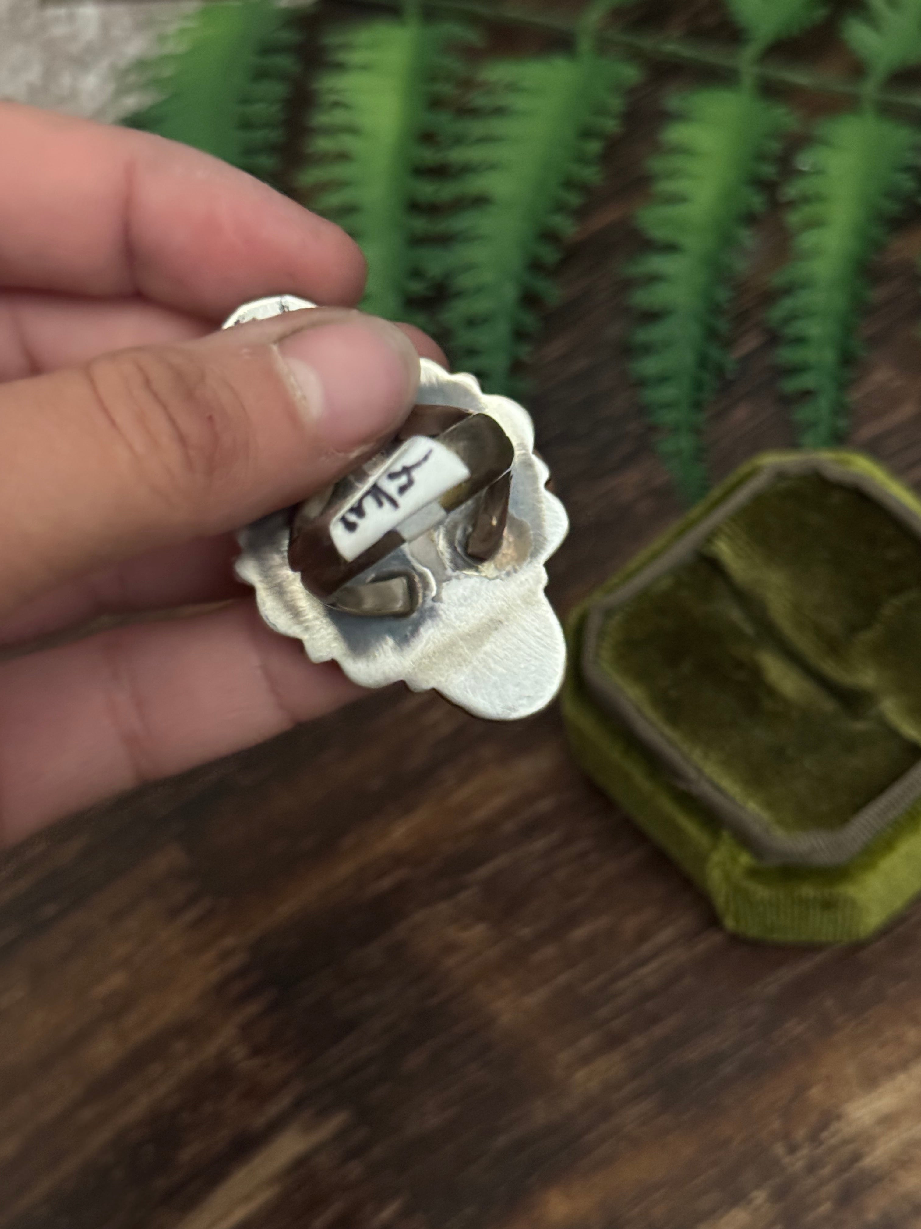 Sheila Becenti White Water Turquoise & Sterling Silver Cluster Ring Size 8.5