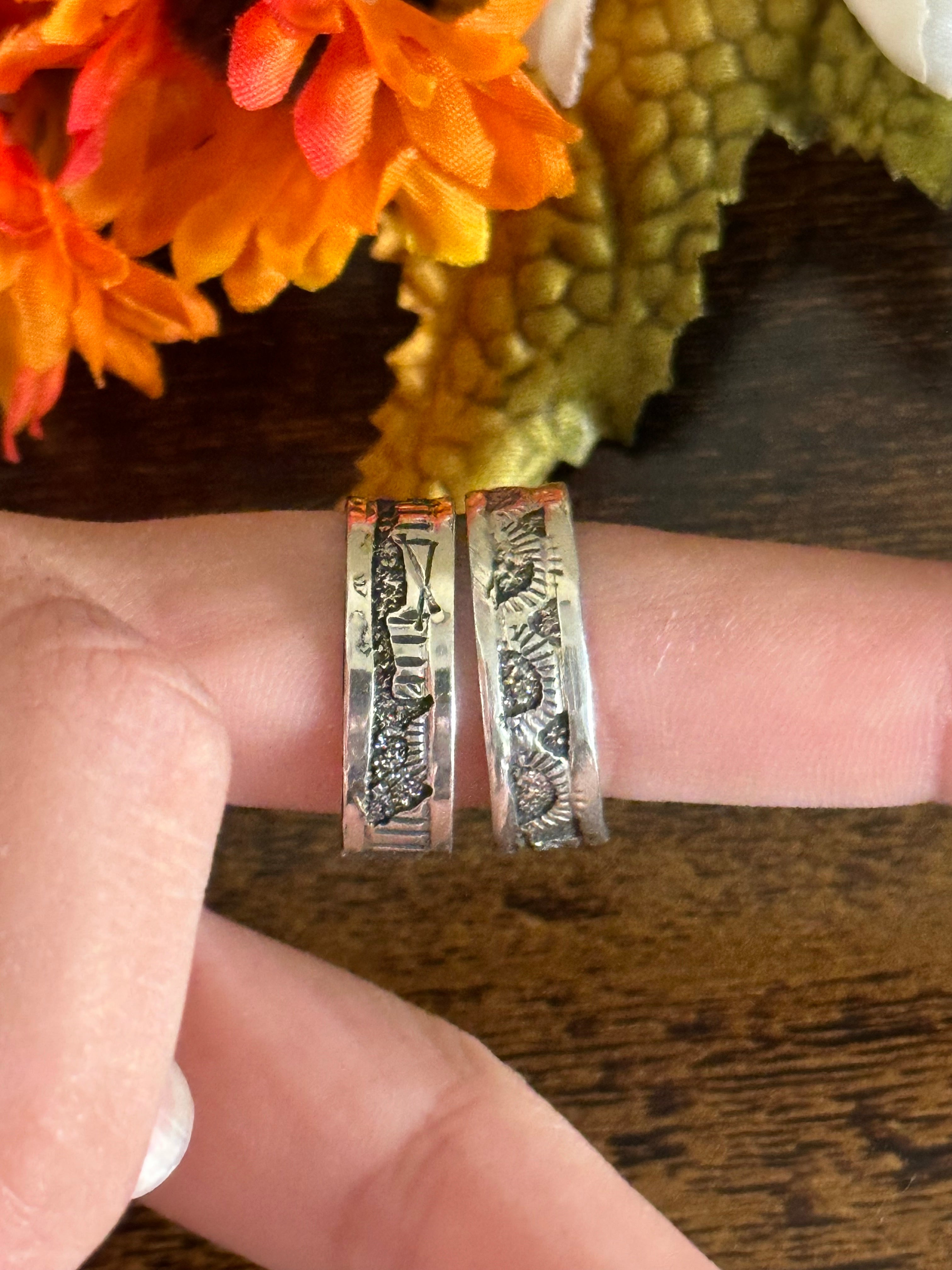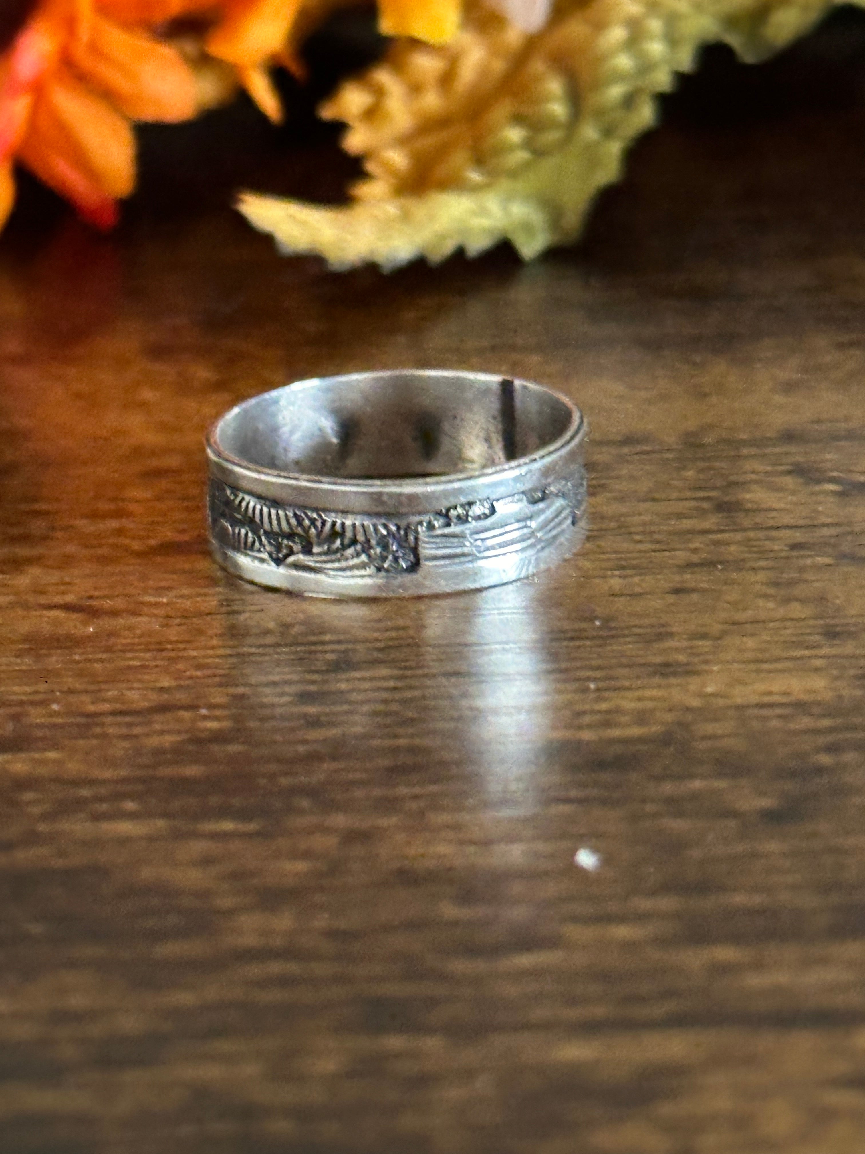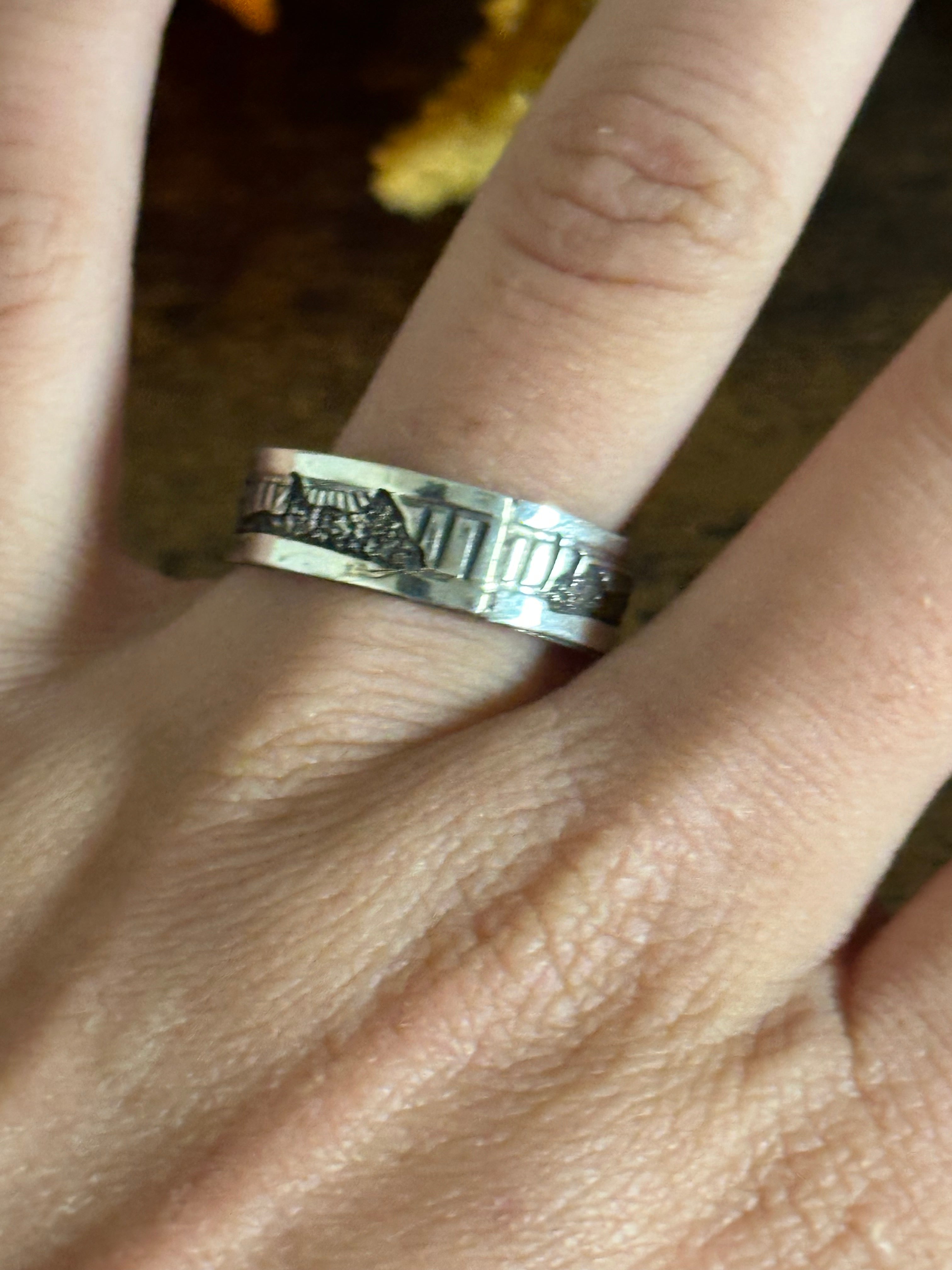Sophia Becenti Sterling Silver Story Teller Ring. It measures just over 1/4 of an inch long. Signed by artist and stamped sterling silver.
