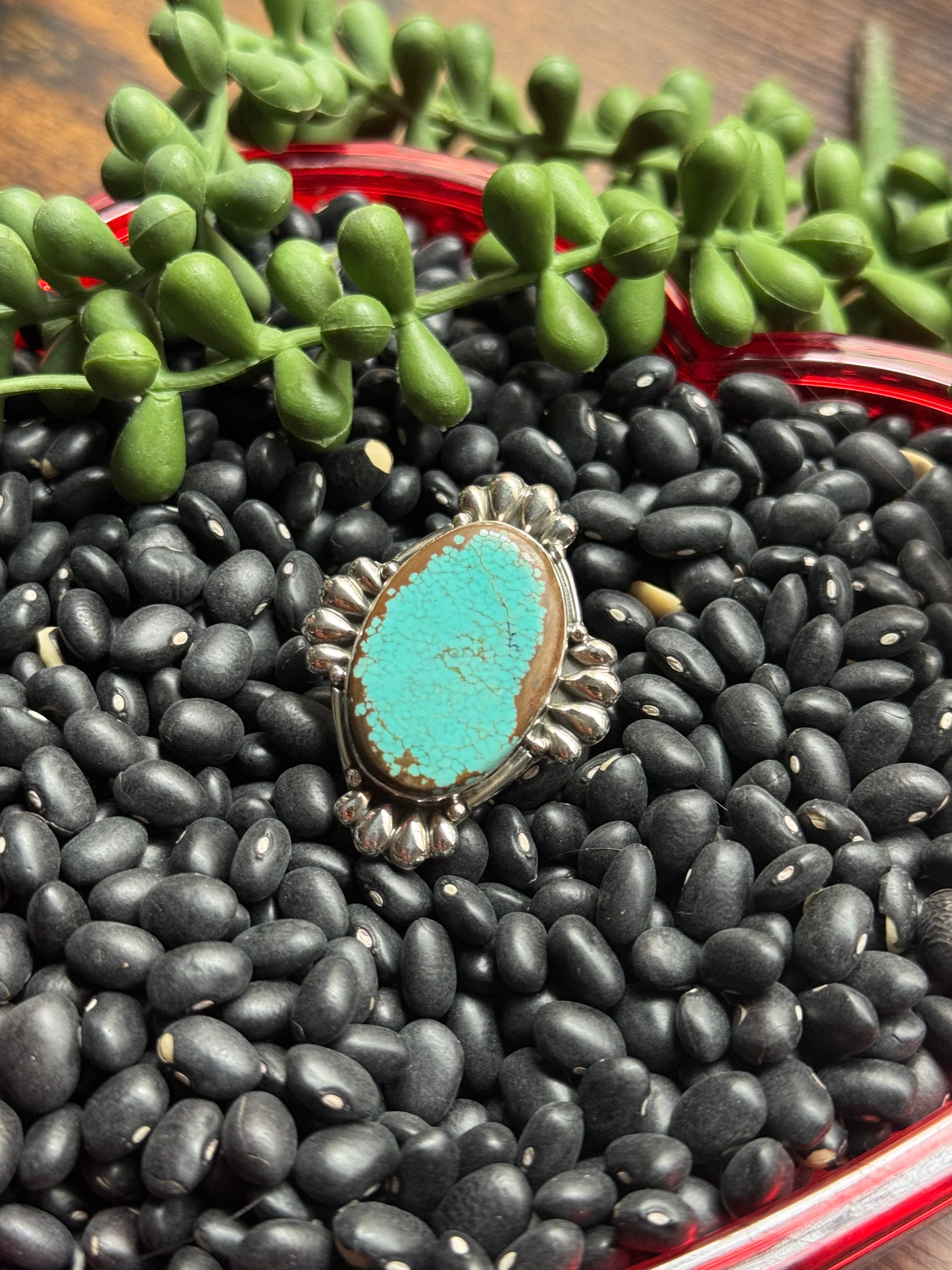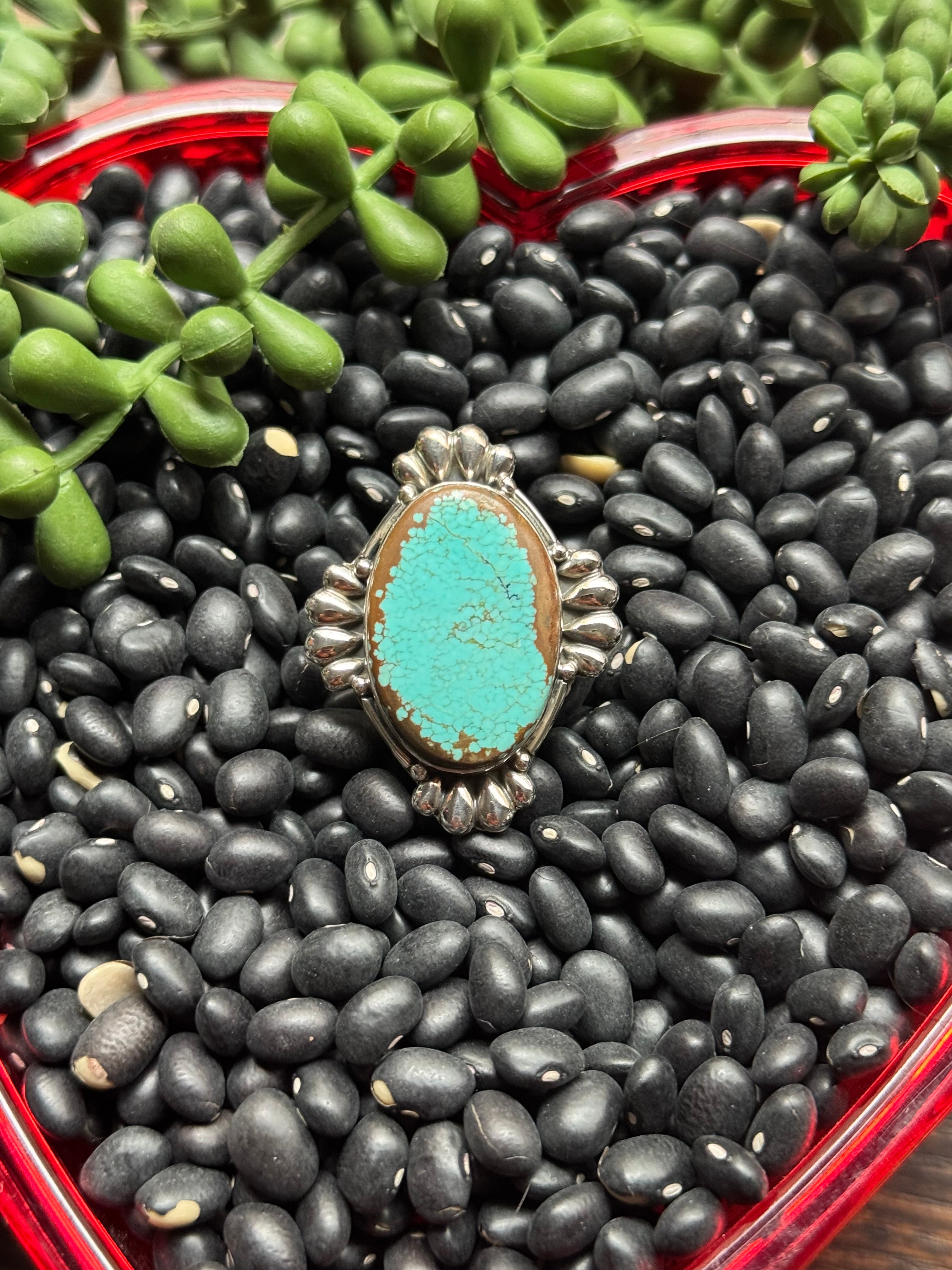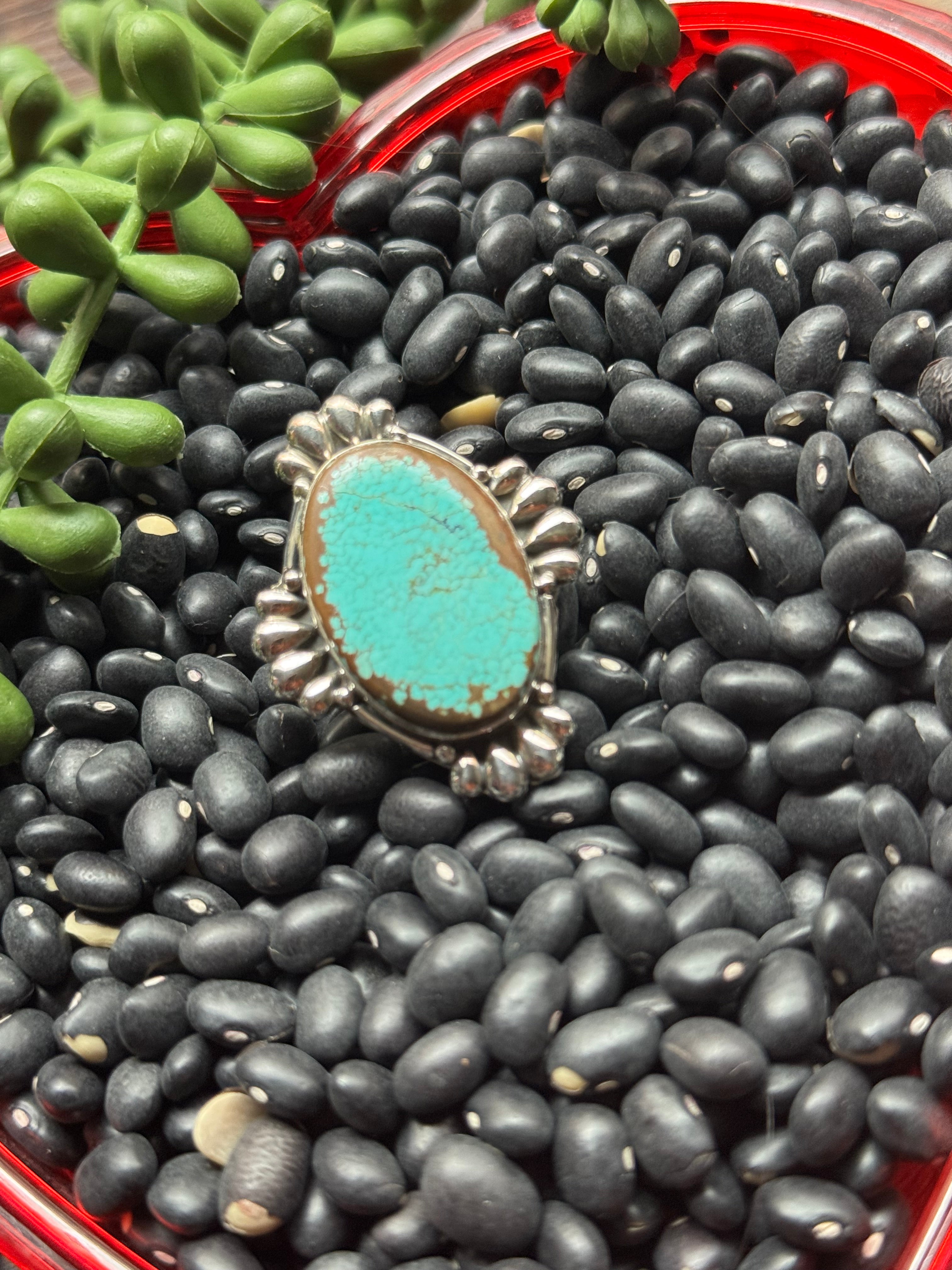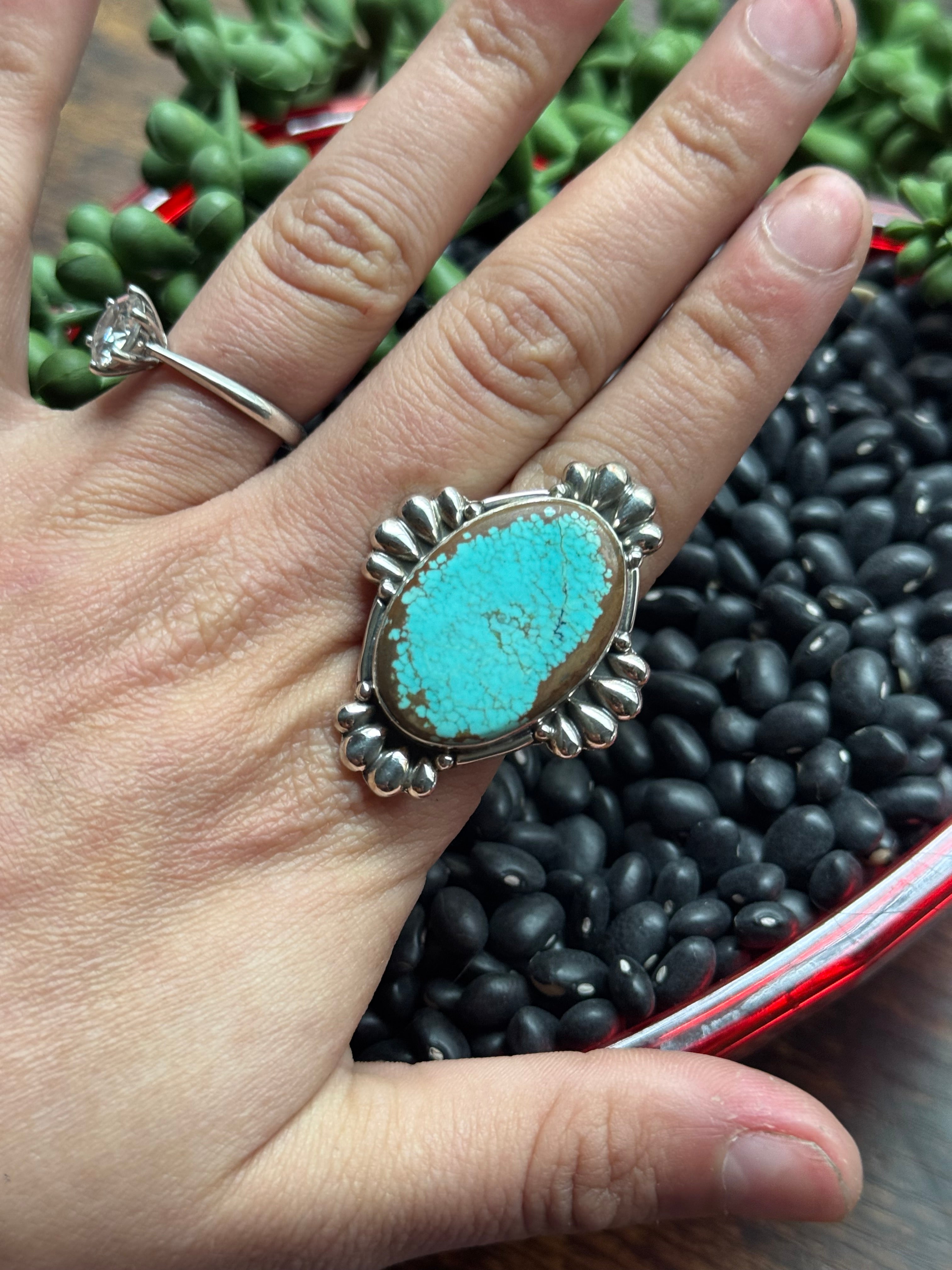 Southwest Handmade #8 Turquoise & Sterling Silver Adjustable Ring