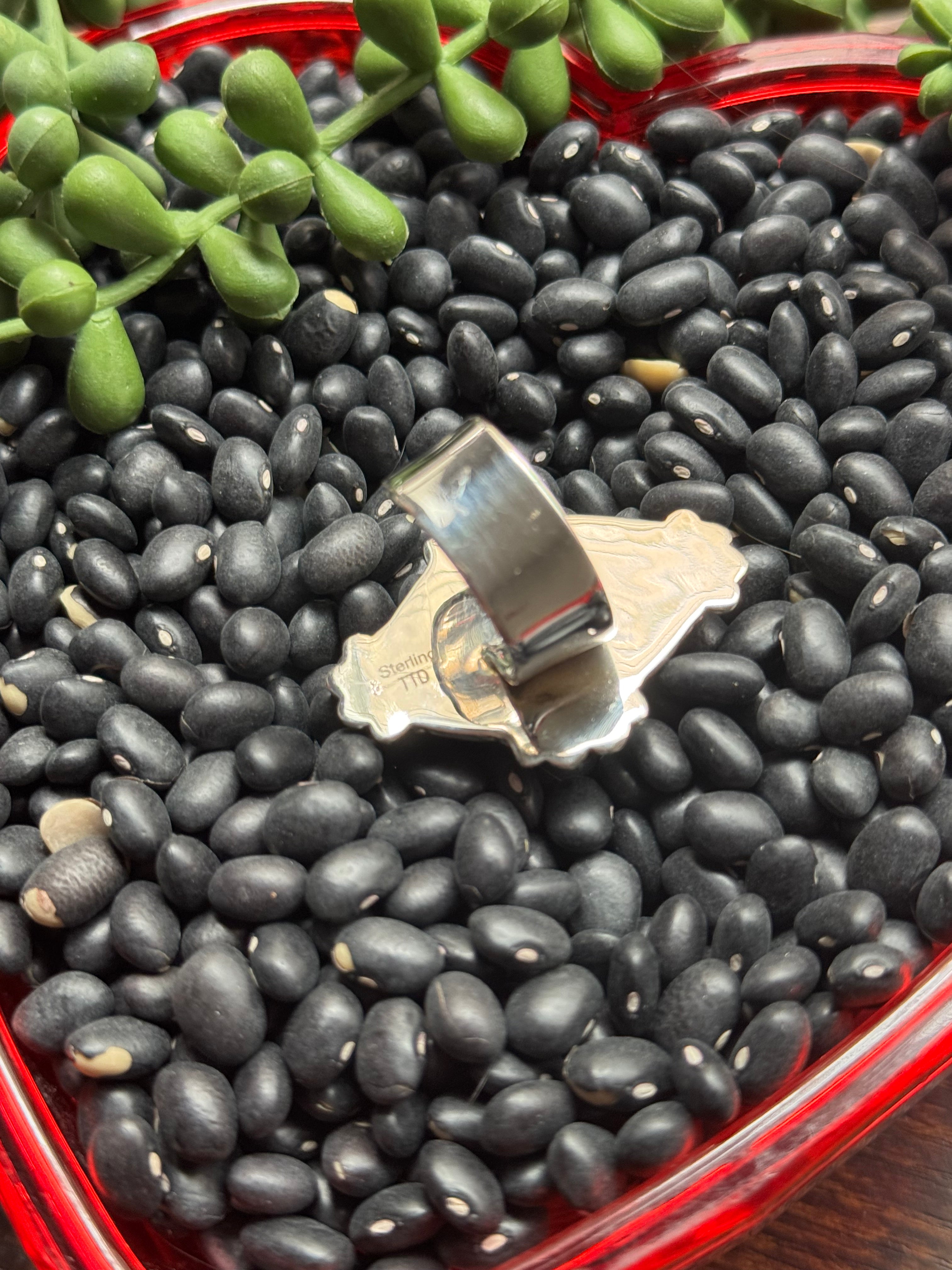Beautiful ring. Southwest Handmade #8 Turquoise & Sterling Silver Adjustable Ring. It measures 1 5/8 inches long and 1 1/4 inches wide. Signed by the artist and stamped sterling silver.