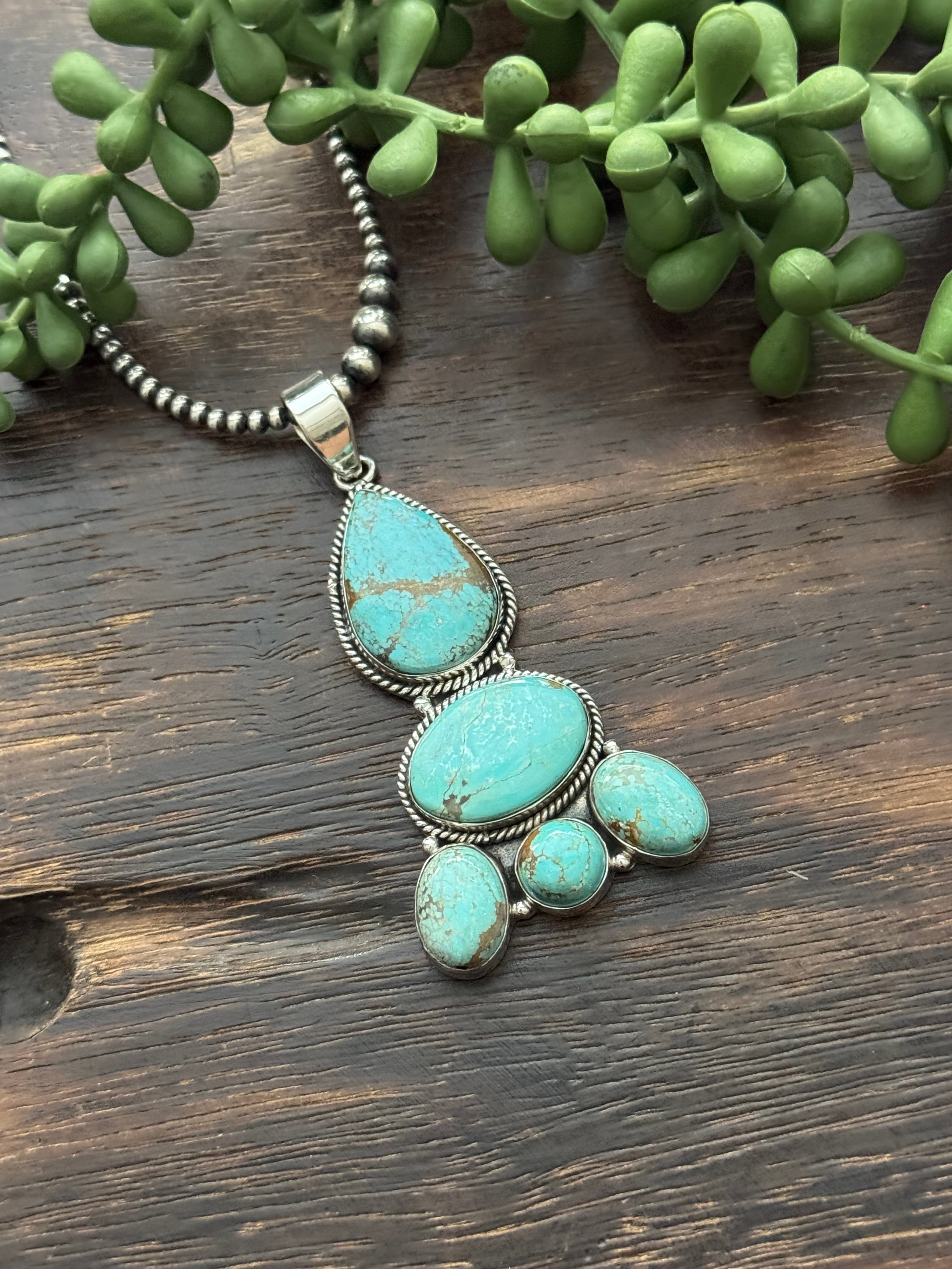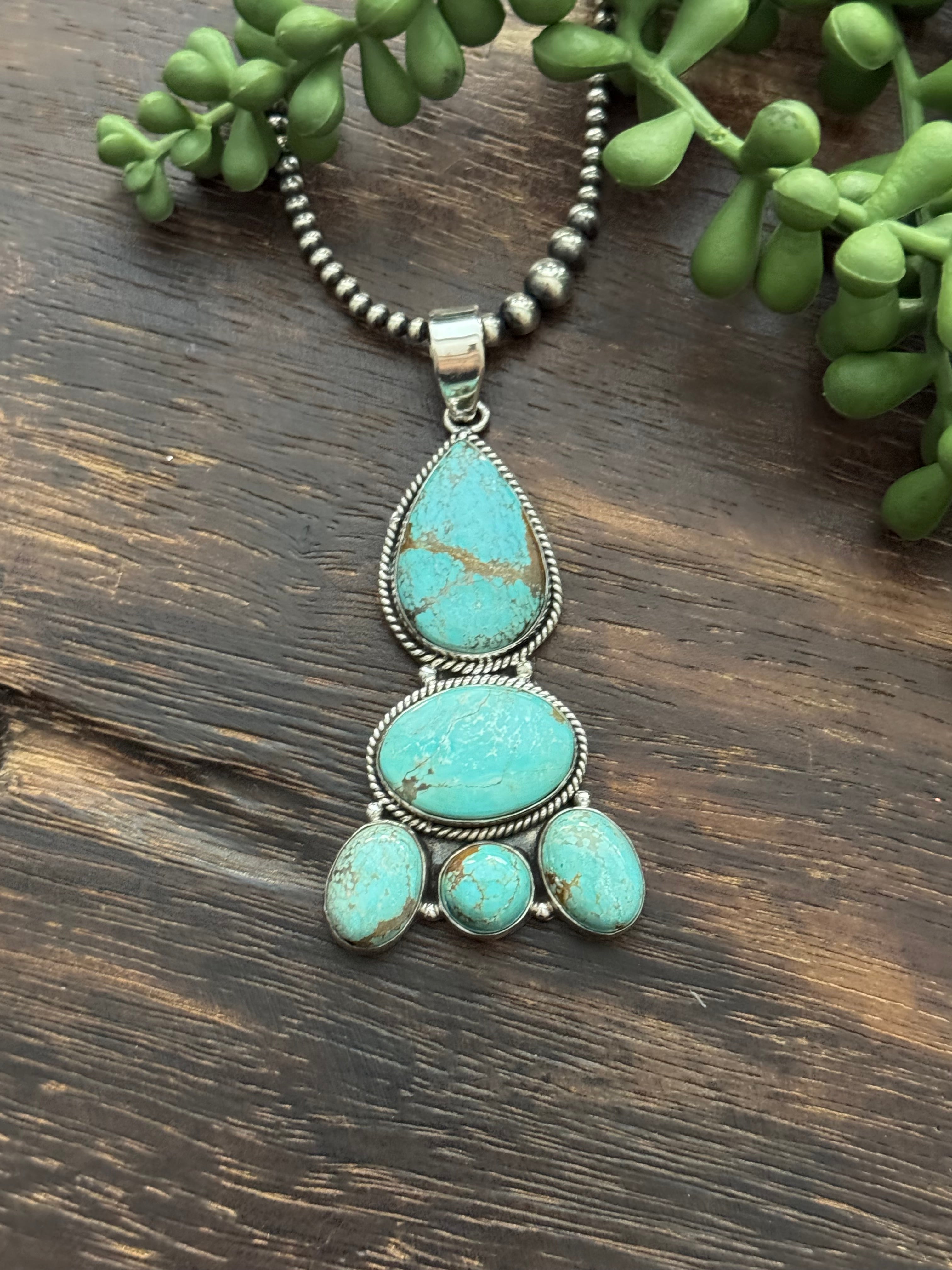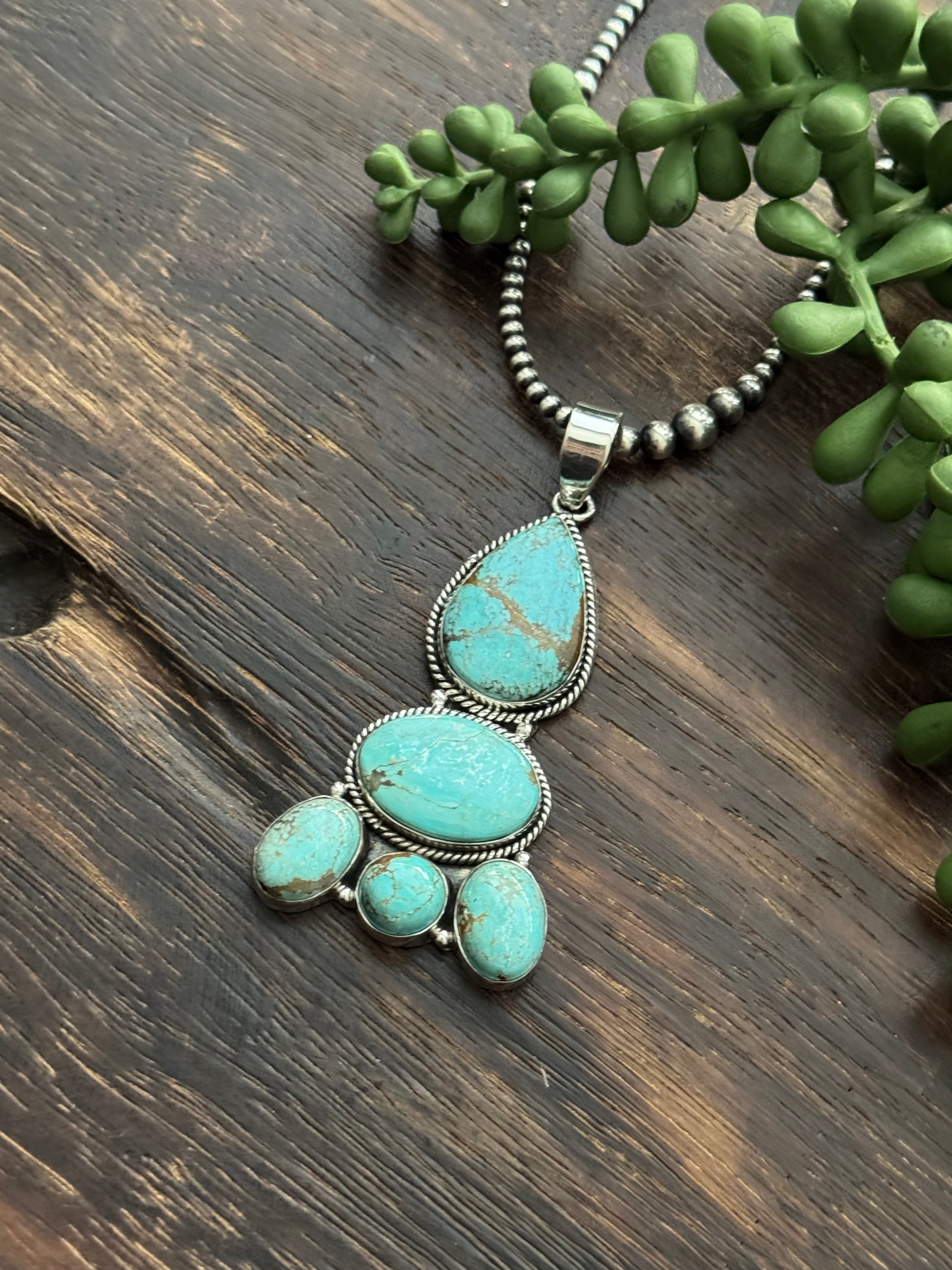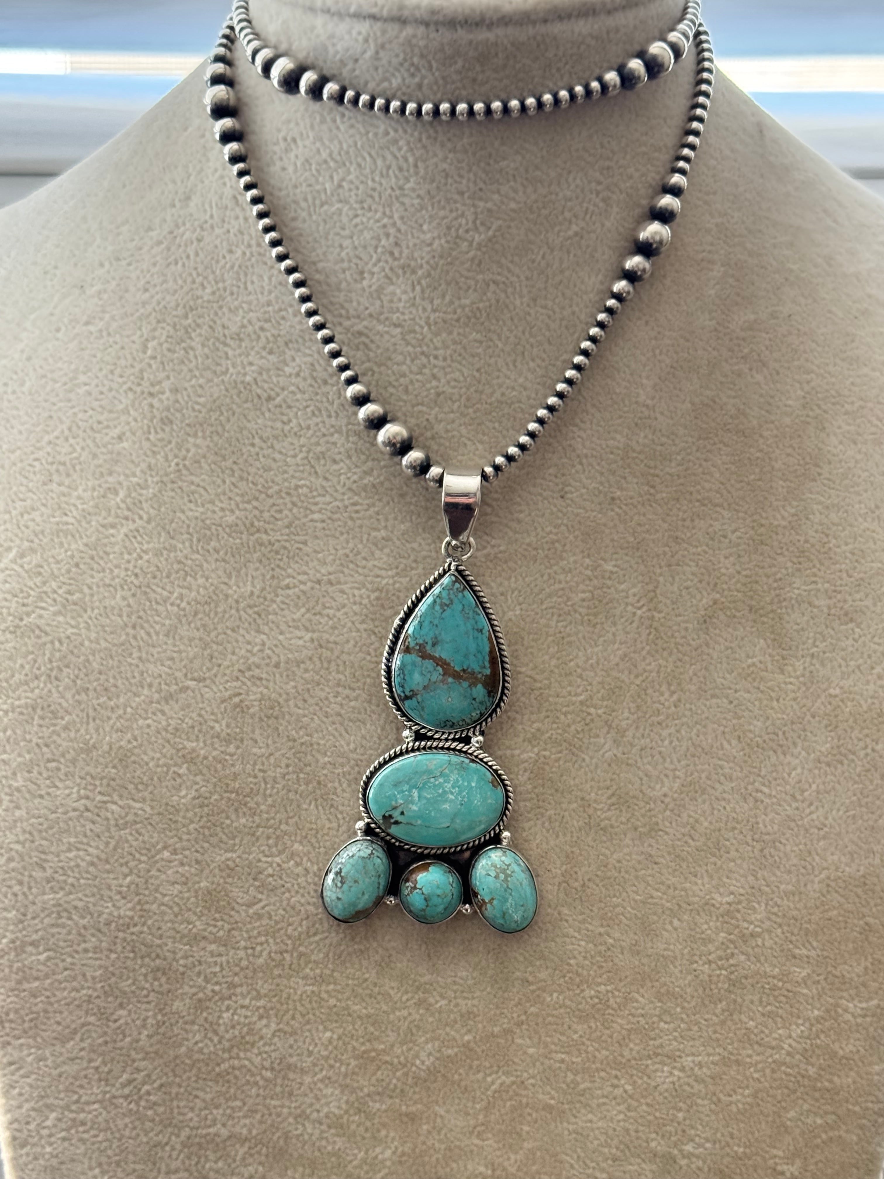 Southwest Handmade #8 Turquoise & Sterling Silver Cluster Pendant