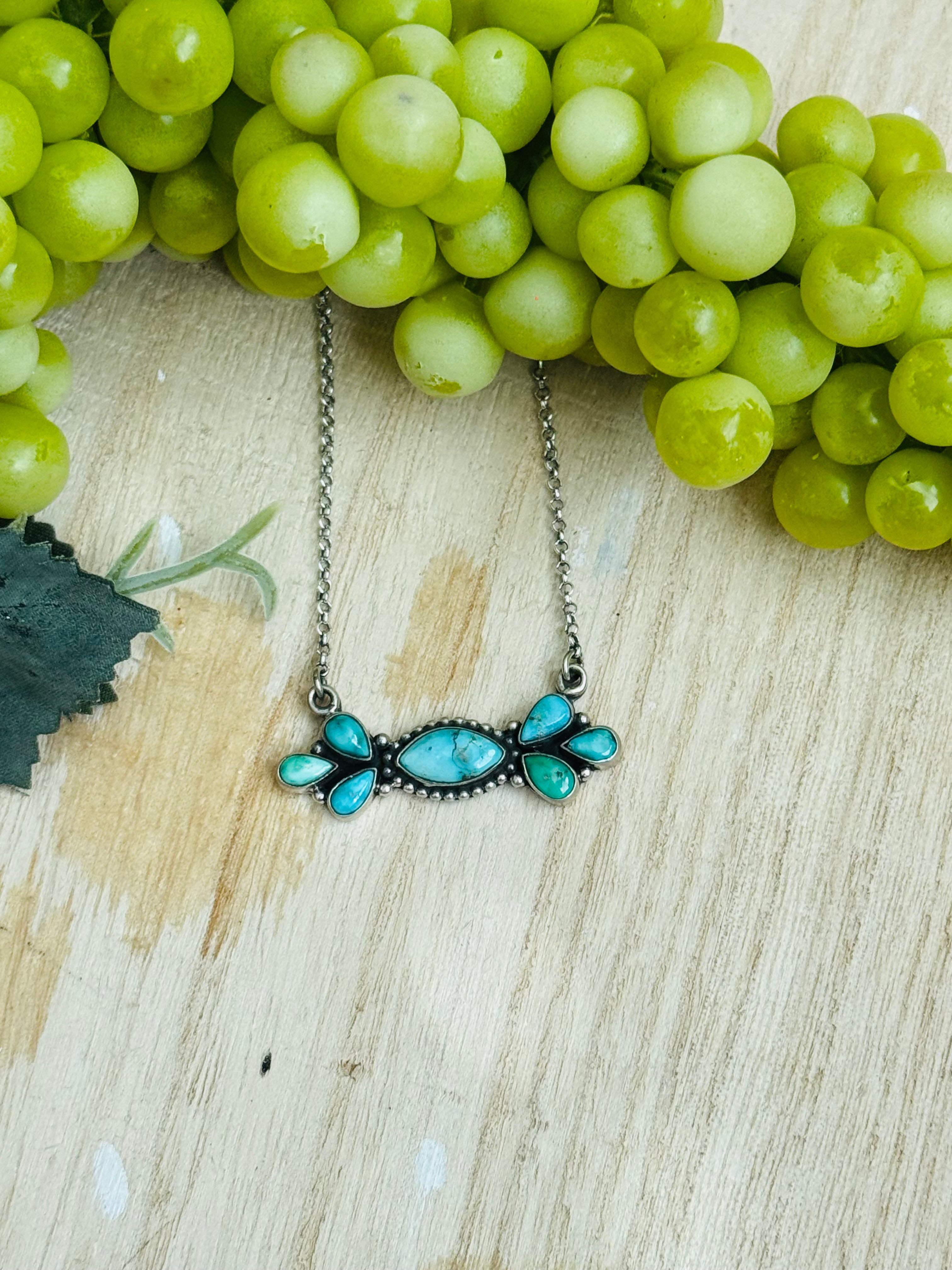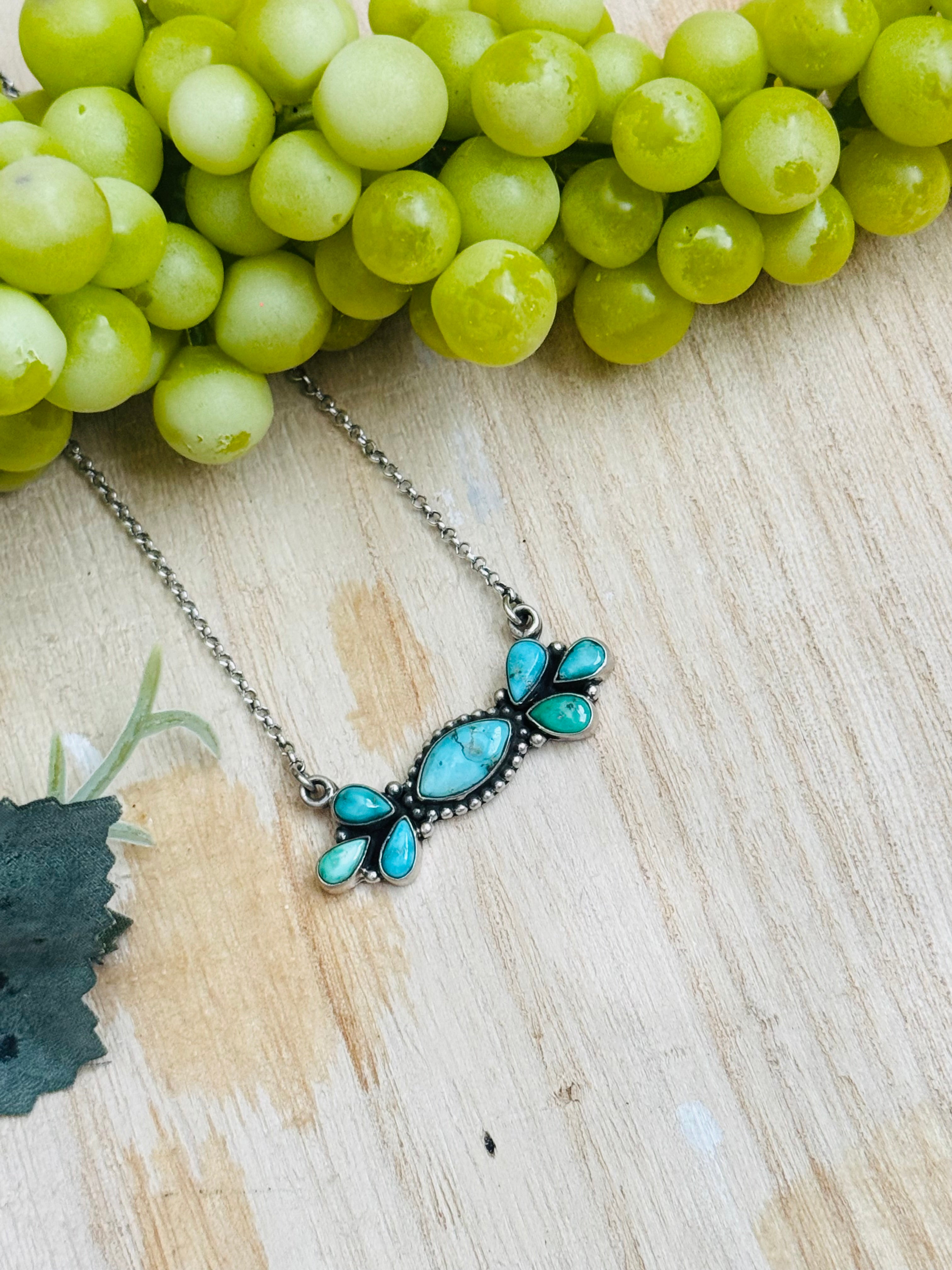 Southwest Handmade Emerald Valley Turquoise & Sterling Silver Cluster Necklace