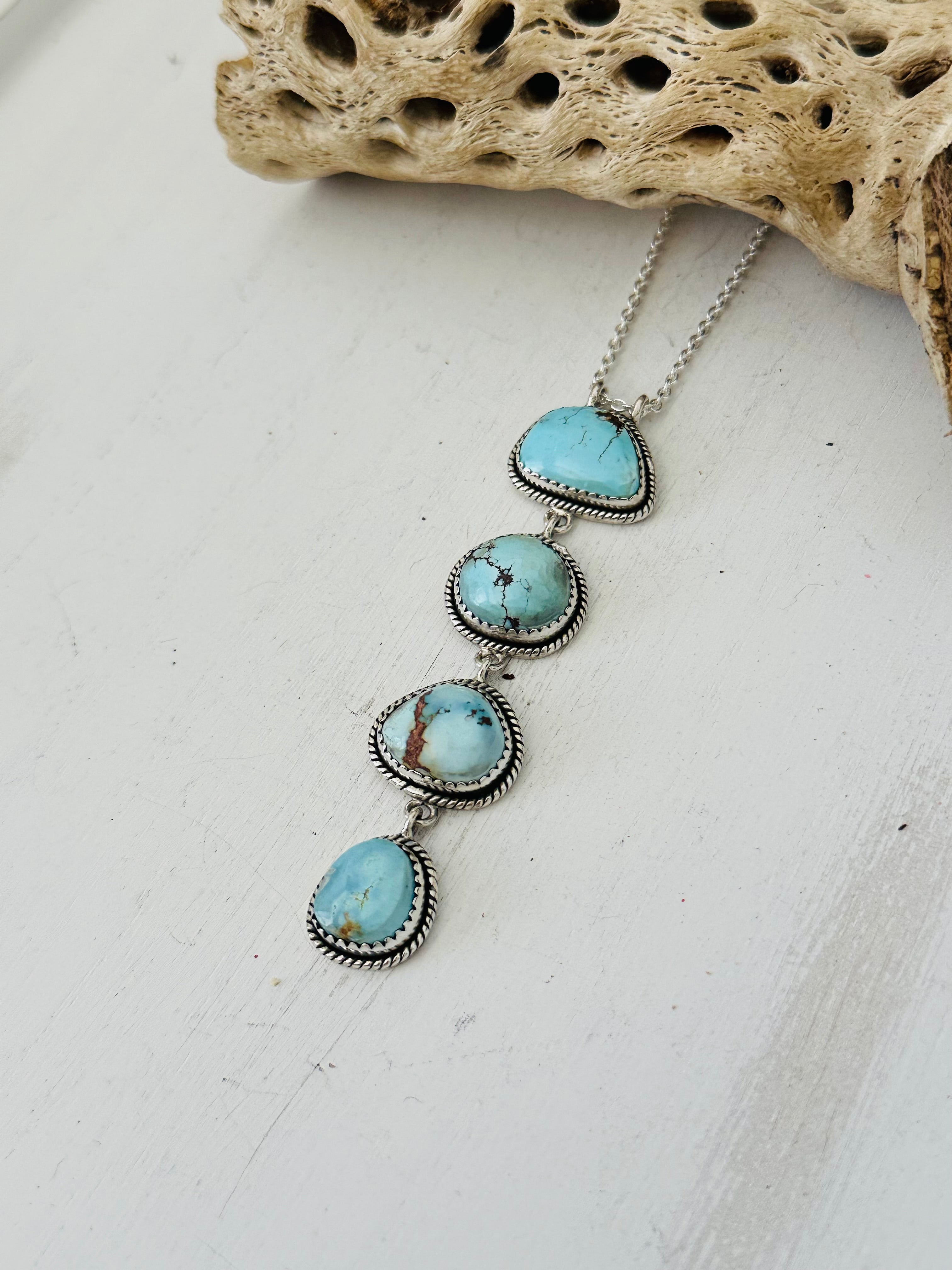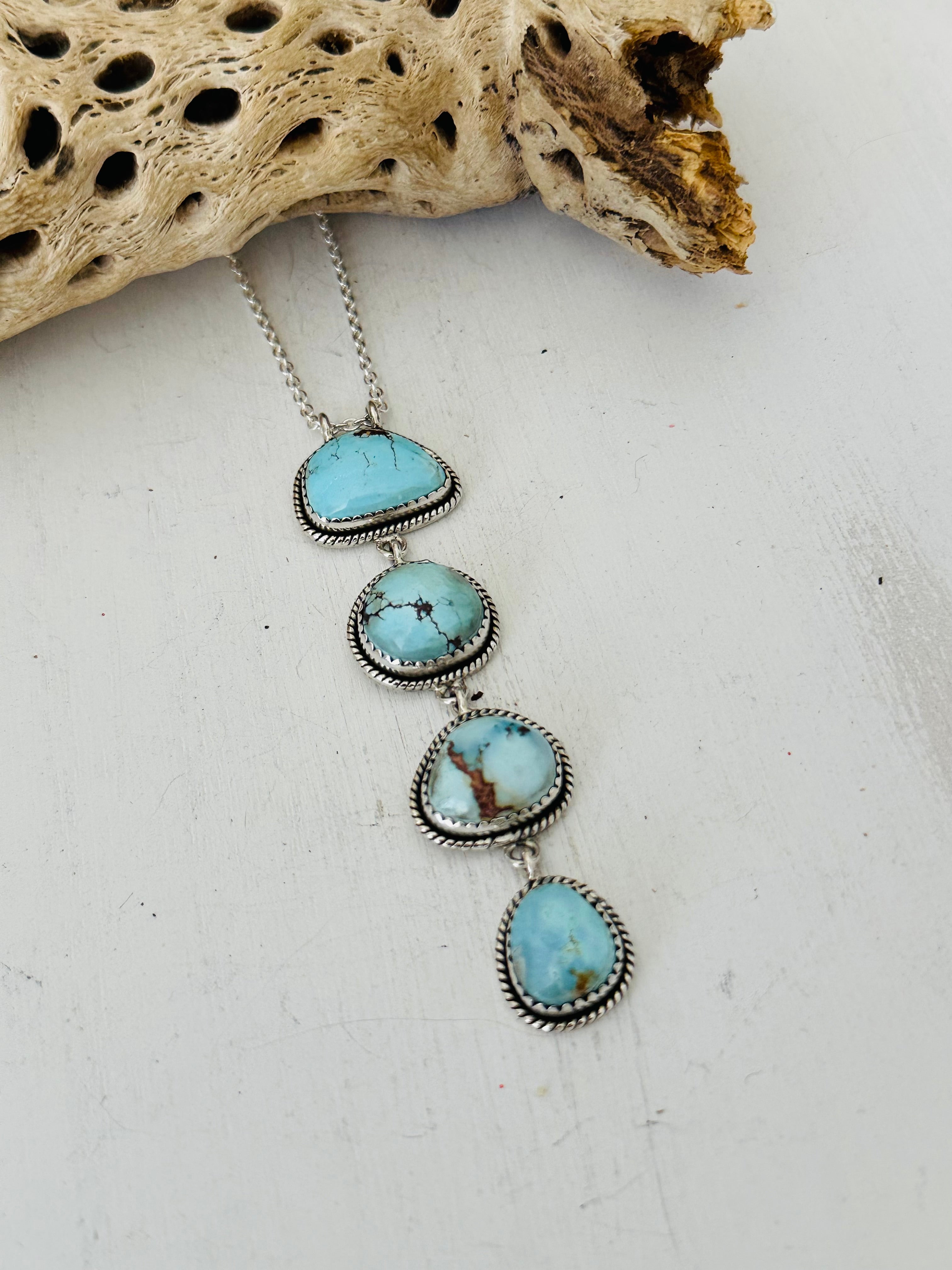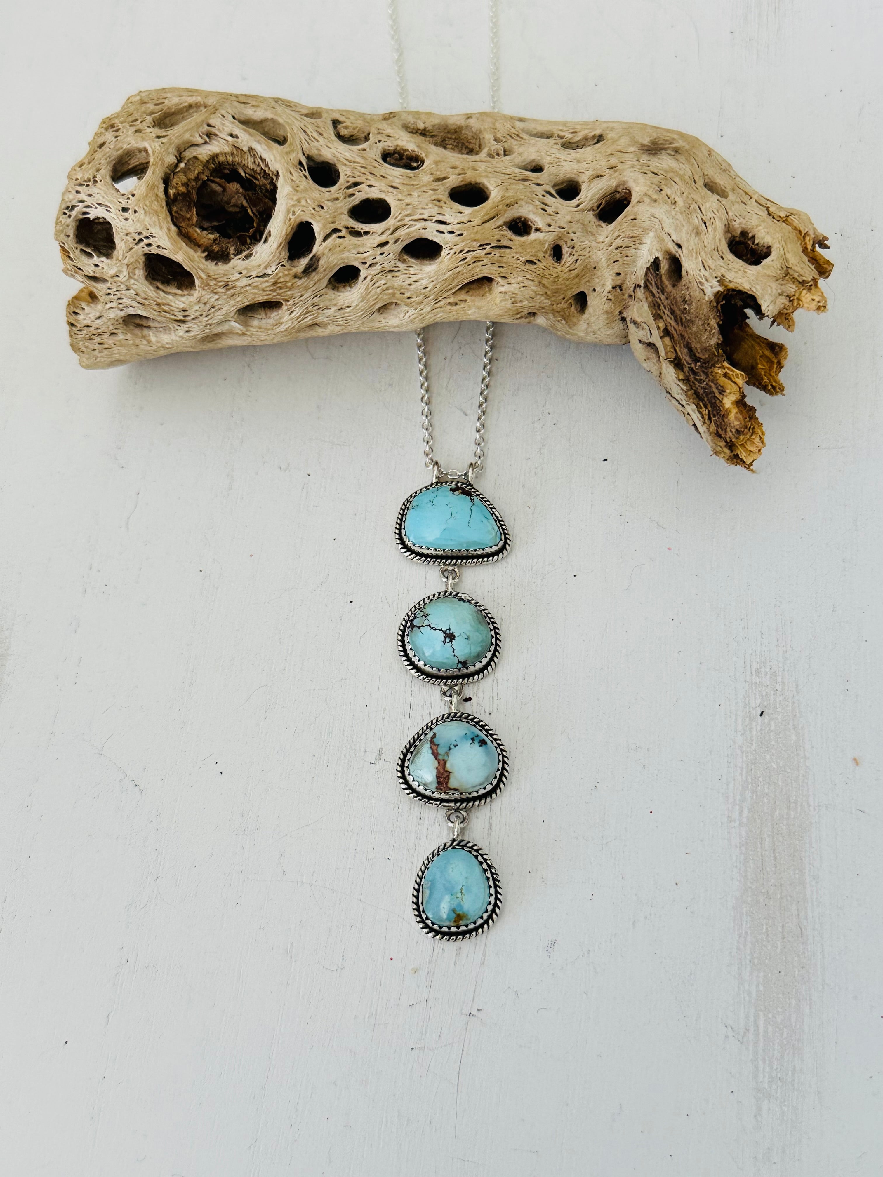 Beautiful necklace. Southwest Handmade Golden Hills Turquoise & Sterling Silver Necklace. It measures 25 1/2 inches long with hang while the chain by itself measures 19 inches long but can be adjusted down to 16 1/2 inches long. Signed by the artist and stamped sterling silver.