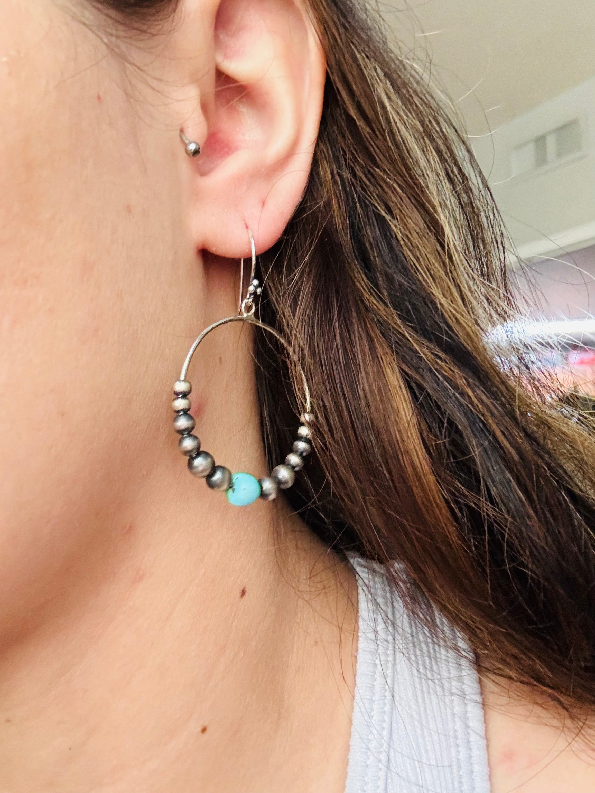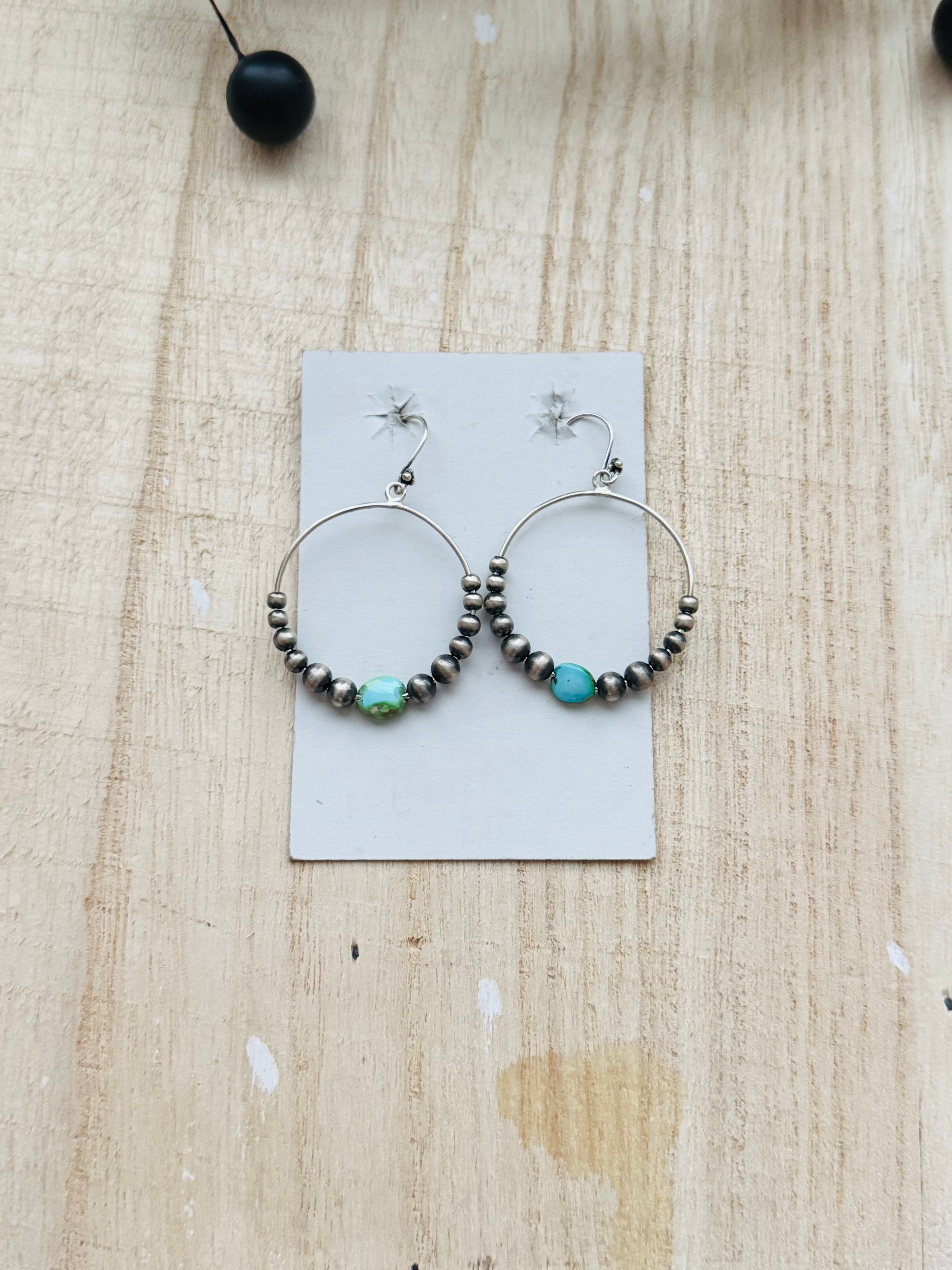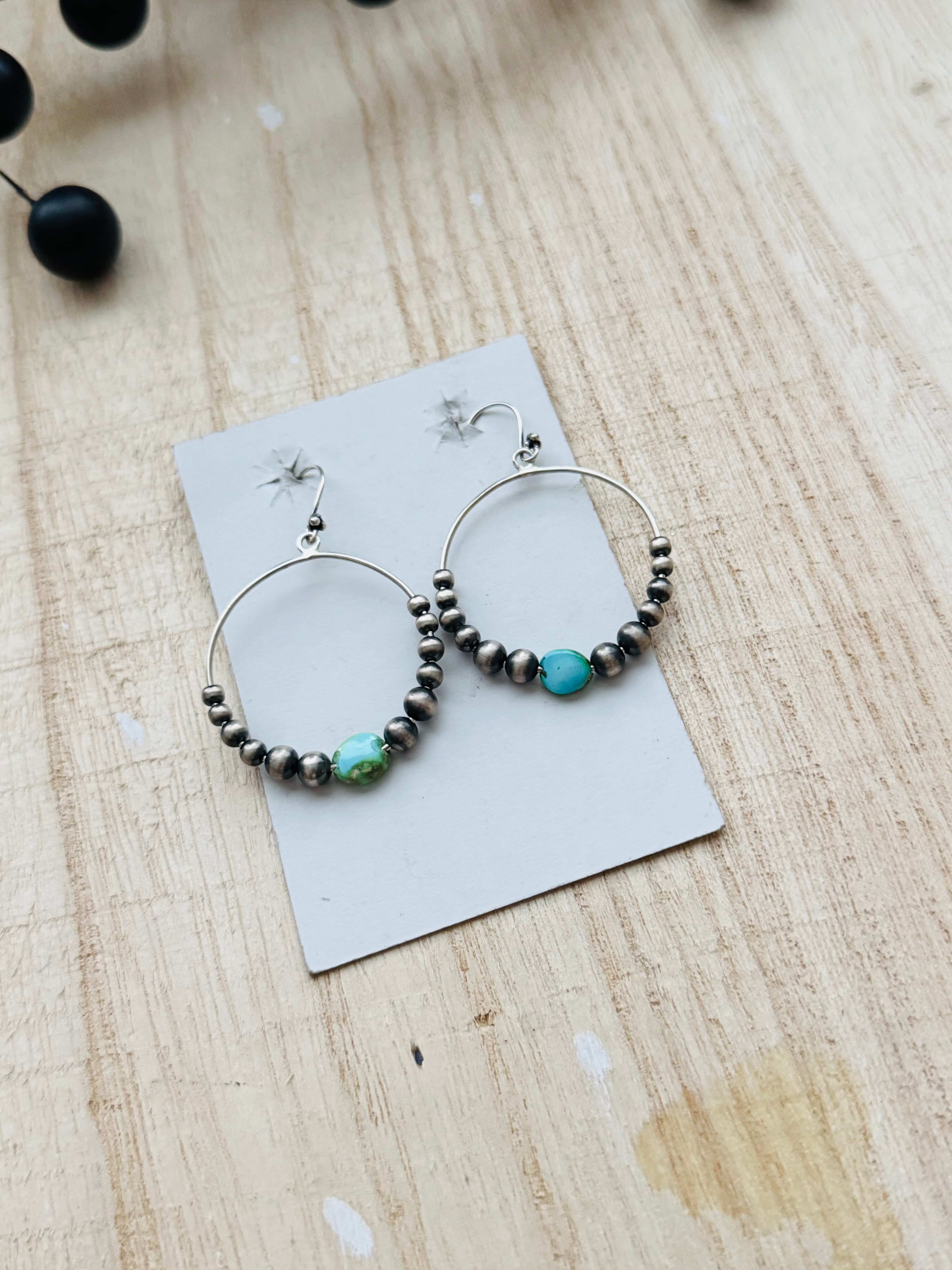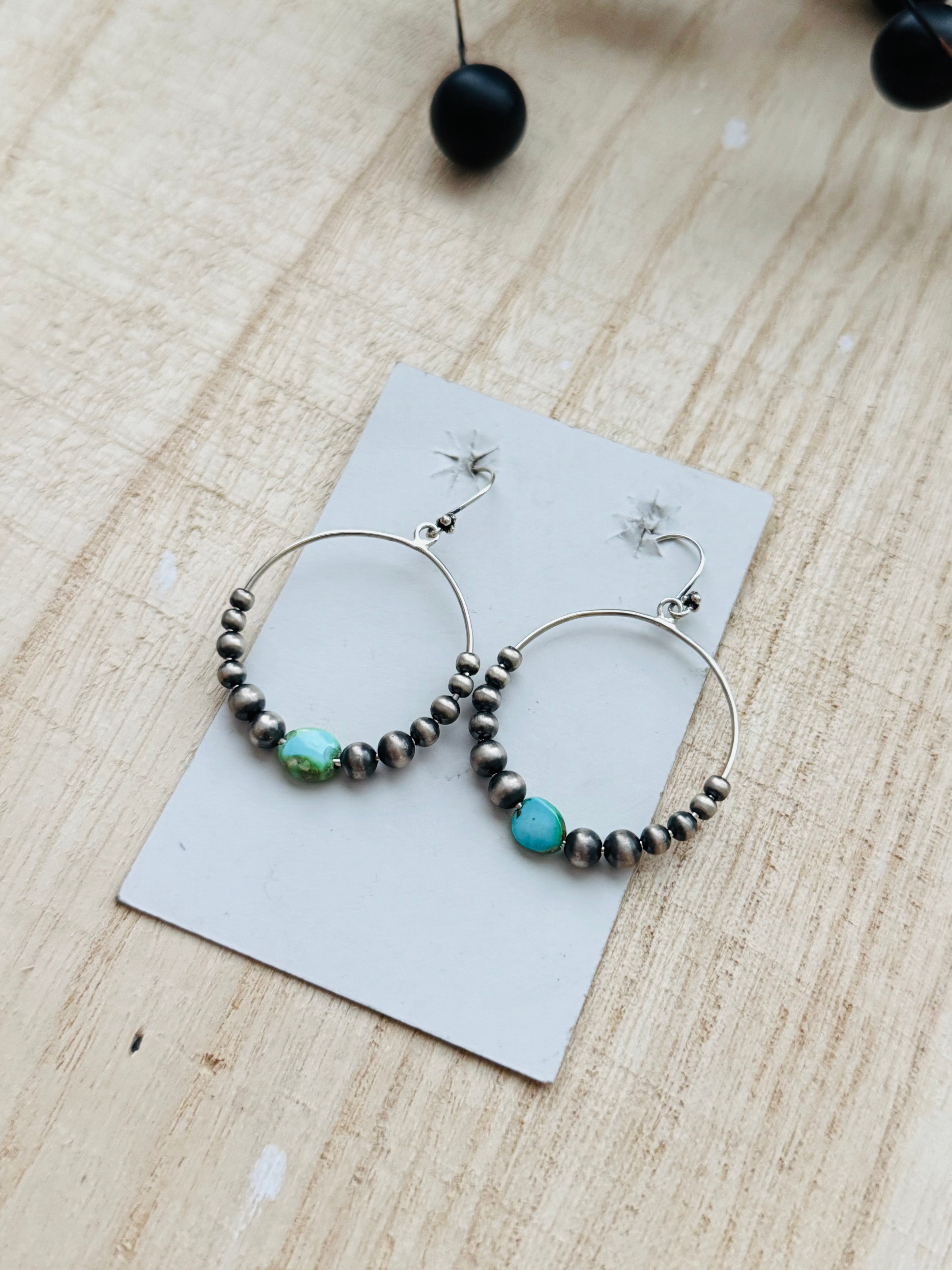 Southwest Handmade Sonoran Mountain Turquoise & Sterling Silver Pearl Dangle Earrings