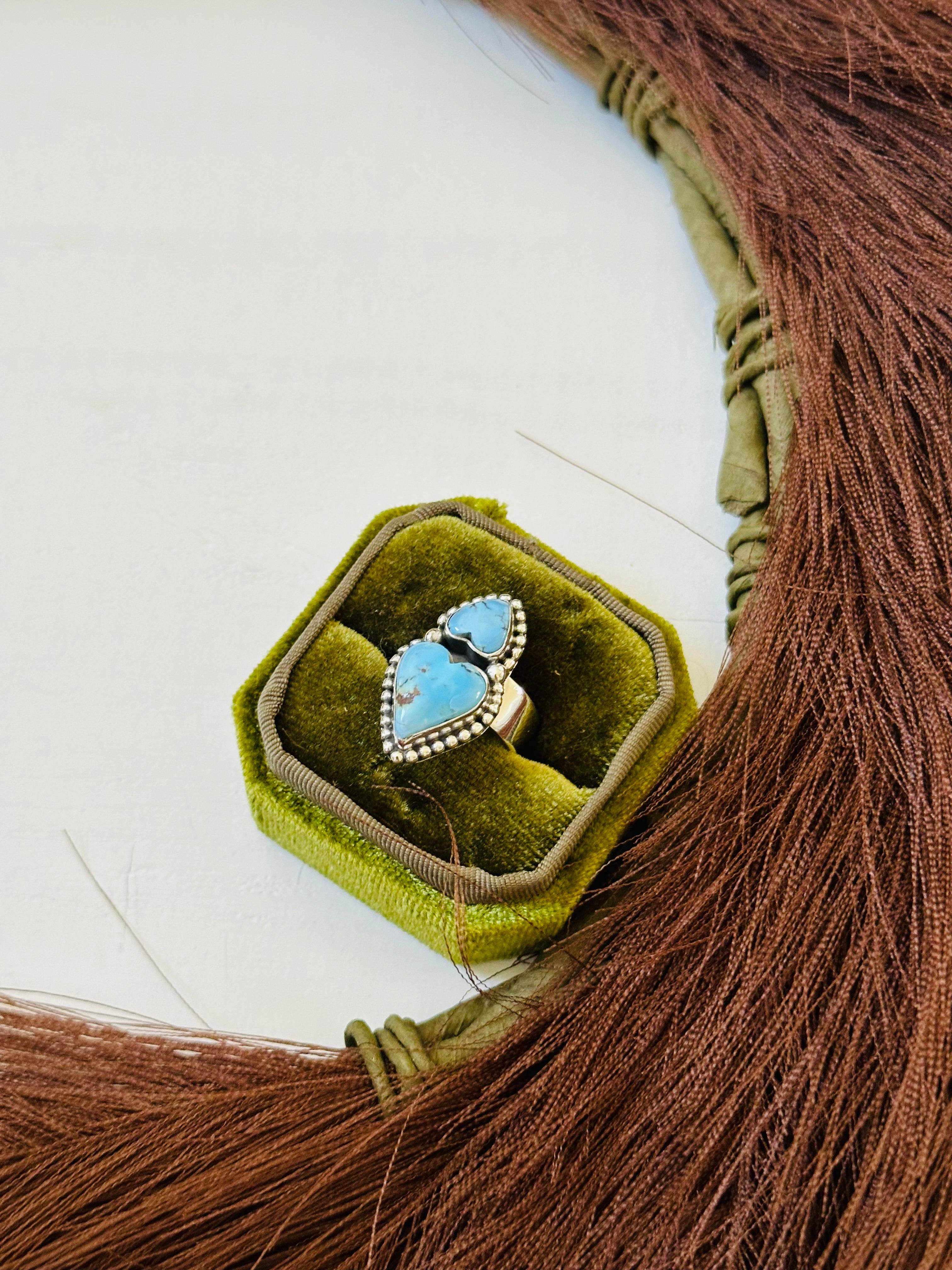 Beautiful ring. Southwest Handmade Golden Hills Turquoise & Sterling Silver Ring Size 6. It measures 1 1/8 inches long and 1/2 of an inch wide. Signed by the artist and stamped sterling silver.