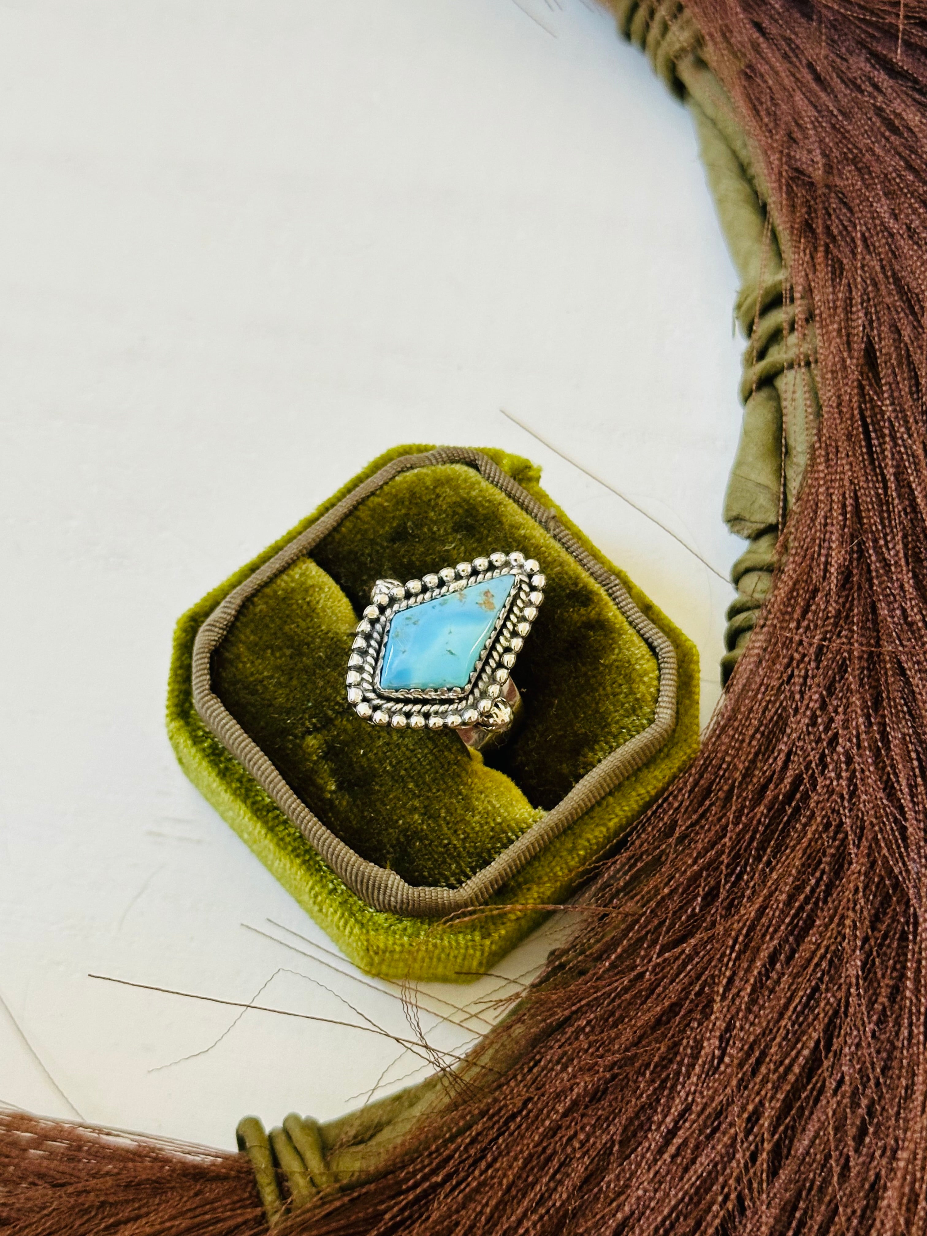 Southwest Handmade Golden Hills Turquoise & Sterling Silver Ring Size 8.75