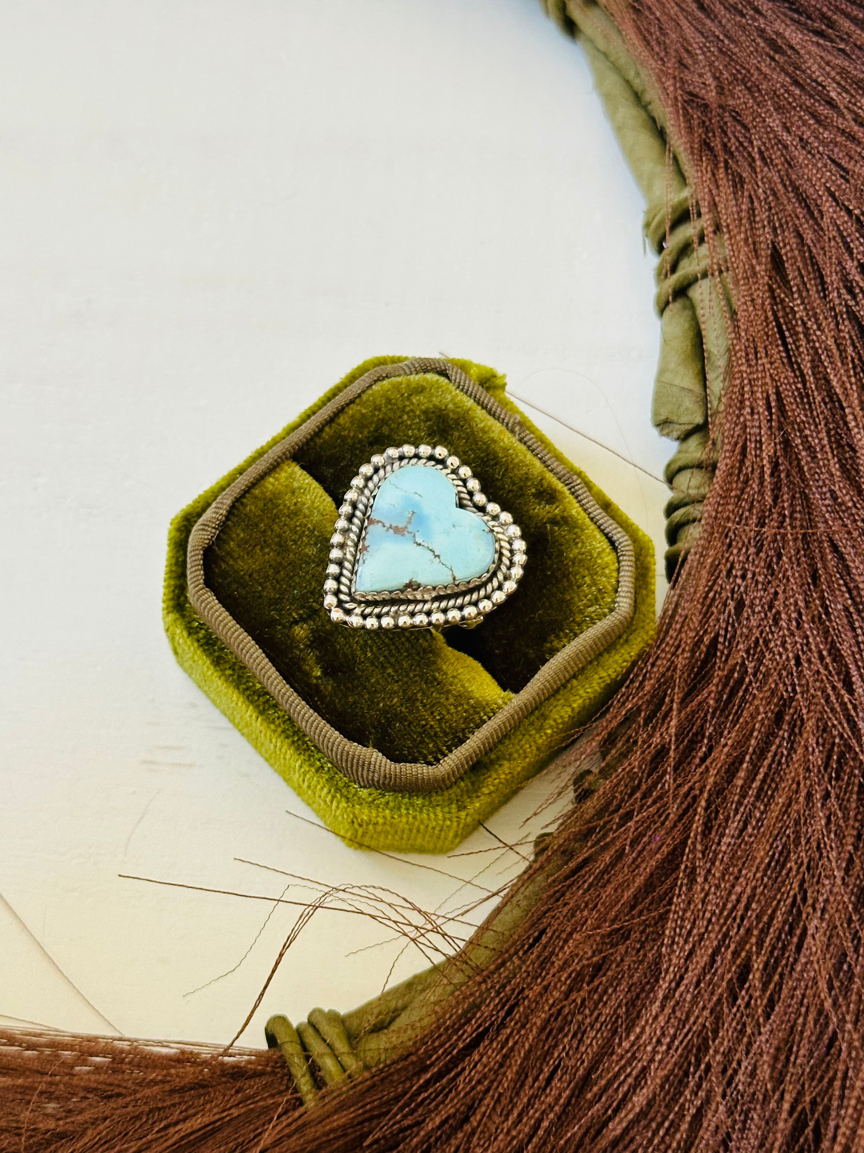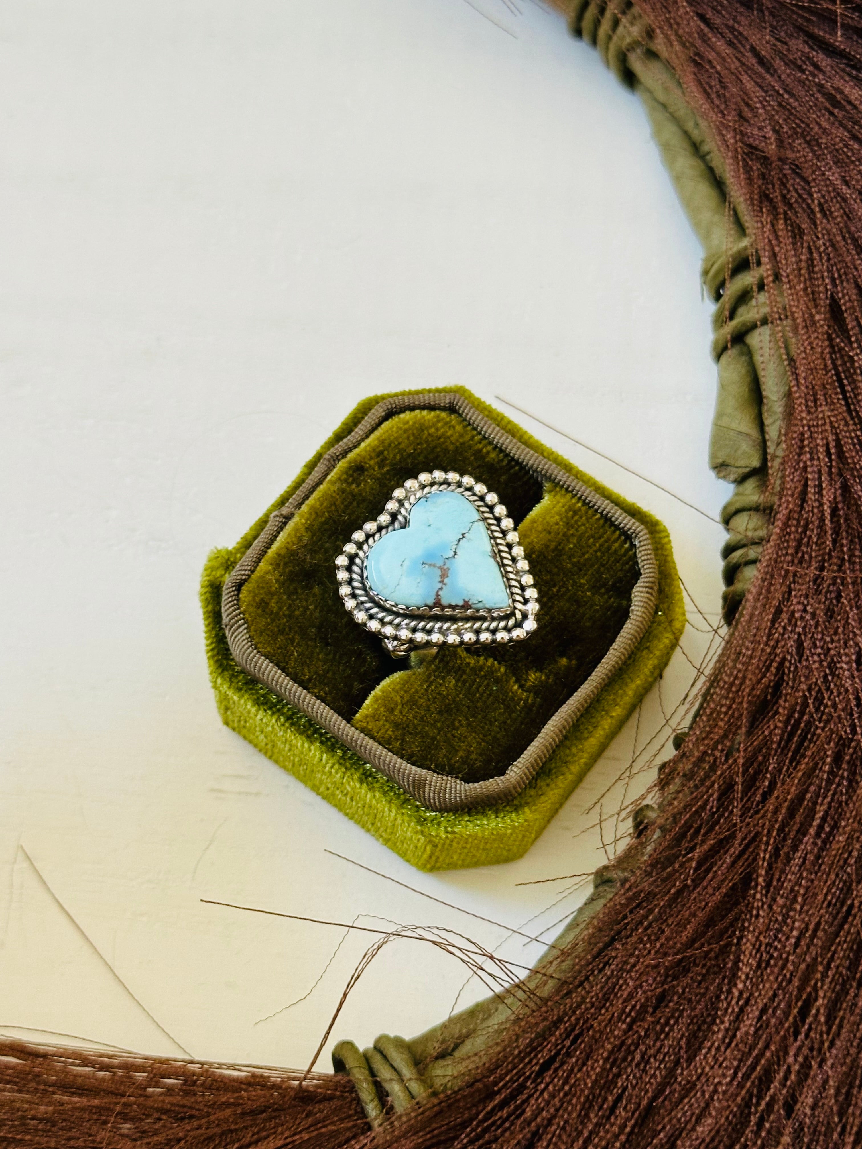 Southwest Handmade Golden Hills Turquoise & Sterling Silver Ring Size 6