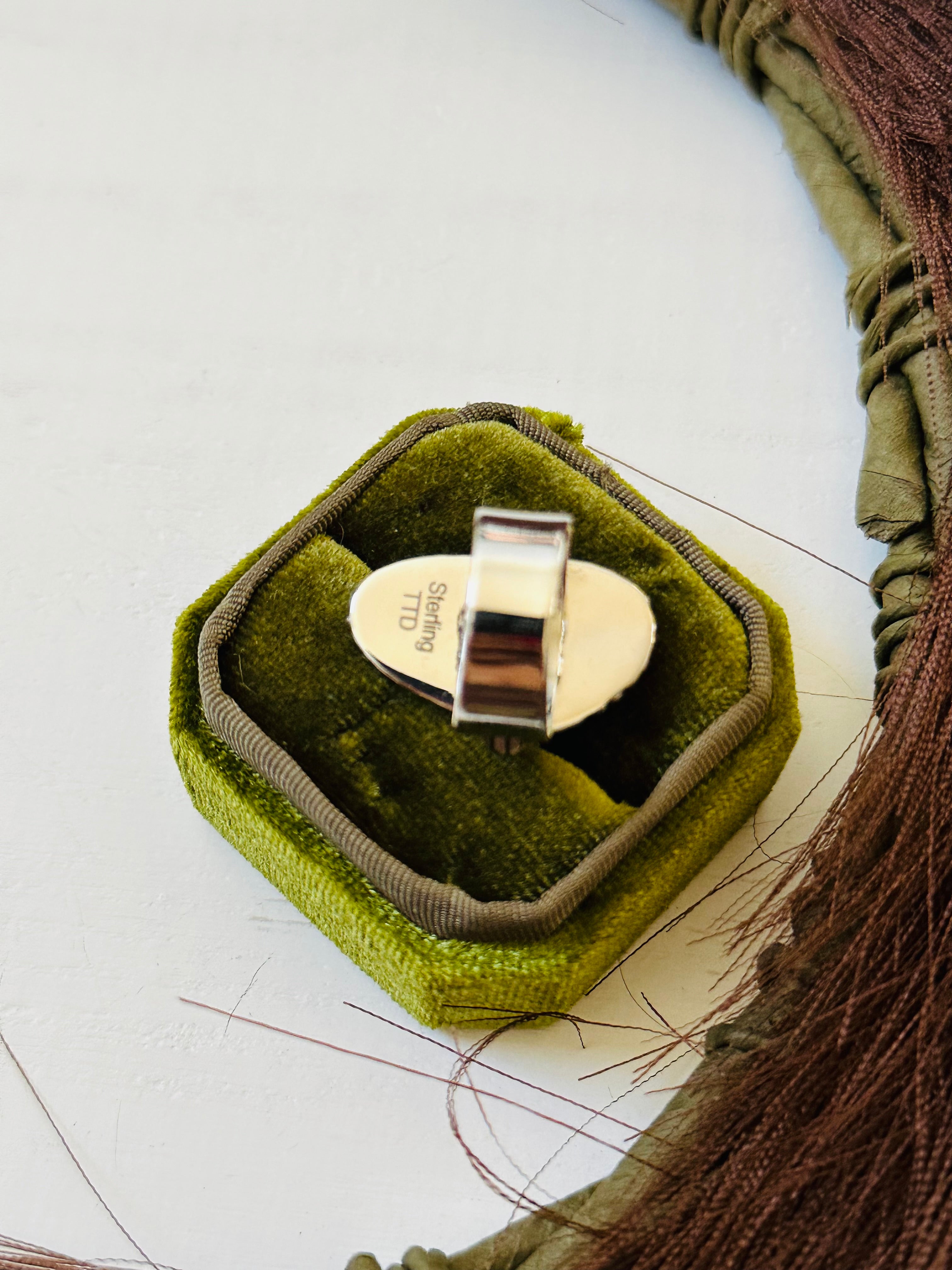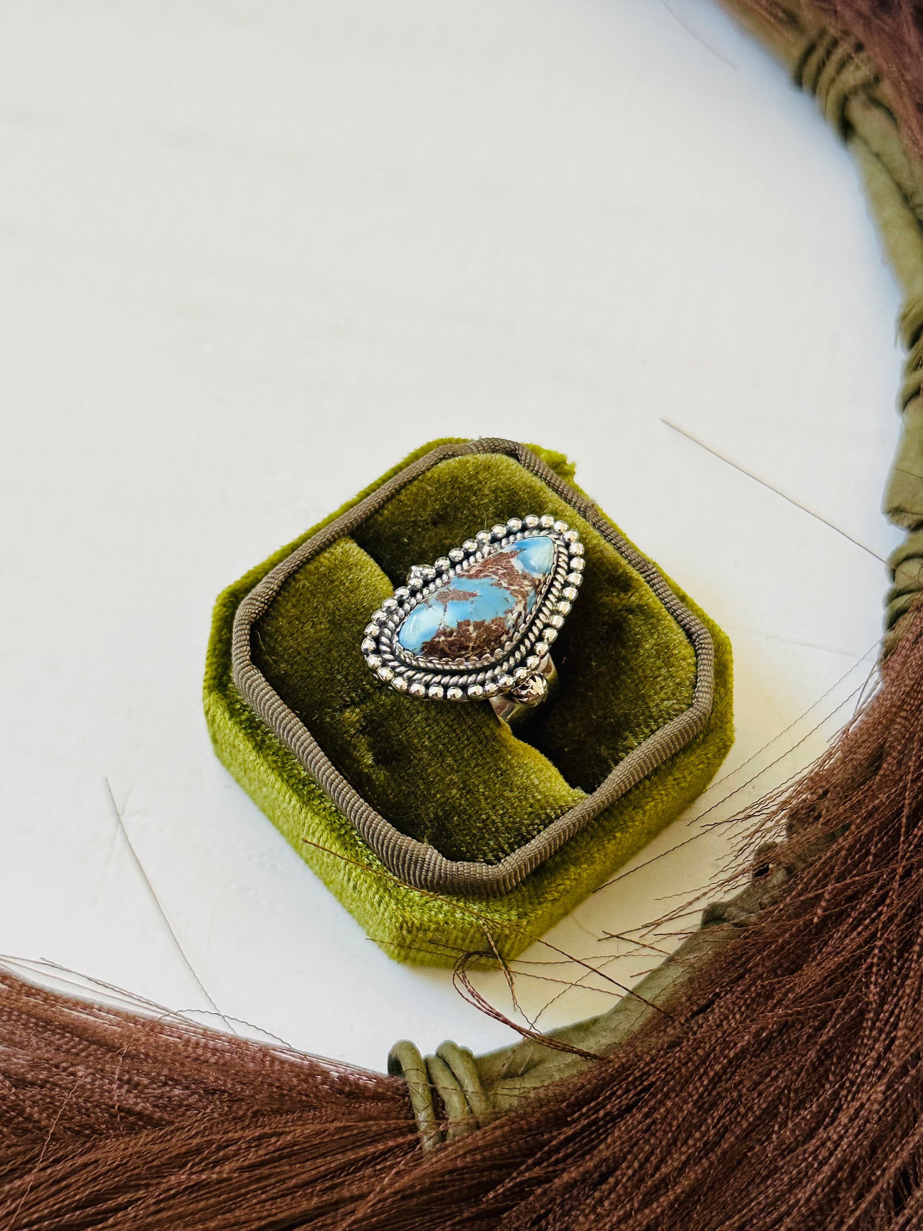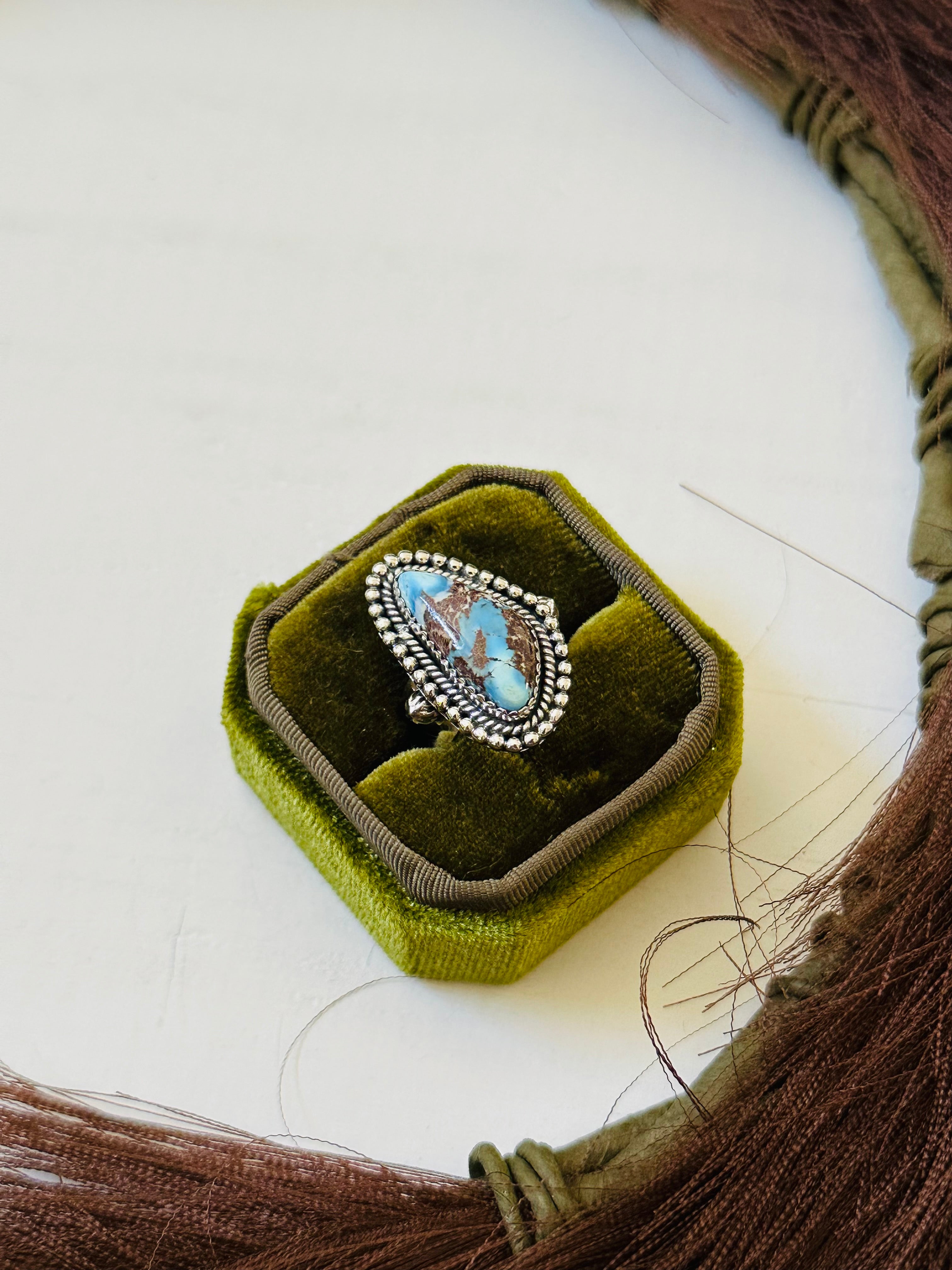 Southwest Handmade Golden Hills Turquoise & Sterling Silver Ring Size 6.75